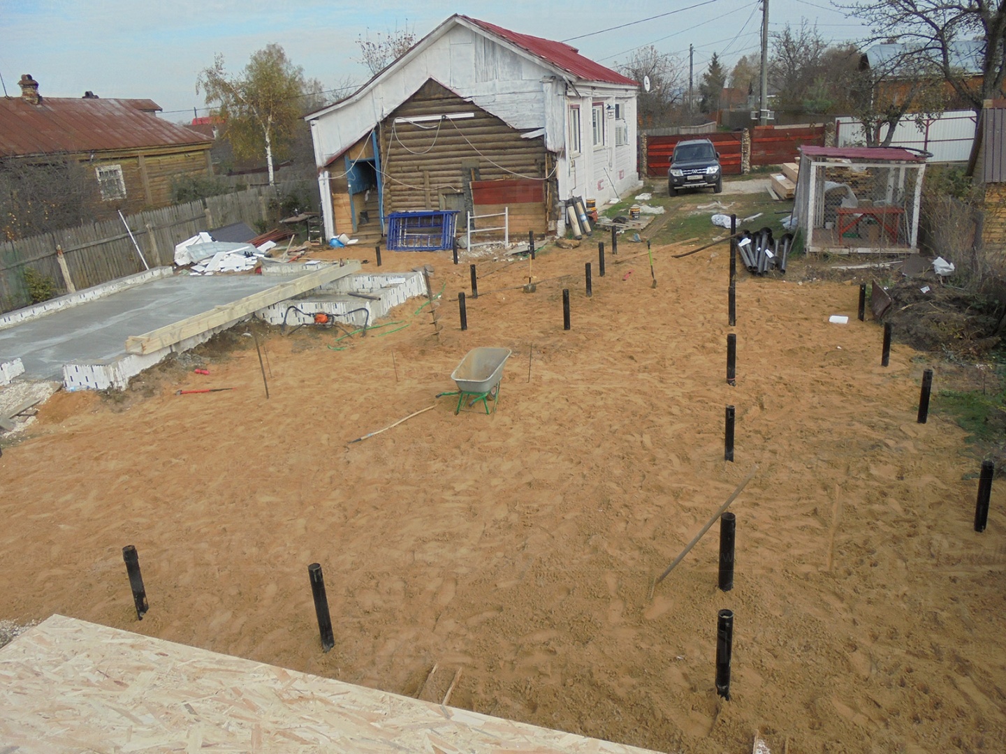 Фундамент - комбинированный винтовые сваи с литым наконечником производства компании SIPwall + ленточный фундамент из несьемной опалубки.