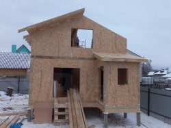 Комплектация домокомплекта: перекрытие на отметке +0.000 - СИП - 174У мм., несущие стены дома выполнены из СИП панелей 174 мм., внутренние несущие и не несущие стены выполнены по каркасной технологии. Чердачное перекрытие - СИП - 174У мм. Кровля - стропильная система.