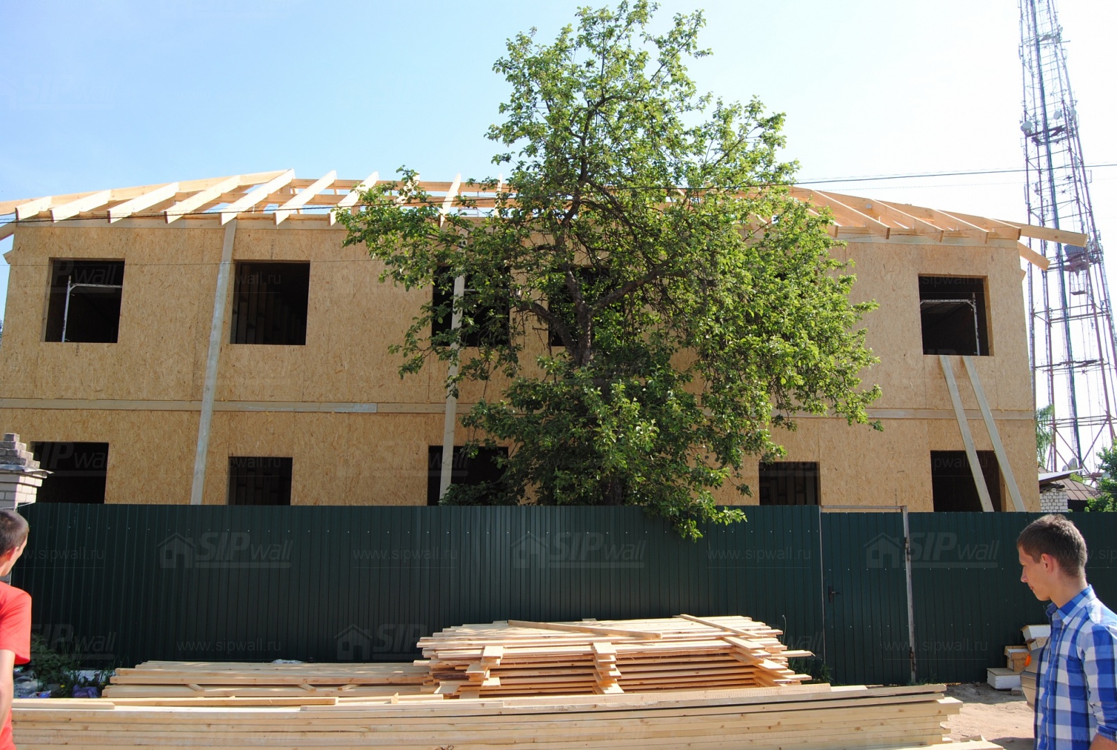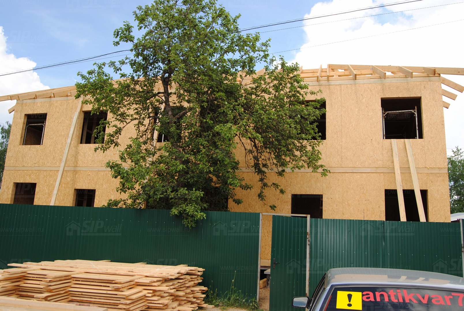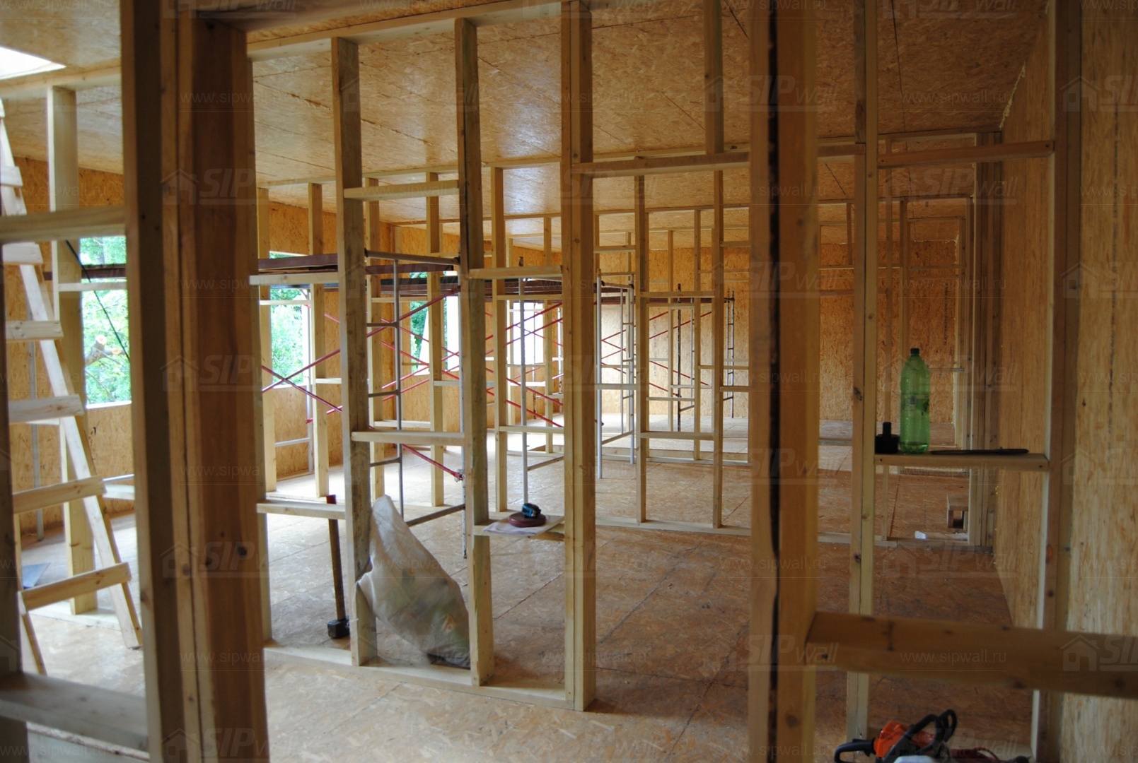 Все СИП панели SIPwall толщиной 224/174/124 мм (плиты OSB-3 толщиной 12 мм "Калевала" Россия, высшего класса экологической безопасности и фасадный пенополистирол ПСБ-С 25 высшей категории качества по ГОСТ 15588-06 толщиной 200/150/100 мм производства завода "PolarPlast" Россия) нарезаны и обрусованы сухим строганным брусом в соответствии с проектной документацией.