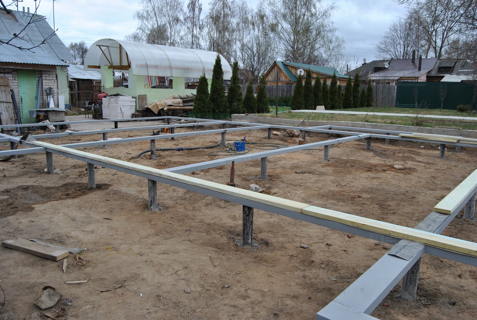 Выполнены работы: устройство винтового фундамента, изготовление и монтаж домокомплекта, устройство кровли
