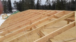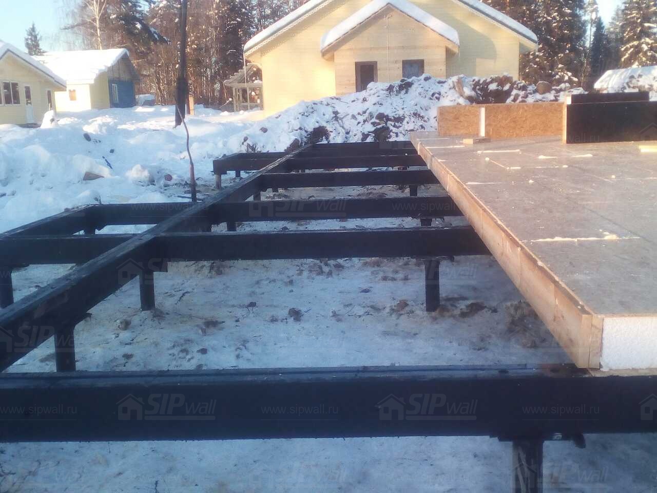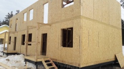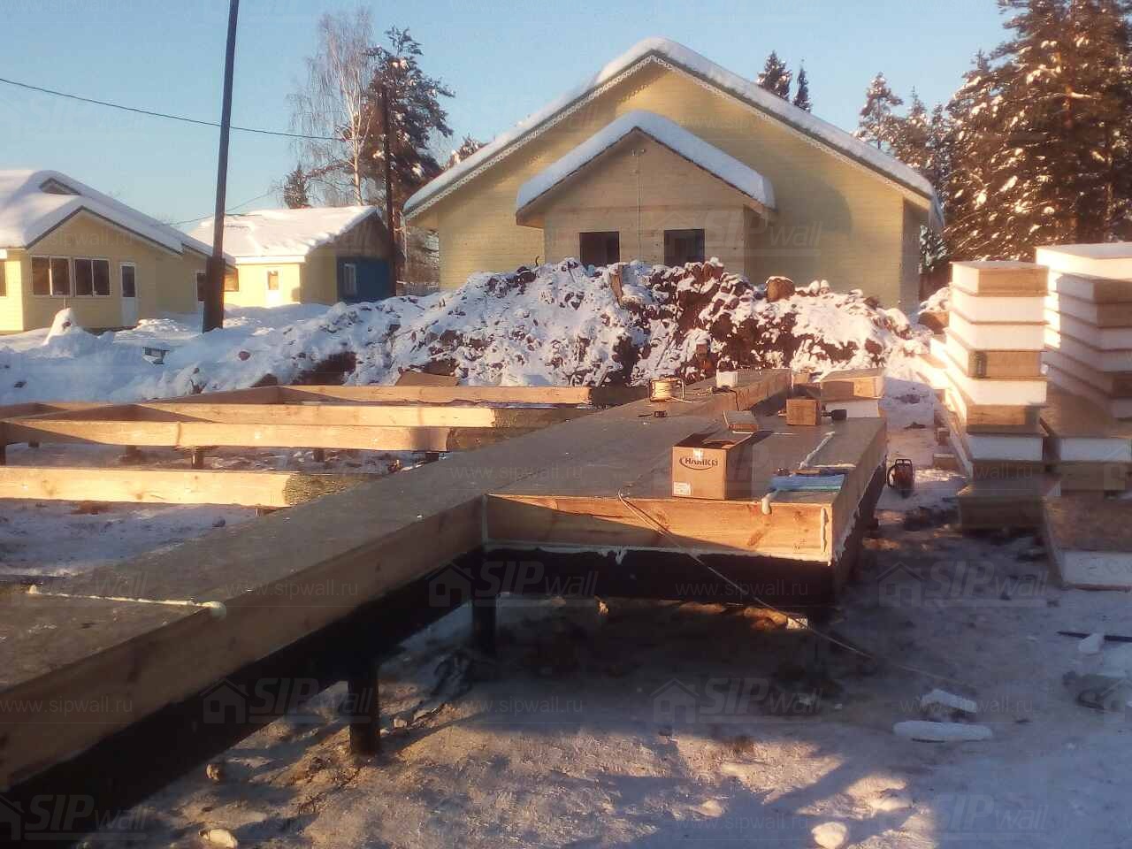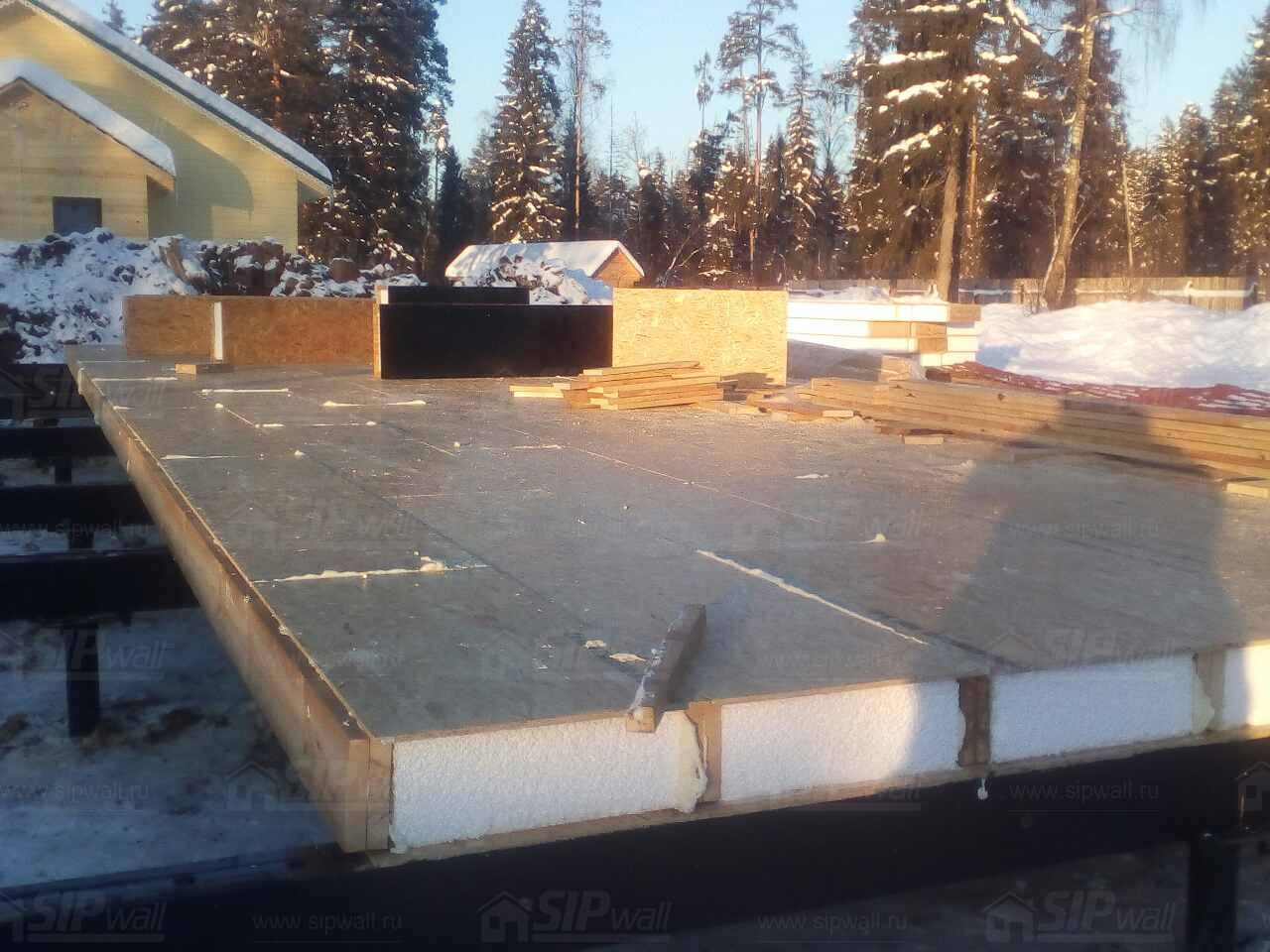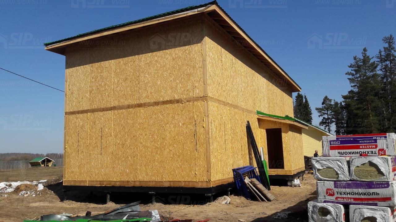 Комплектация домокомплекта: перекрытие на отметке +0.000 - СИП 224У мм., несущие стены дома выполнены из СИП панелей 174 мм., внутренние несущие стены и внутренние не несущие перегородки выполнены по каркасной технологии. Перекрытие межэтажное - лаги с настилом ОСБ-22 мм. Чердачное перекрытие - выполнена из СИП панелей 174У мм. Кровля - стропильная система