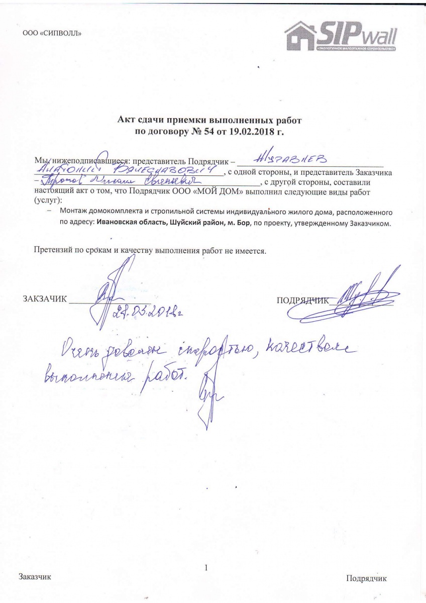 На выходе с завода «СИПВОЛЛ» домокомплект имеет 99-% ную готовность.