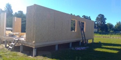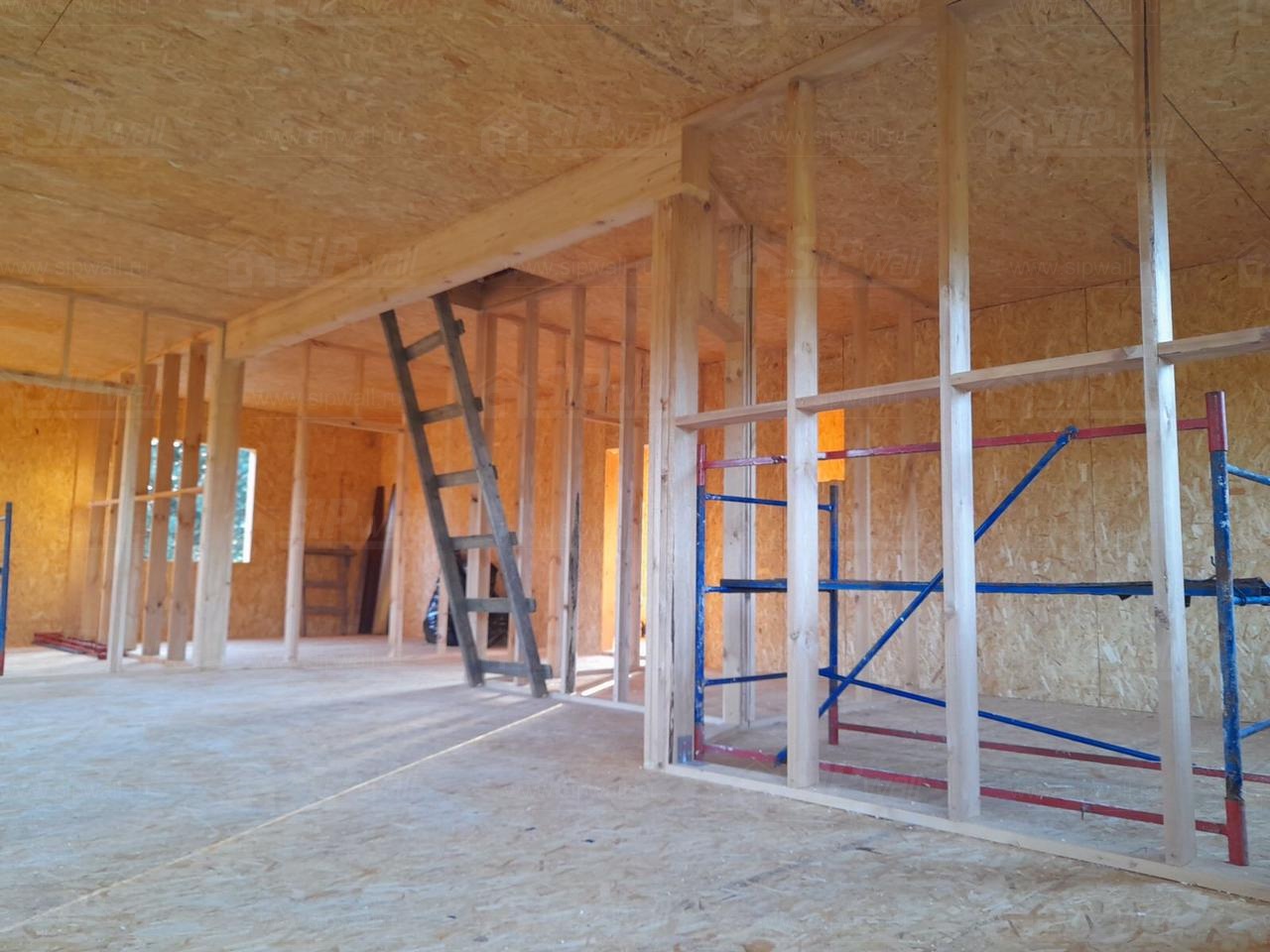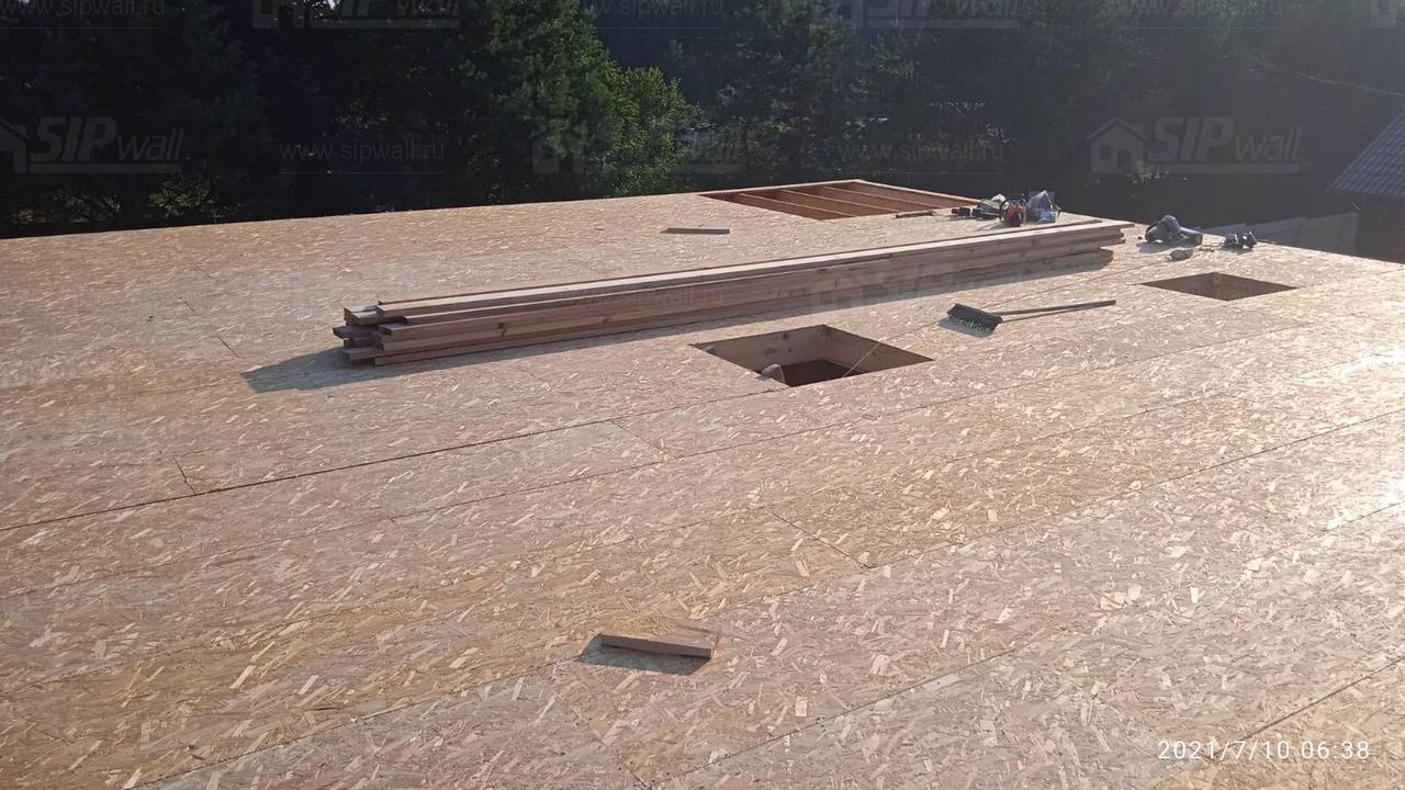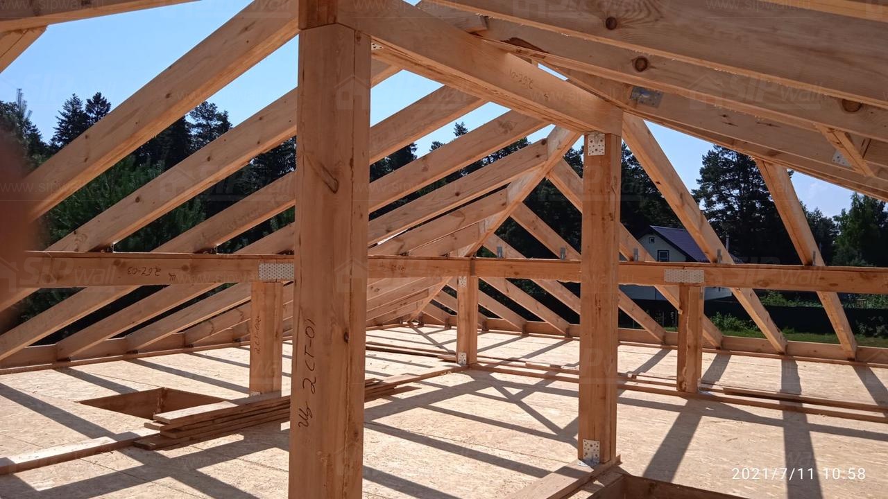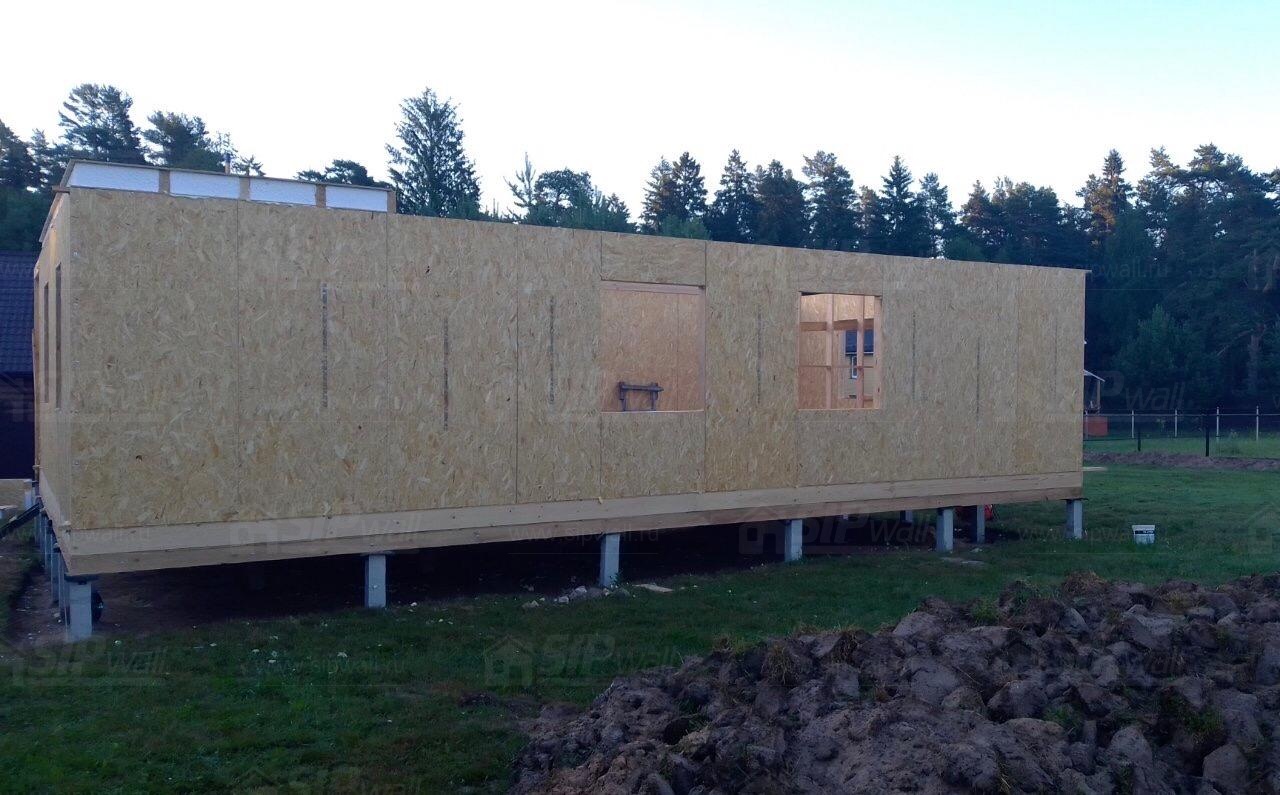 Все СИП панели SIPwall толщиной 224/174/124 мм (плиты OSB-3 толщиной 12 мм "Калевала" Россия и фасадный пенополистирол ППС-14 толщиной 200/150/100 мм производства, Россия) нарезаны и обрусованы сухим строганным брусом камерной сушки в соответствии с проектной документацией.
