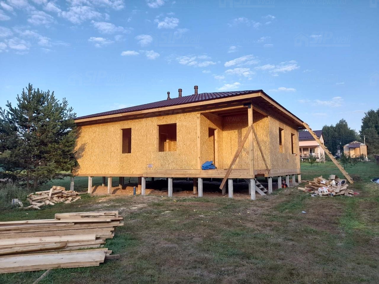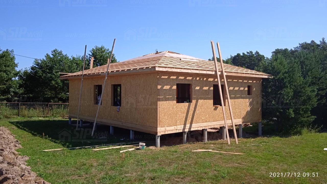 1.07.2021г. Компания SIPWALL приступила к строительству одноэтажного дома 105м2 по индивидуальному проекту в д.Топорок, Кимрского района, Тверской области.