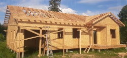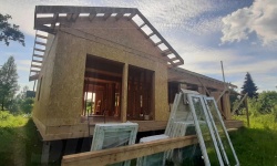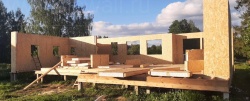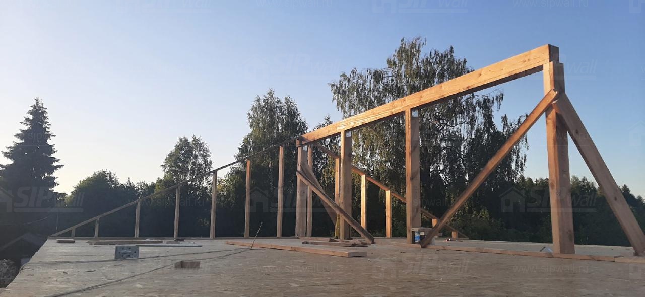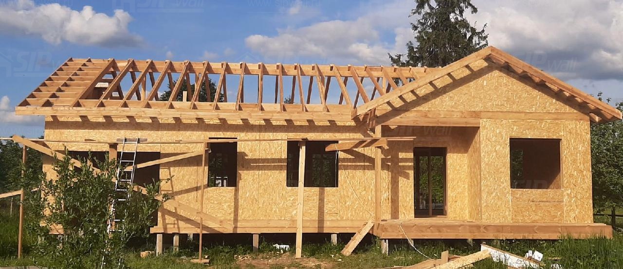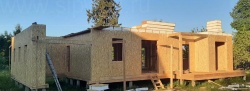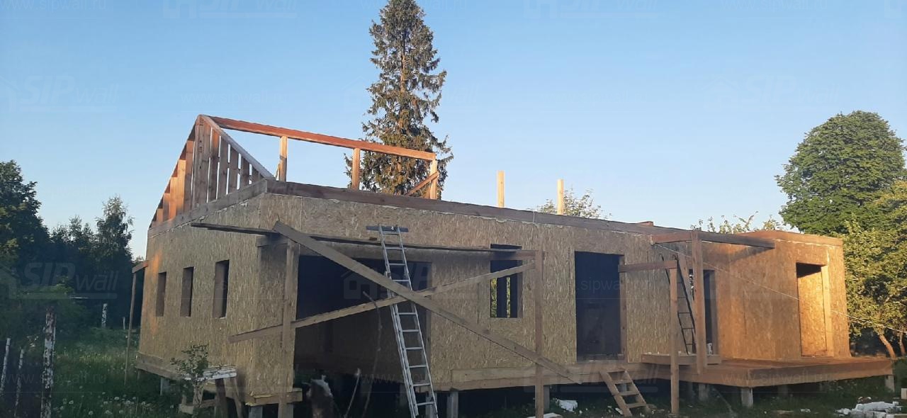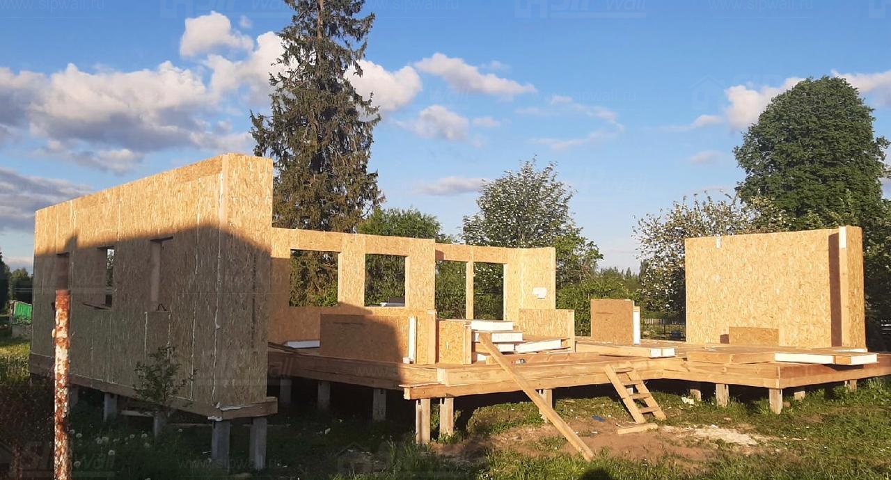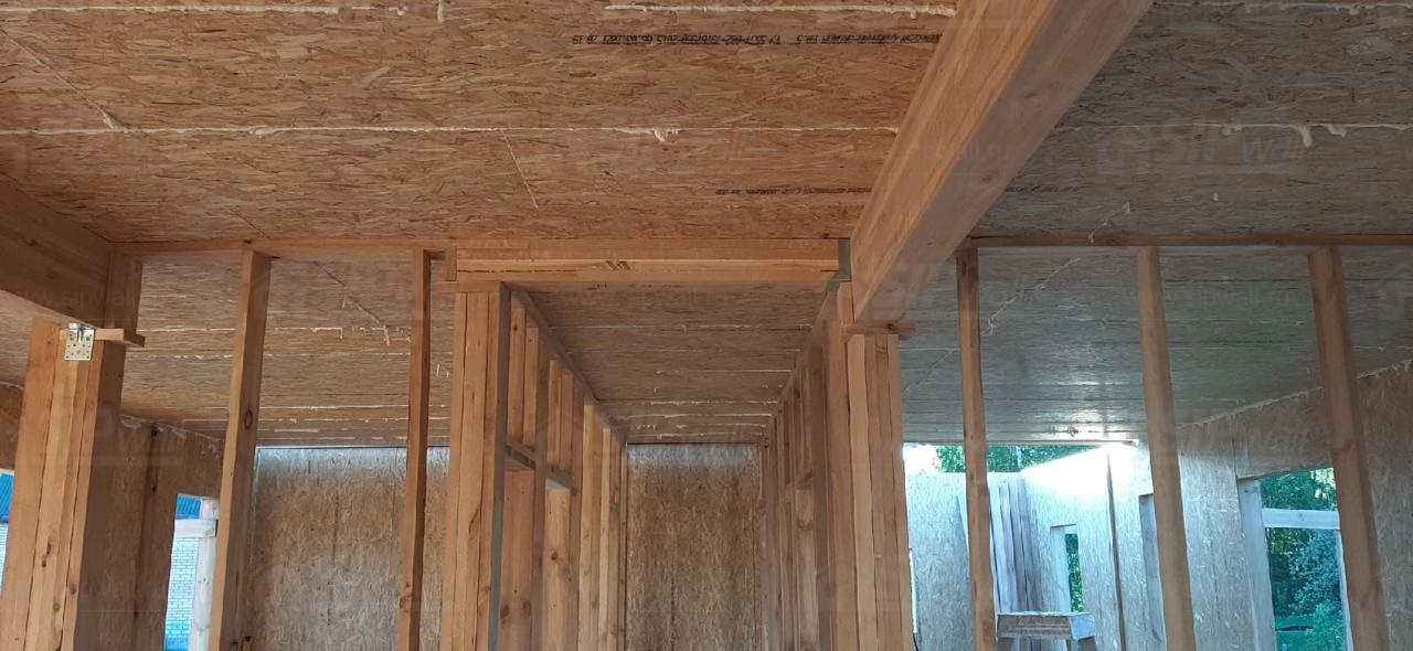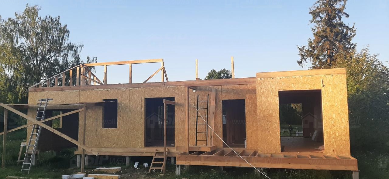Все СИП панели SIPwall толщиной 224/174/124 мм (плиты OSB-3 толщиной 12 мм "Калевала" Россия и фасадный пенополистирол ППС-14 толщиной 200/150/100 мм производства, Россия) нарезаны и обрусованы сухим строганным брусом камерной сушки в соответствии с проектной документацией.