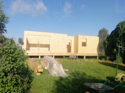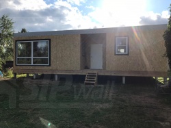 Домокомплект - изготовлен по проекту из СИП панелей произведенный по технологии SIPwall (ЭКОПАН) на собственном заводе расположенном в г. Шуя, Ивановской области. При изготовлении домокомплекта панельно каркасного дома используется только сухой строганный брус камерной сушки, обработанный огнебиозащитным составом.