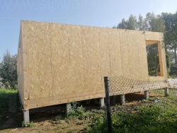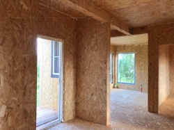 Все СИП панели SIPwall толщиной 224/174/124 мм (плиты OSB-3 толщиной 12 мм "Калевала" Россия и фасадный пенополистирол ППС-14 толщиной 200/150/100 мм производства, Россия) нарезаны и обрусованы сухим строганным брусом камерной сушки в соответствии с проектной документацией.