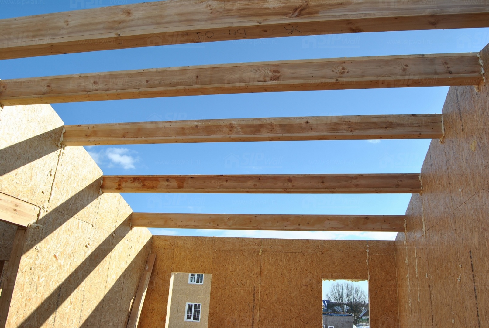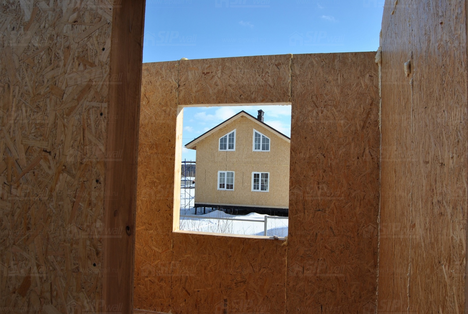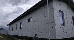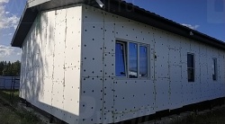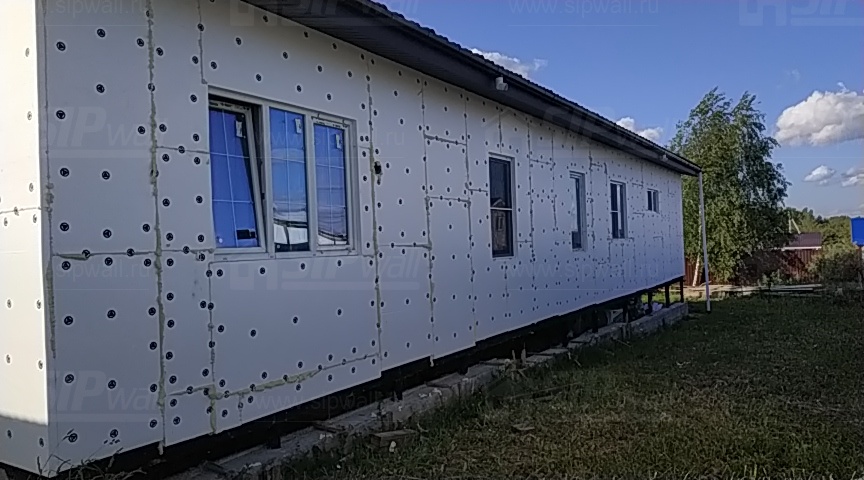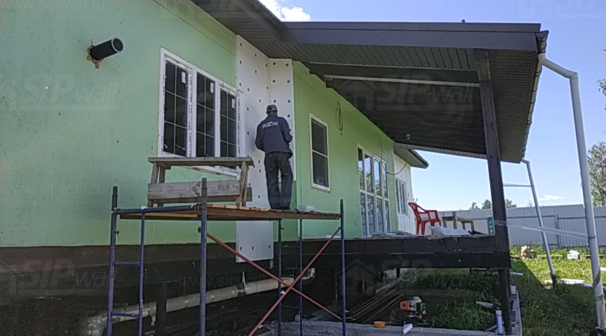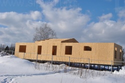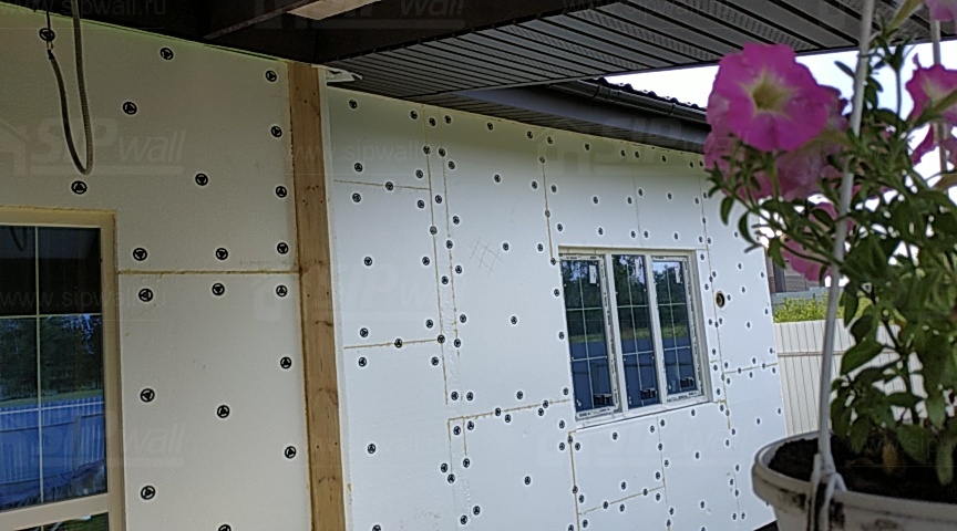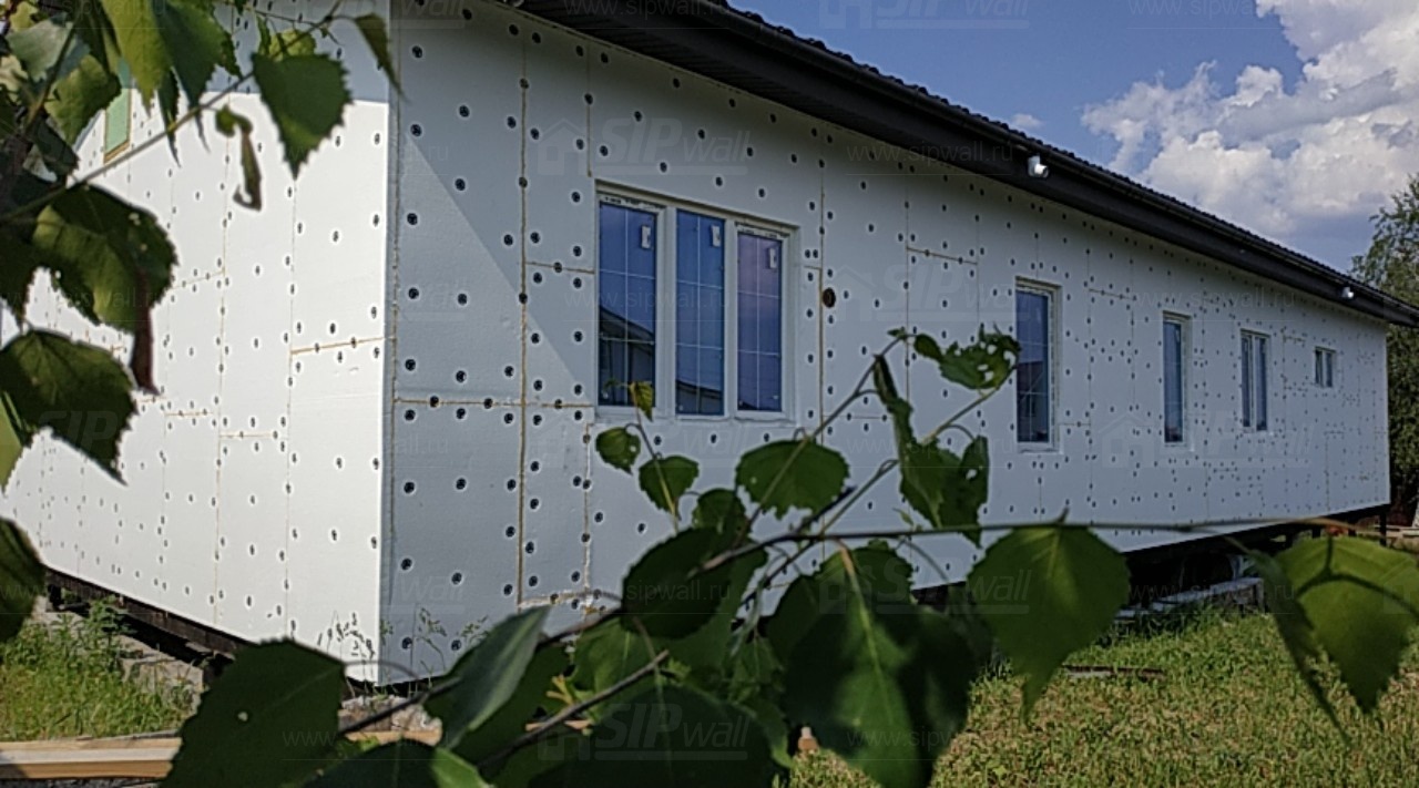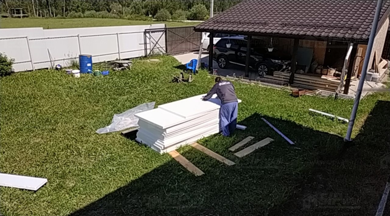 Все СИП панели SIPwall толщиной 224/174/124 мм (плиты OSB-3 толщиной 12 мм "Калевала" Россия, высшего класса экологической безопасности и фасадный пенополистирол ПСБ-С 25 высшей категории качества по ГОСТ 15588-06 толщиной 200/150/100 мм производства завода "PolarPlast" Россия) нарезаны и обрусованы сухим строганным брусом в соответствии с проектной документацией.