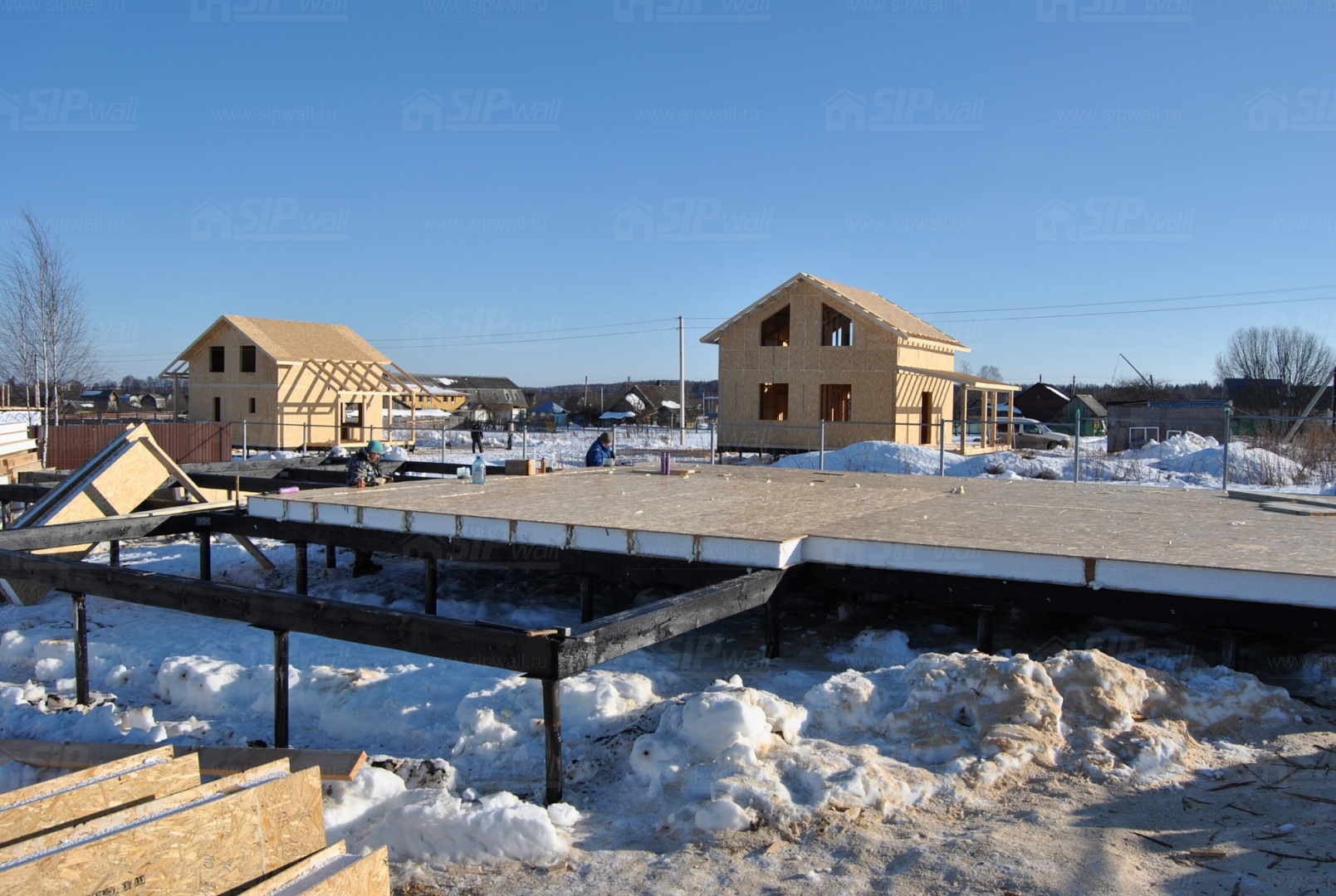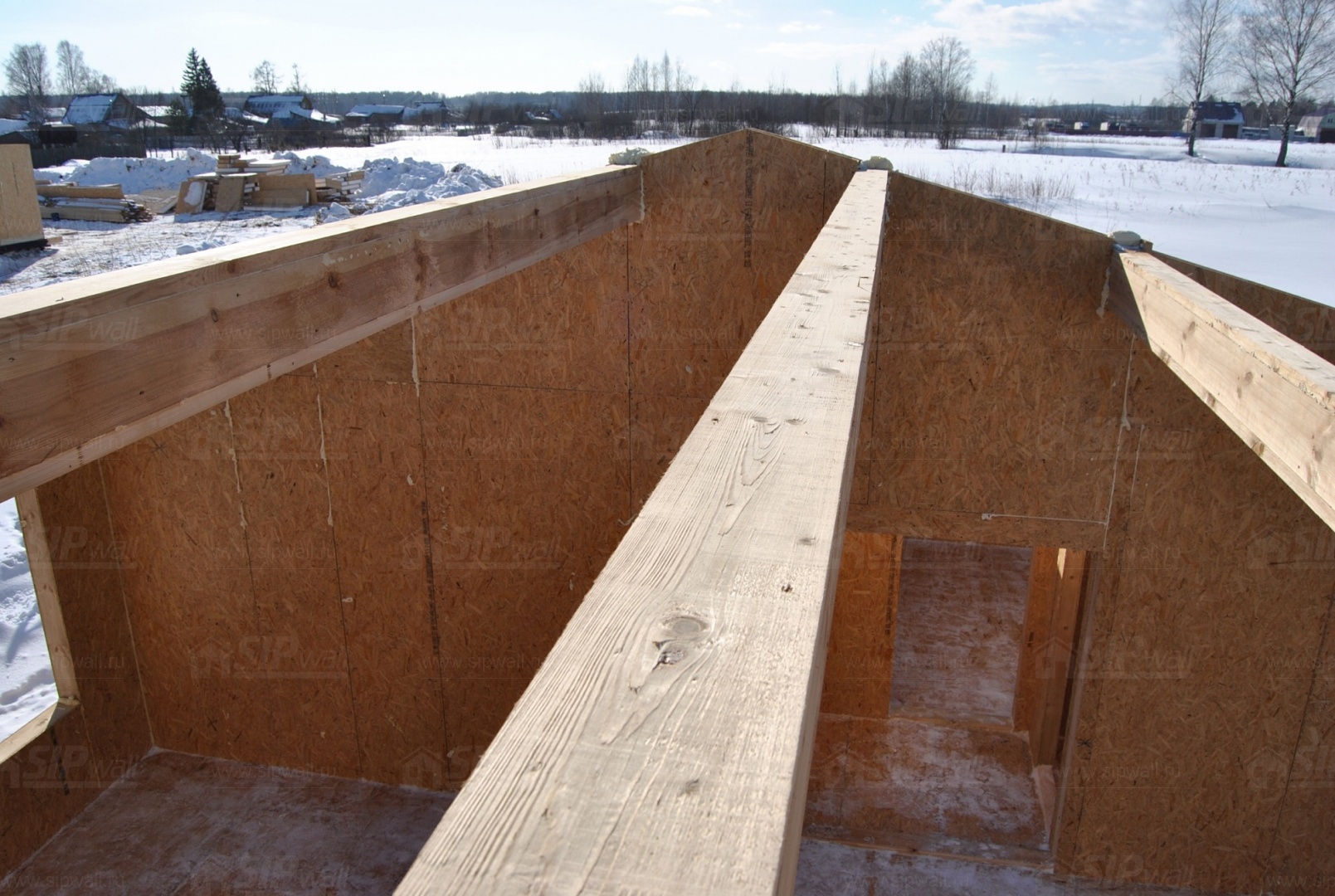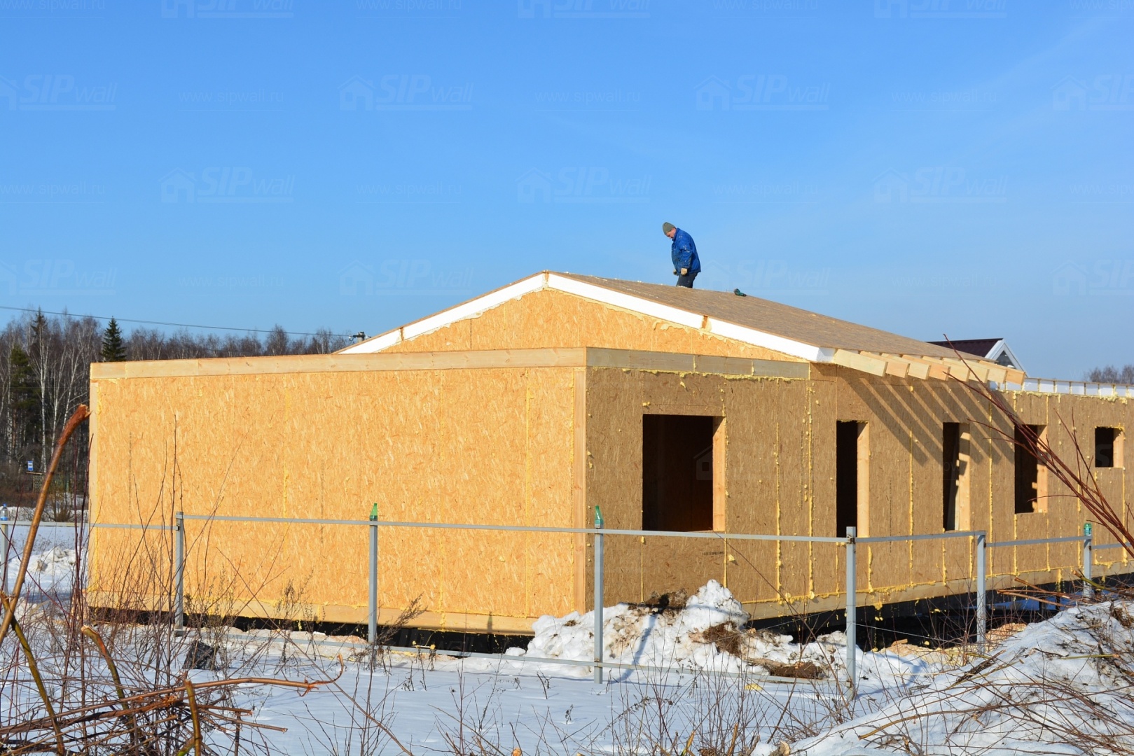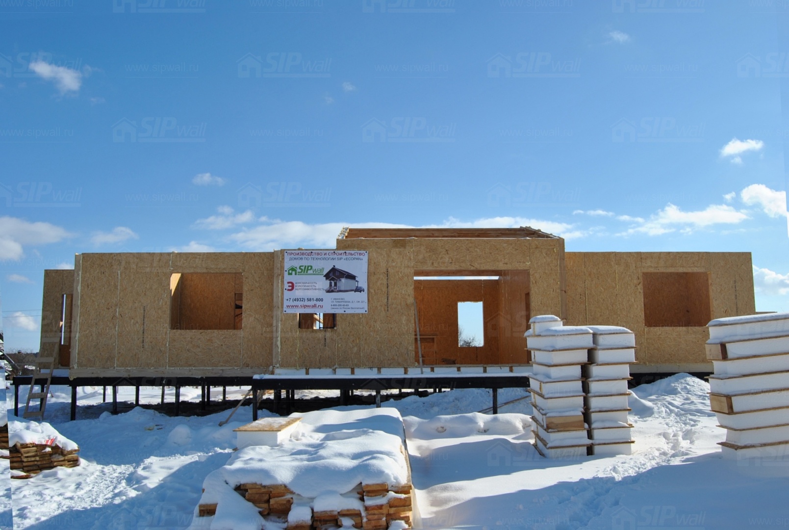 Все СИП панели SIPwall толщиной 224/174/124 мм (плиты OSB-3 толщиной 12 мм "Калевала" Россия, высшего класса экологической безопасности и фасадный пенополистирол ПСБ-С 25 высшей категории качества по ГОСТ 15588-06 толщиной 200/150/100 мм производства завода "PolarPlast" Россия) нарезаны и обрусованы сухим строганным брусом в соответствии с проектной документацией.