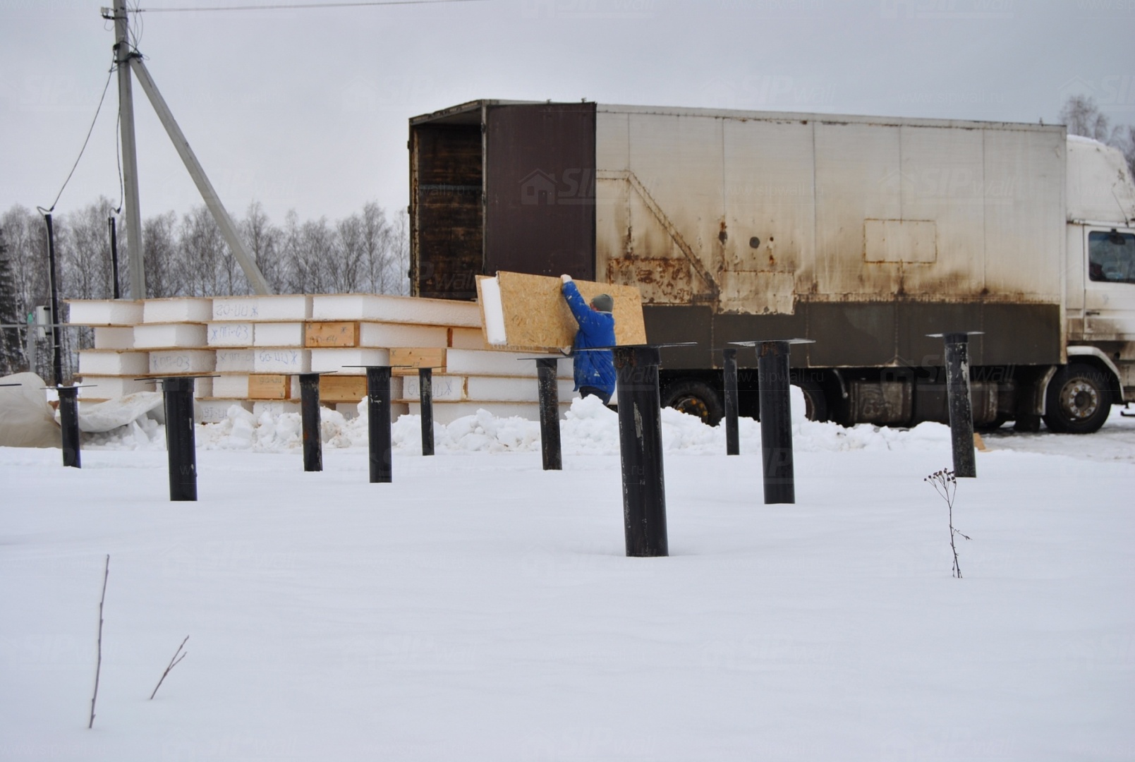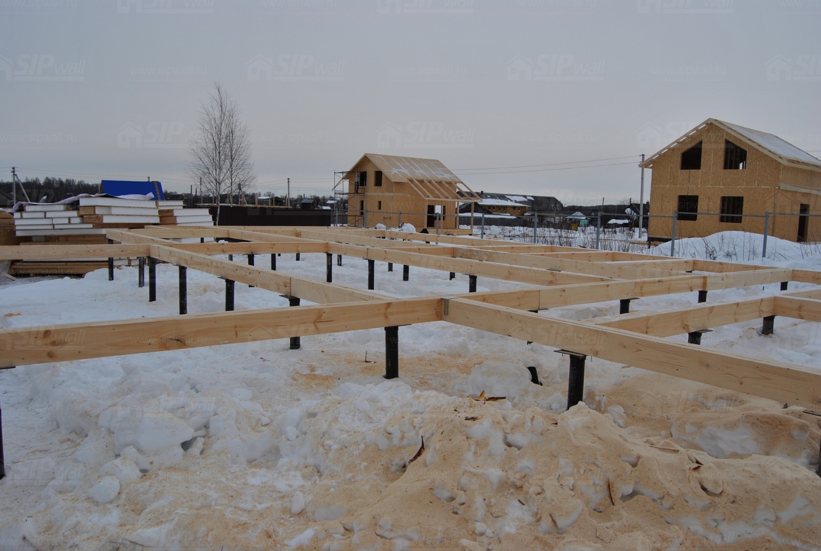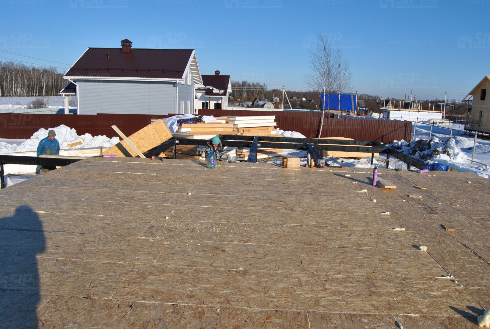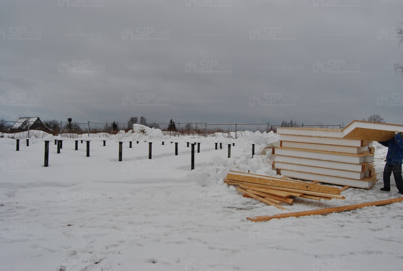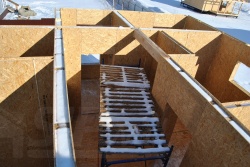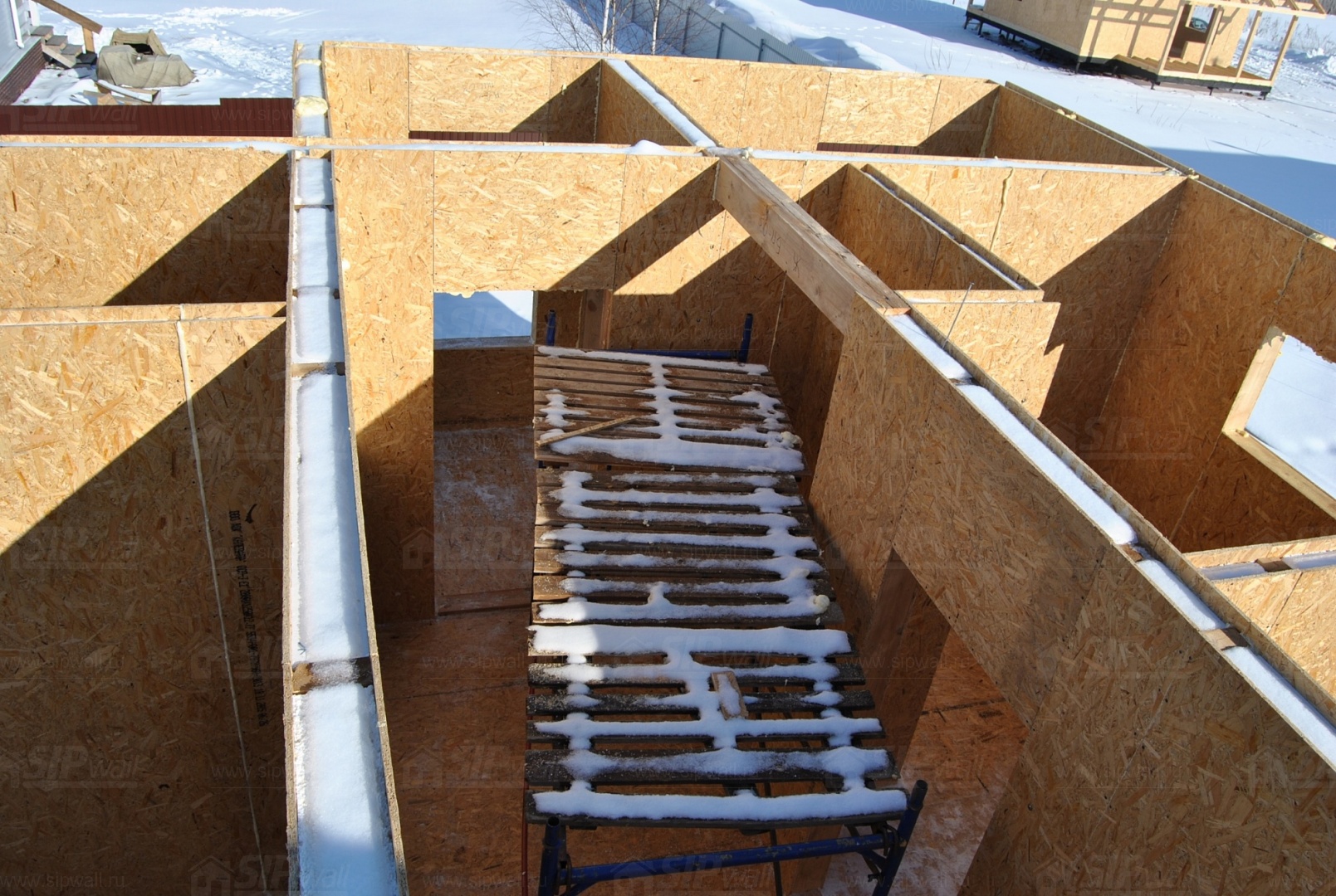 Все СИП панели SIPwall толщиной 224/174/124 мм (плиты OSB-3 толщиной 12 мм "Калевала" Россия, высшего класса экологической безопасности и фасадный пенополистирол ПСБ-С 25 высшей категории качества по ГОСТ 15588-06 толщиной 200/150/100 мм производства завода "PolarPlast" Россия) нарезаны и обрусованы сухим строганным брусом в соответствии с проектной документацией.