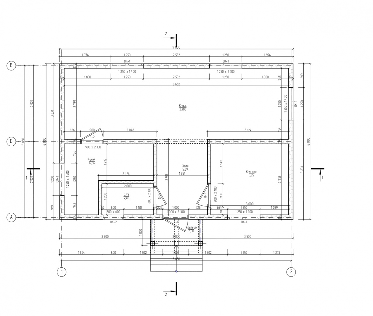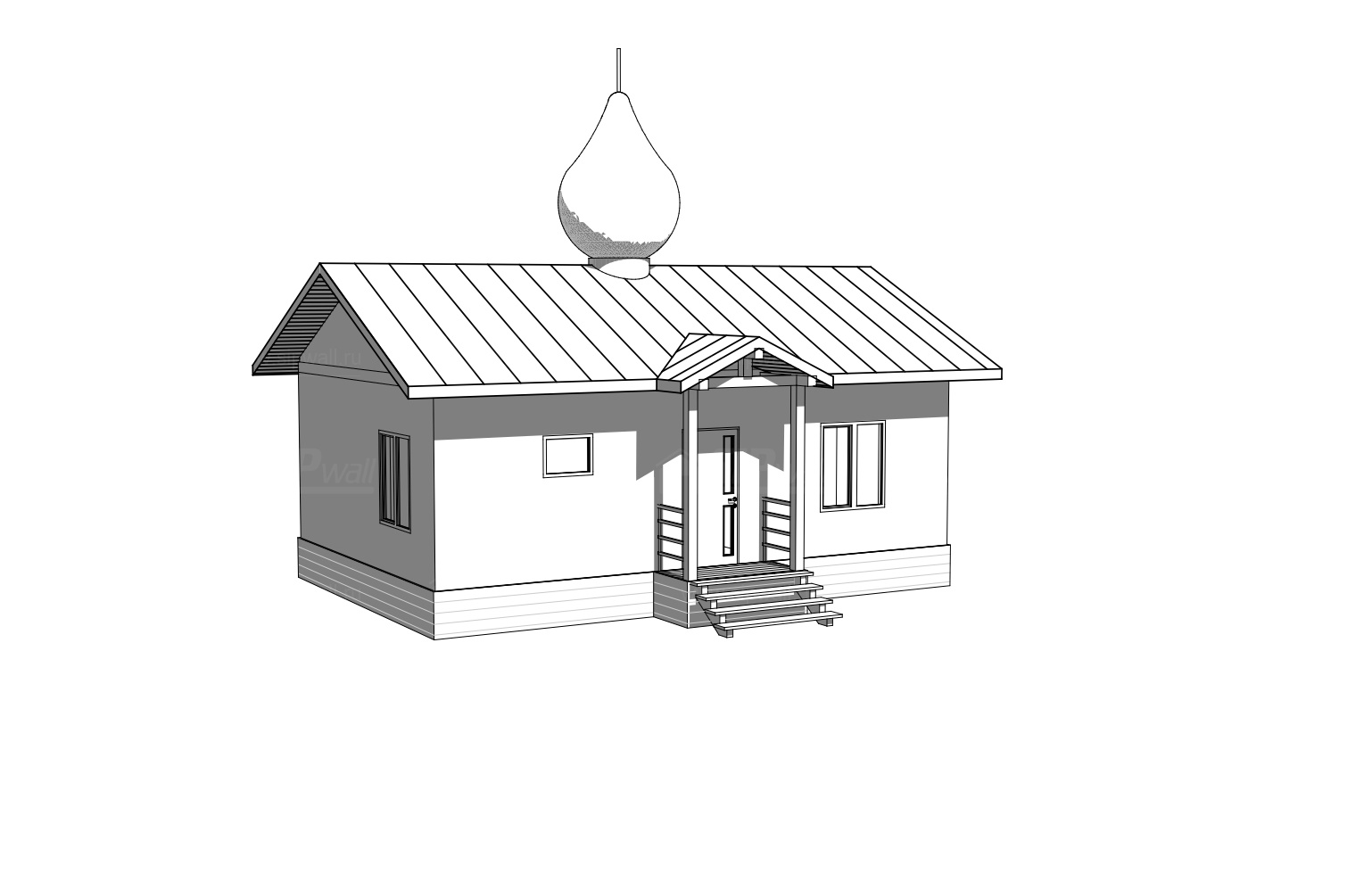 Комплектация домокомплекта: перекрытие на отметке +0.000 - СИП - 174У мм, несущие стены дома выполнены из СИП панелей 174 мм, внутренние несущие стены - СИП 174 мм, не несущие стены - СИП 124 мм Кровля - СИП 174У.