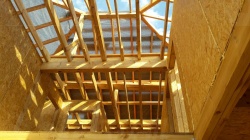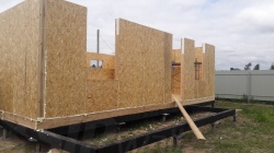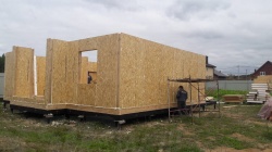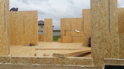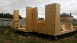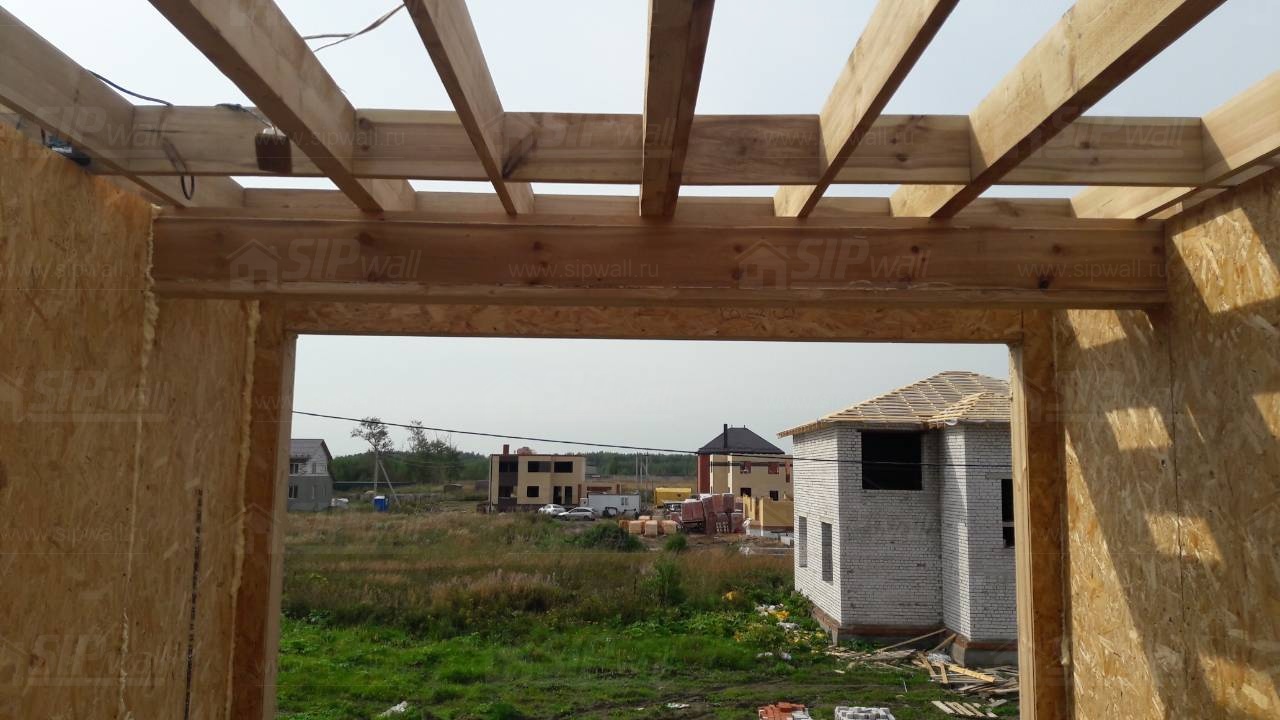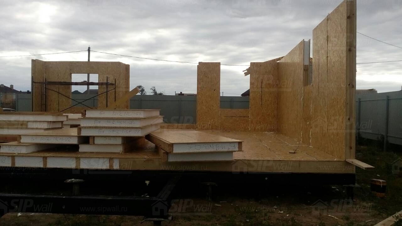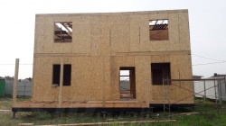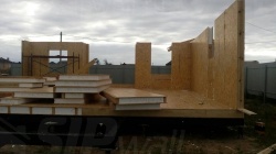 Комплектация домокомплекта: перекрытие на отметке +0.000 - СИП 224У мм., несущие стены дома выполнены из СИП панелей 174 мм., внутренние несущие стены и внутренние не несущие перегородки выполнены выполнены по каркасной тенхнологии . Перекрытие межэтажное - лаги с настилом ОСБ-3 22 мм. Кровля - стропильная система.