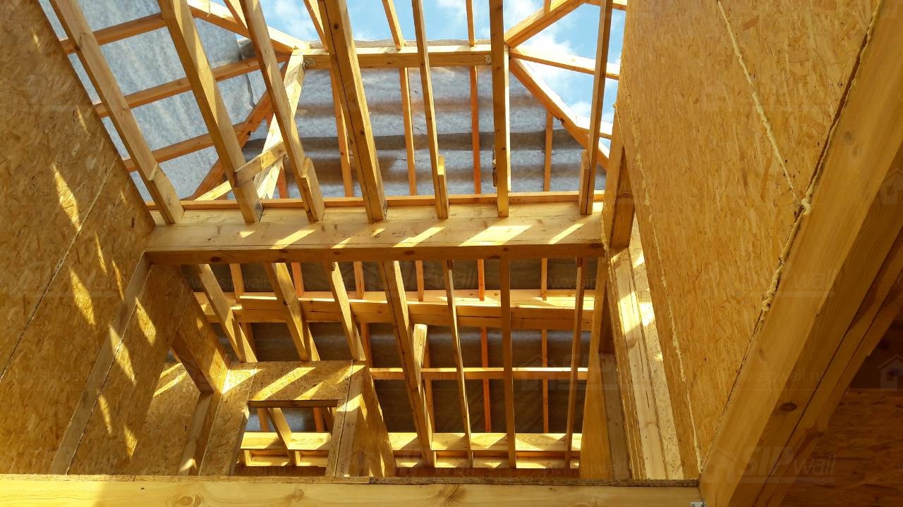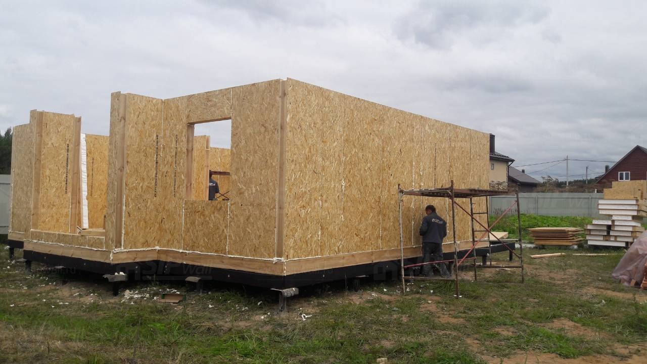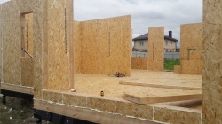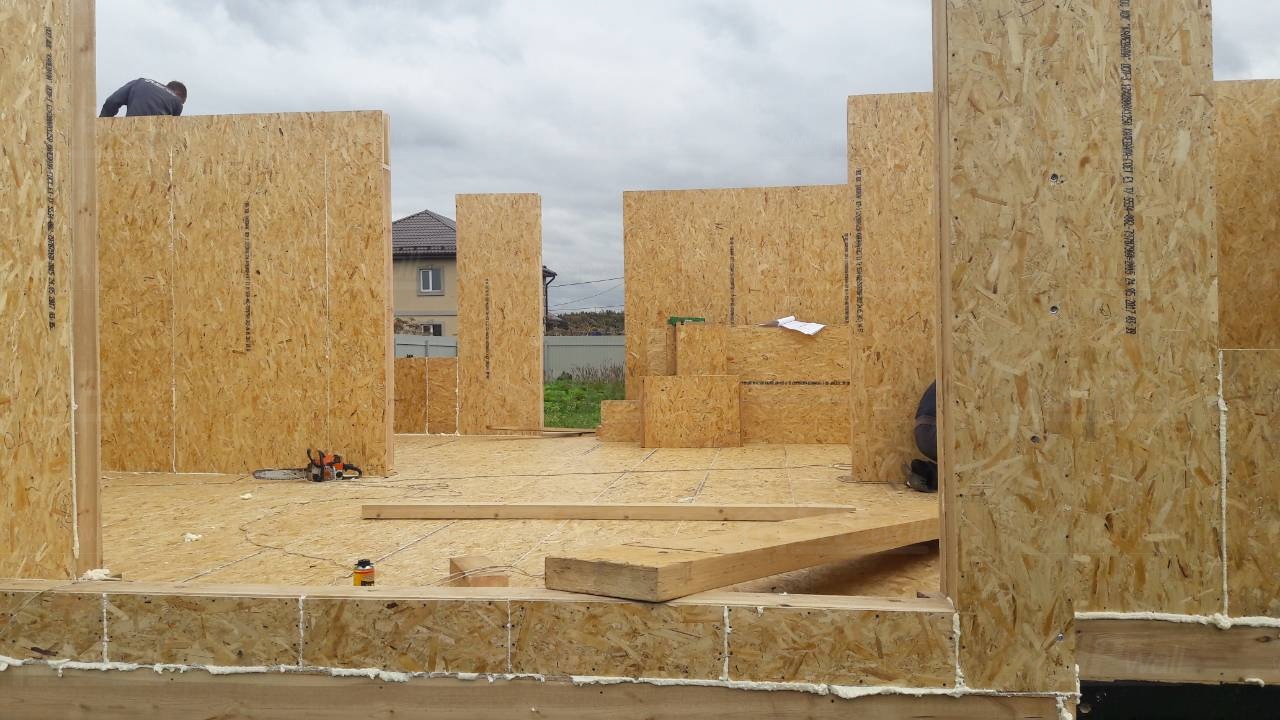 Все СИП панели SIPwall толщиной 224/174/124 мм (плиты OSB-3 толщиной 12 мм "Калевала" Россия и фасадный пенополистирол ПСБ-С 25 по ГОСТ 15588-14 толщиной 200/150/100 мм производства завода "PolarPlast", Россия) нарезаны и обрусованы сухим строганным брусом камерной сушки в соответствии с проектной документацией.