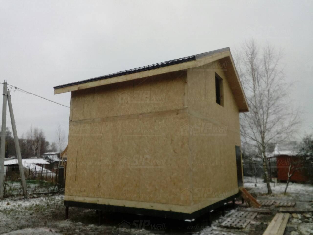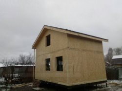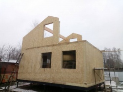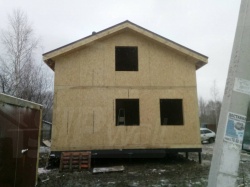 Комплектация домокомплекта: перекрытие на отметке +0.000 - СИП 174У мм., несущие стены дома выполнены из СИП панелей 174 мм., внутренние несущие стены и внутренние не несущие перегородки выполнены по каркасной технологии. Перекрытие межэтажное - лаги с настилом ОСБ-3 22 мм. Кровля - СИП панелей 174У мм.