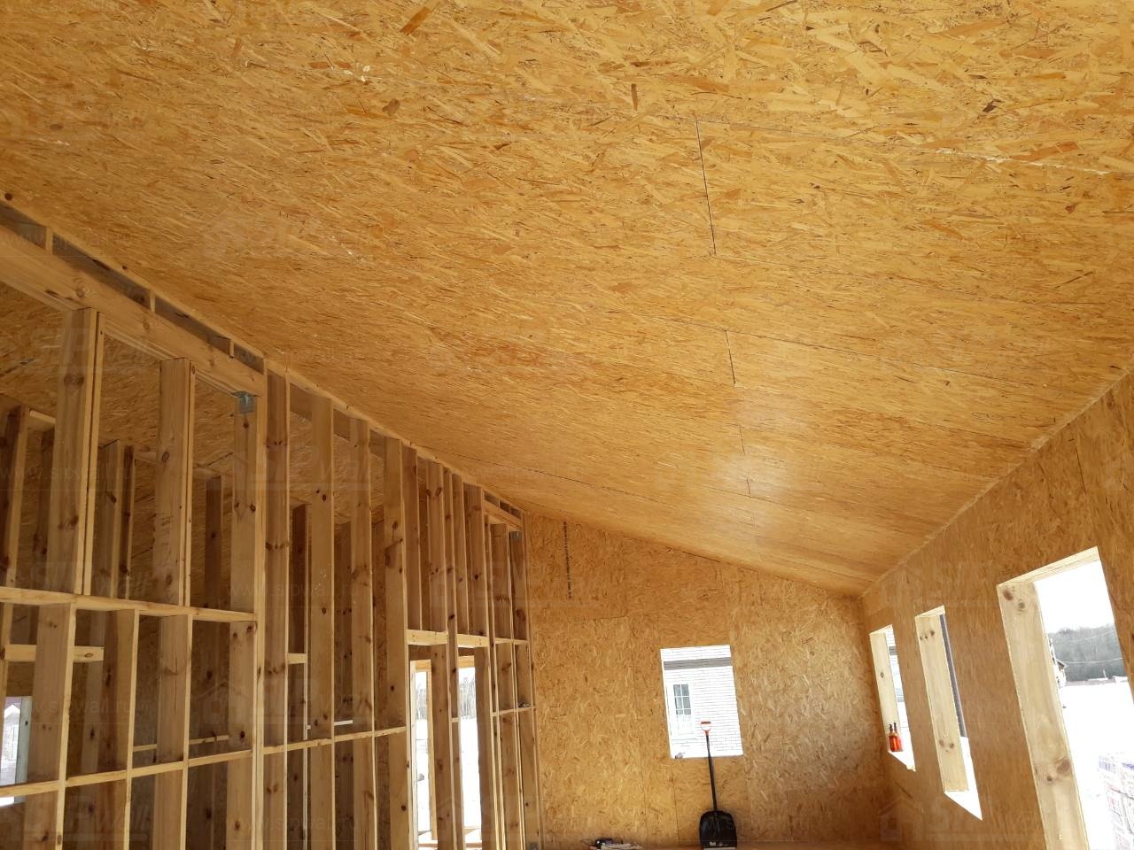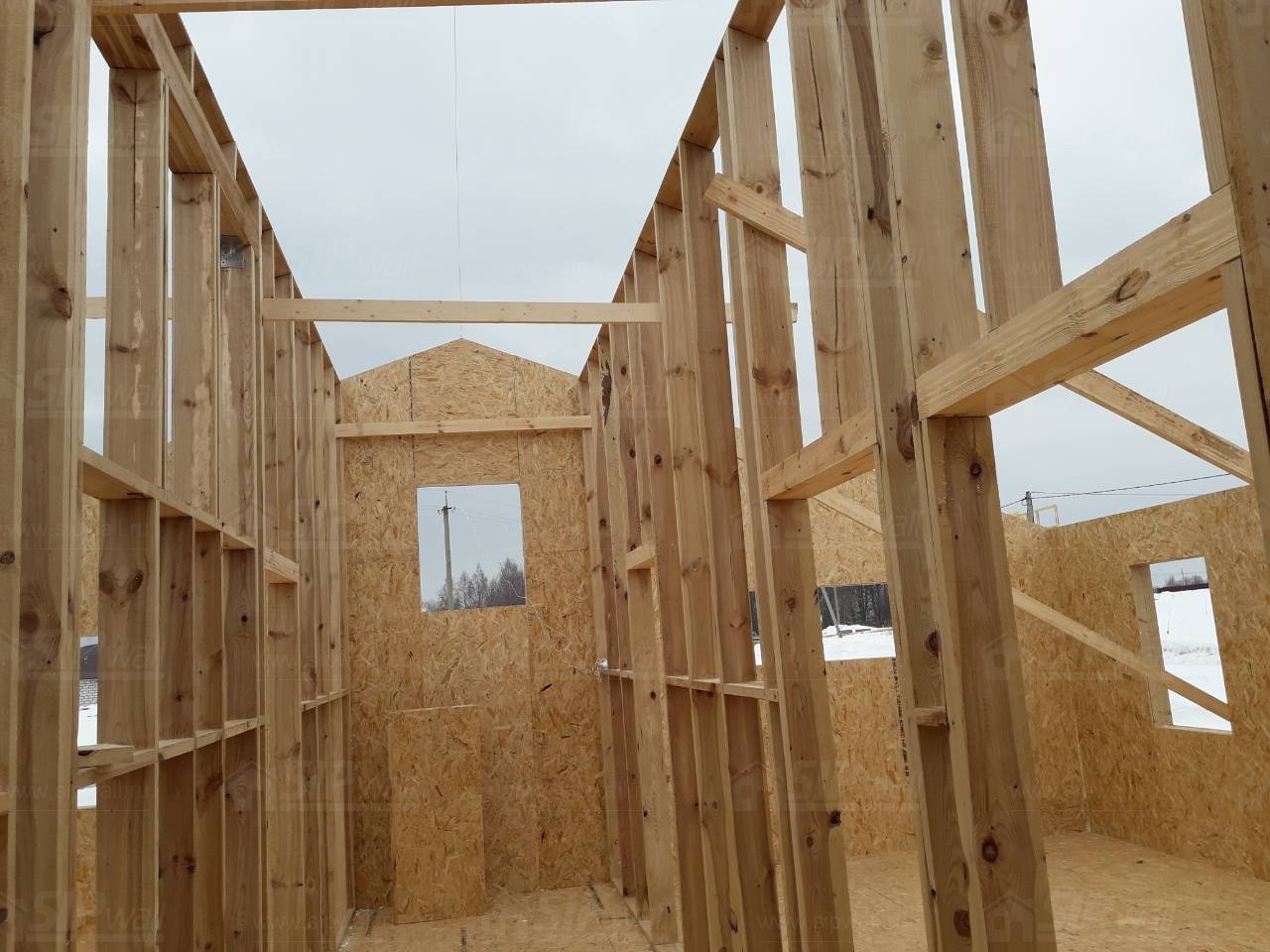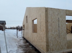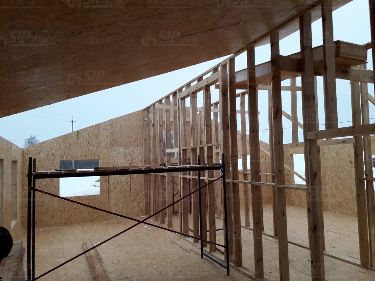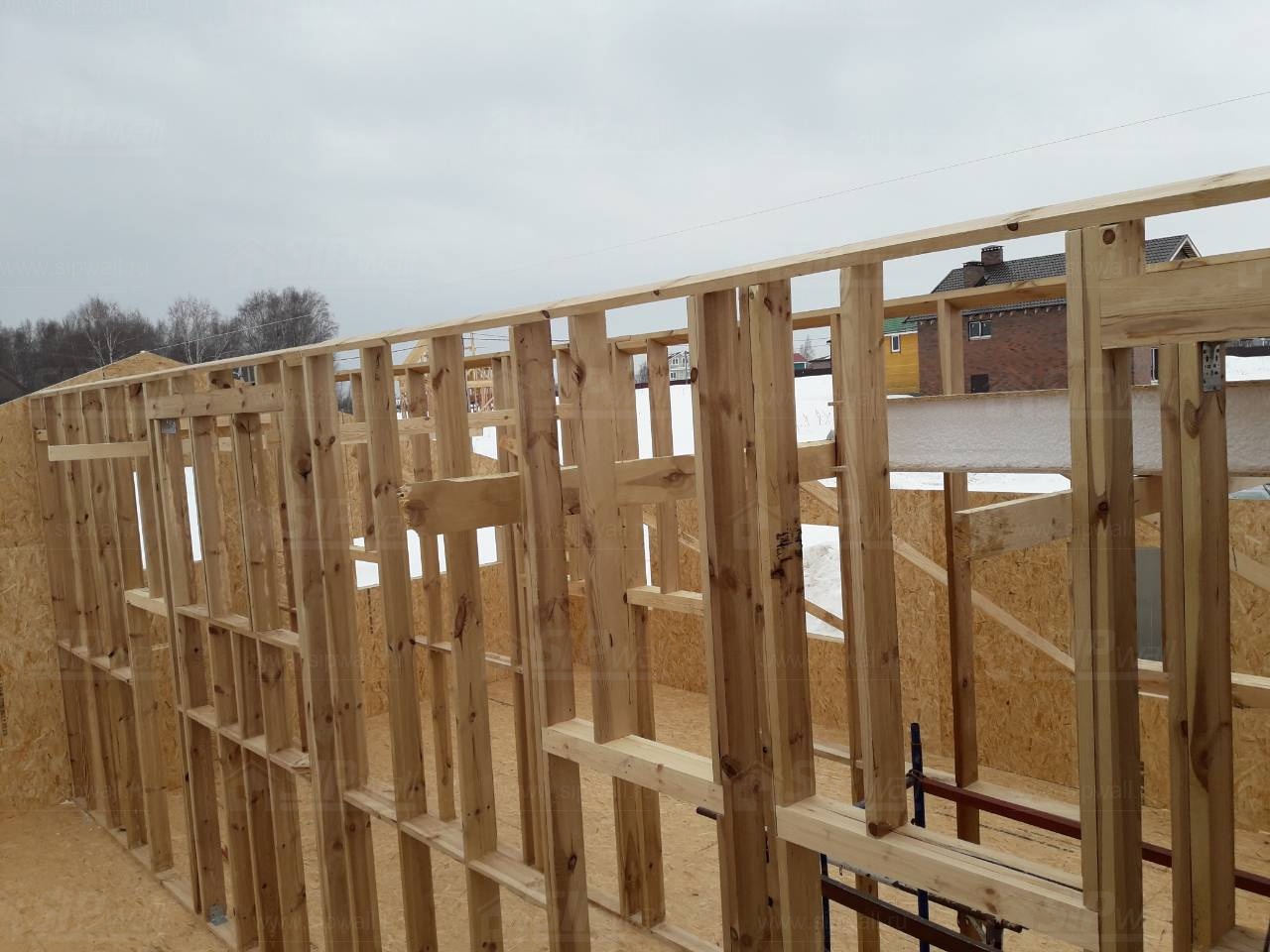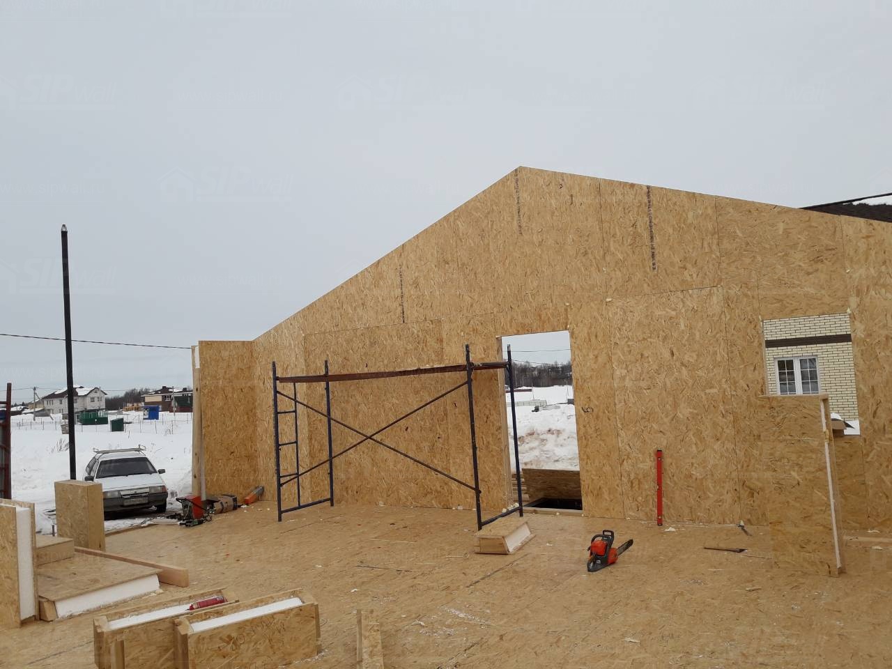 Все СИП панели SIPwall толщиной 224/174/124 мм (плиты OSB-3 толщиной 12 мм "Калевала" Россия и фасадный пенополистирол ПСБ-С 25 по ГОСТ 15588-14 толщиной 200/150/100 мм производства завода "PolarPlast", Россия) нарезаны и обрусованы сухим строганным брусом камерной сушки в соответствии с проектной документацией.