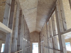 Комплектация домокомплекта: перекрытие на отметке +0.000 - СИП 224У мм., несущие стены дома выполнены из СИП панелей 174 мм., внутренние несущие стены и внутренние не несущие перегородки выполнены по каркасной технологии. Кровля выполнена из СИП 224У мм.,.