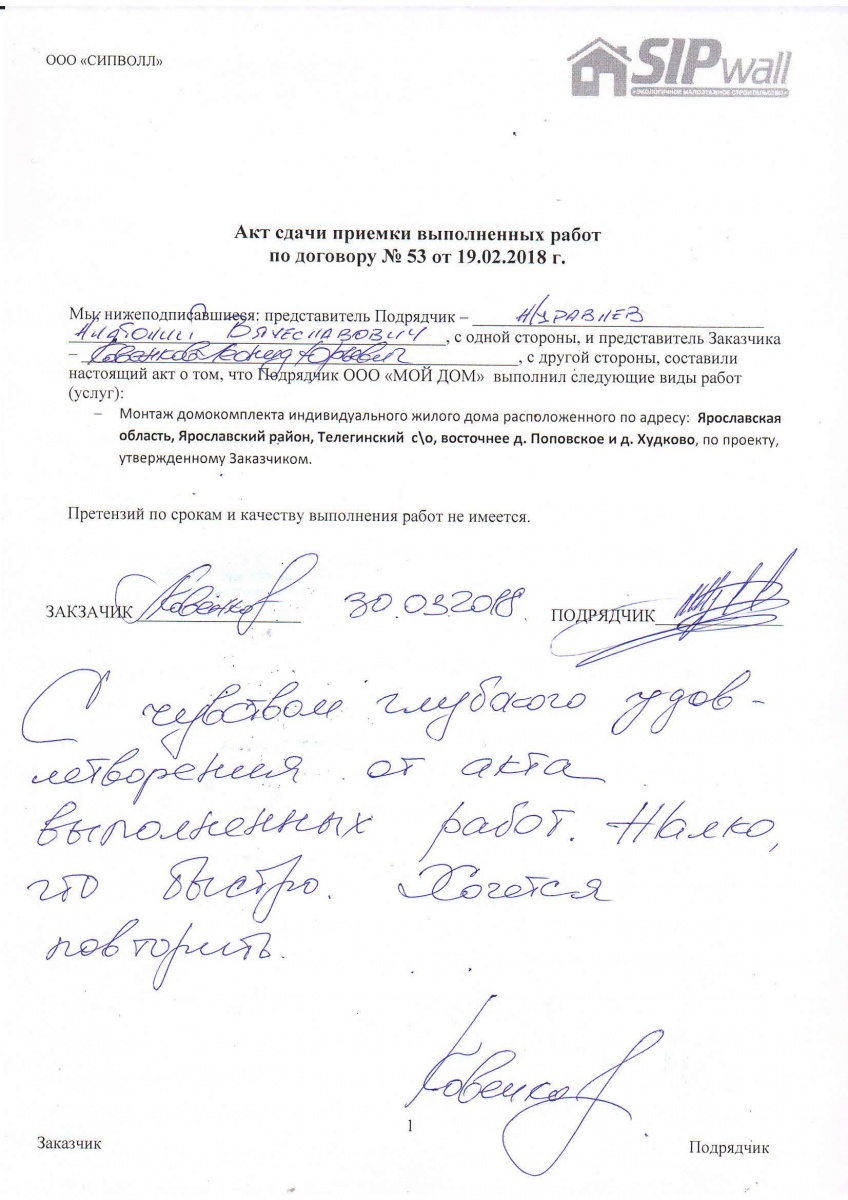 На выходе с завода «СИПВОЛЛ» домокомплект имеет 99-% ную готовность.