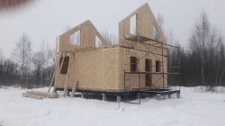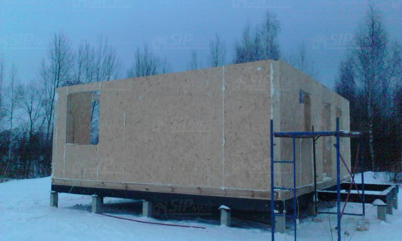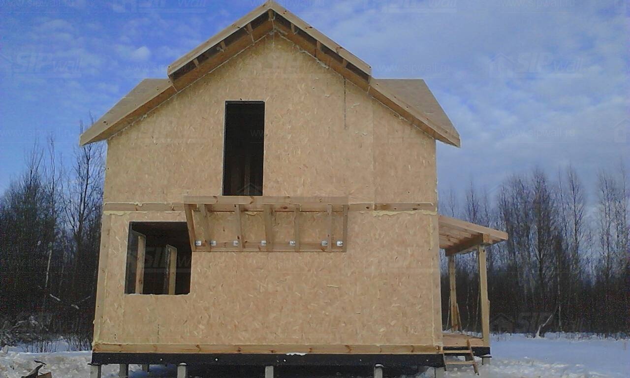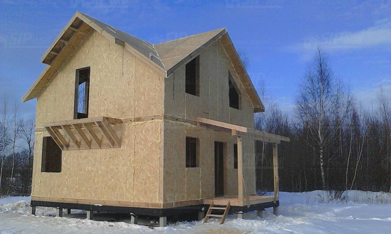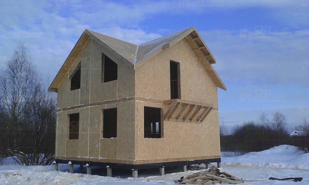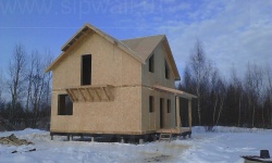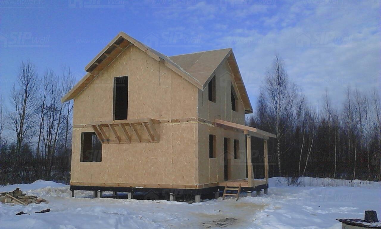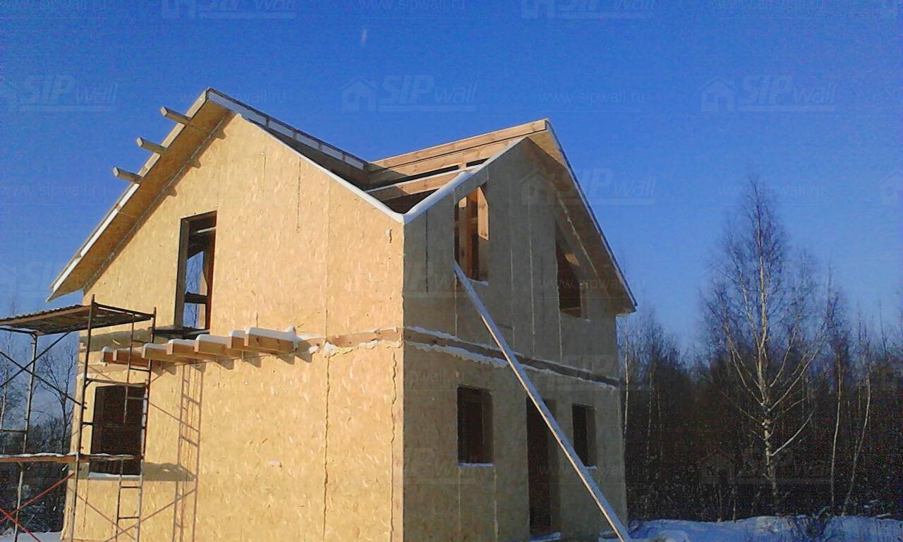Комплектация домокомплекта: перекрытие на отметке +0.000 - СИП 174У мм., несущие стены дома выполнены из СИП панелей 174 мм., внутренние несущие стены и внутренние не несущие перегородки выполнены по каркасной технологии. Перекрытие межэтажное - СИП 174У мм. Кровля - выполнена из СИП панелей 174 мм.