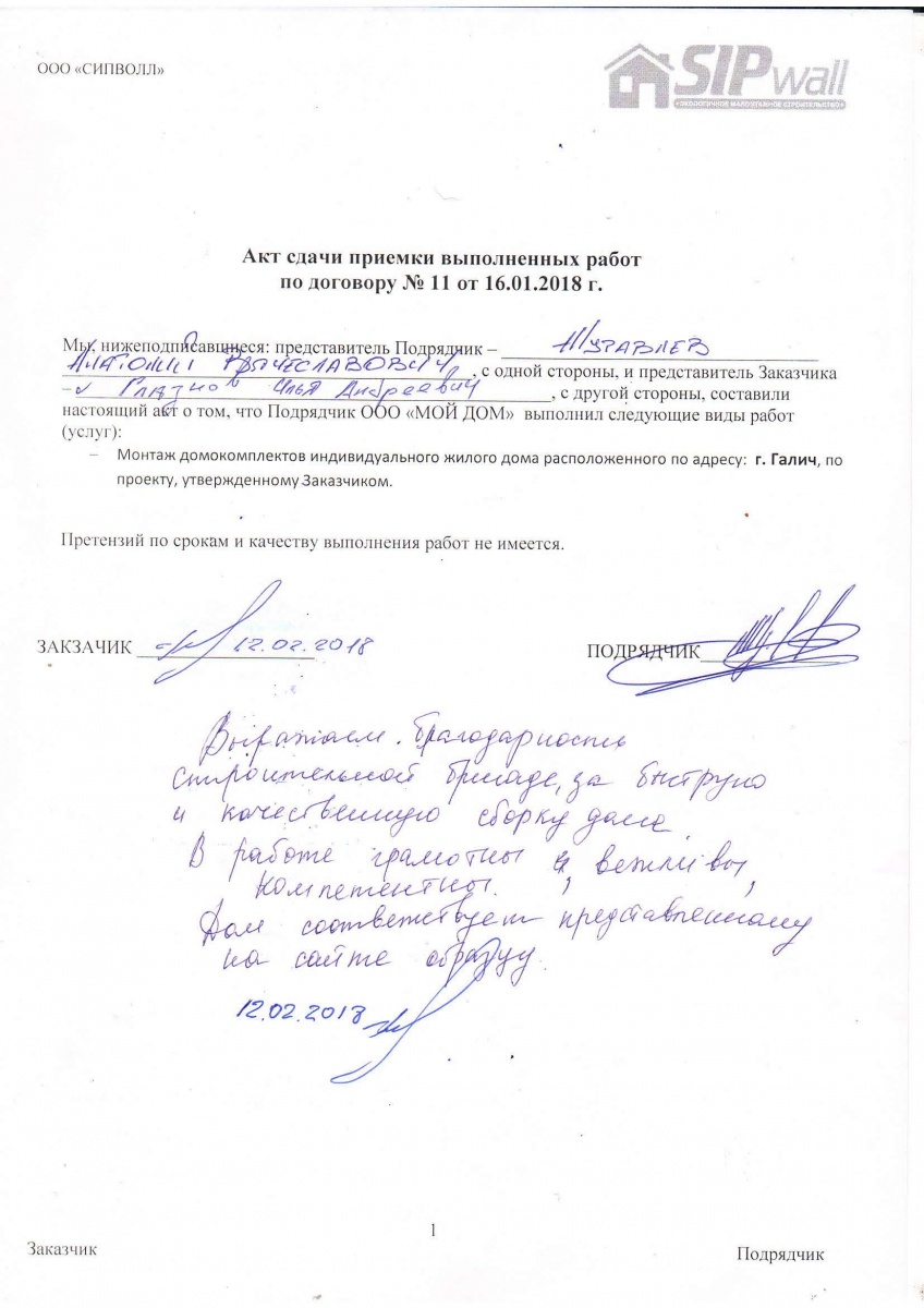 На выходе с завода «СИПВОЛЛ» домокомплект имеет 99-% ную готовность.