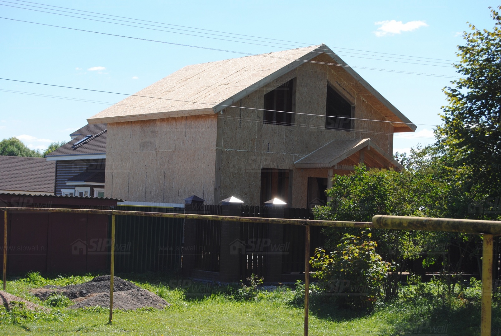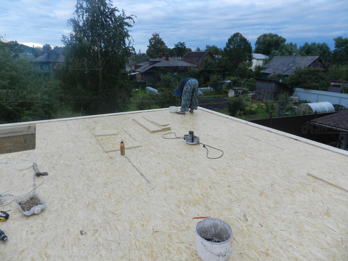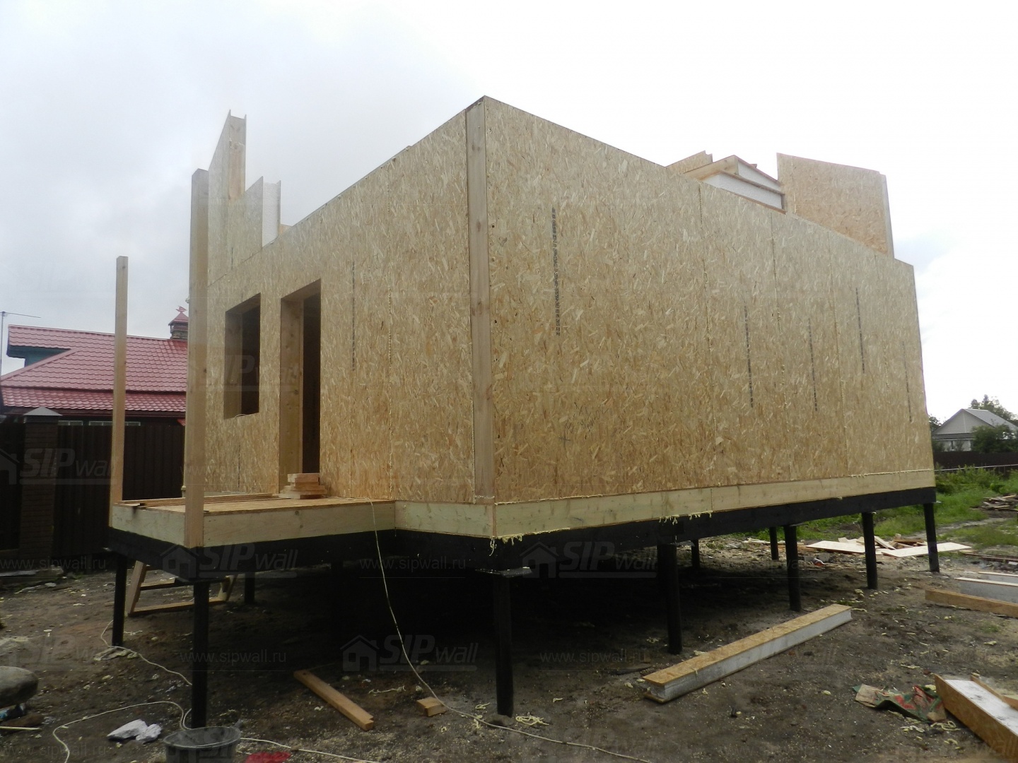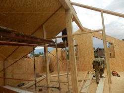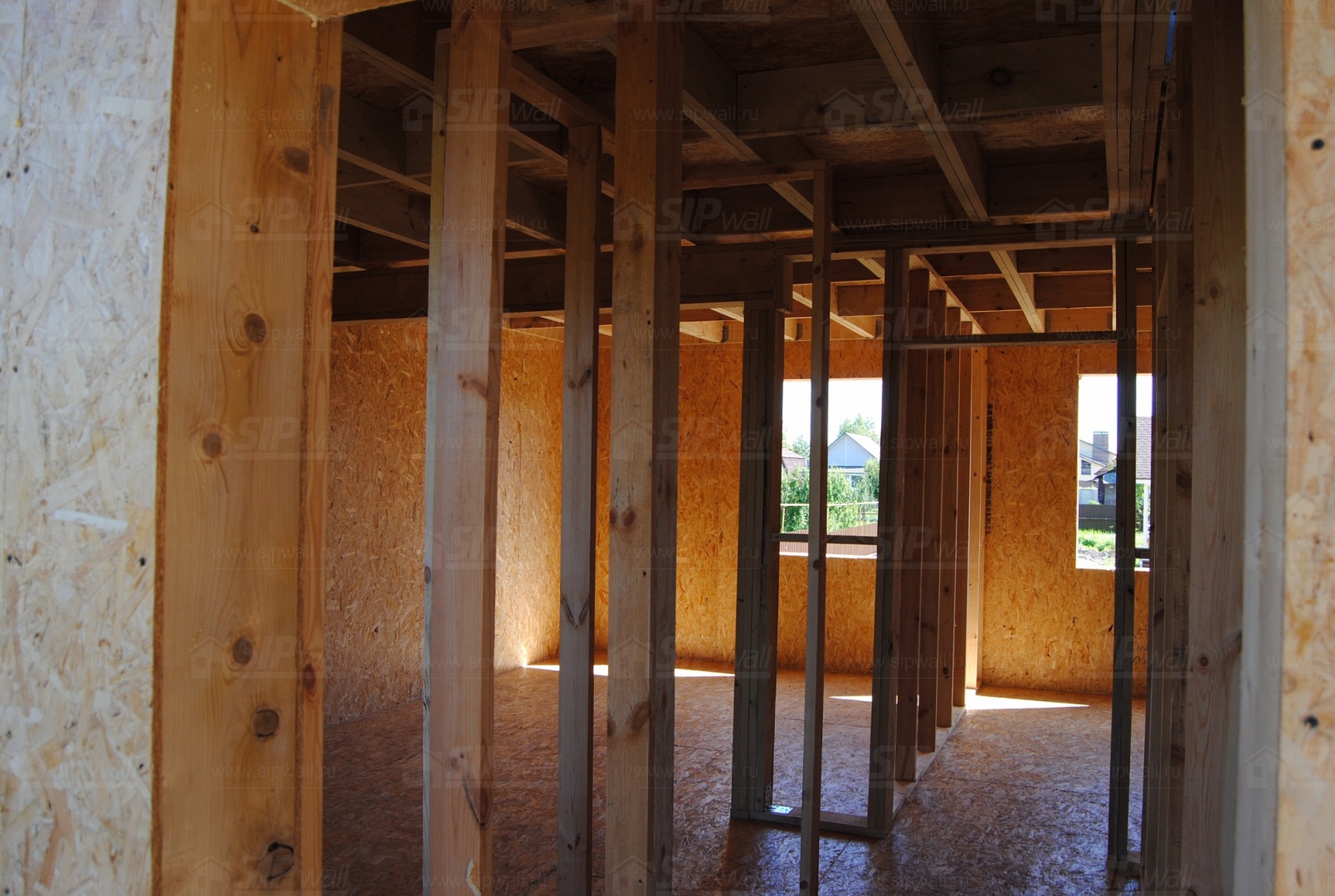 Все СИП панели SIPwall толщиной 224/174/124 мм (плиты OSB-3 толщиной 12 мм "Калевала" Россия и фасадный пенополистирол ПСБ-С 25 по ГОСТ 15588-14 толщиной 200/150/100 мм производства завода "PolarPlast", Россия) нарезаны и обрусованы сухим строганным брусом камерной сушки в соответствии с проектной документацией.