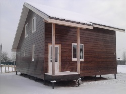 Домокомплект - изготовлен по проекту из СИП панелей произведенный по технологии SIPwall (ЭКОПАН) на собственном заводе расположенном в г. Шуя, Ивановской области. При изготовлении домокомплекта панельно каркасного дома используется только сухой строганный брус камерной сушки, обработанный огнебиозащитным составом.