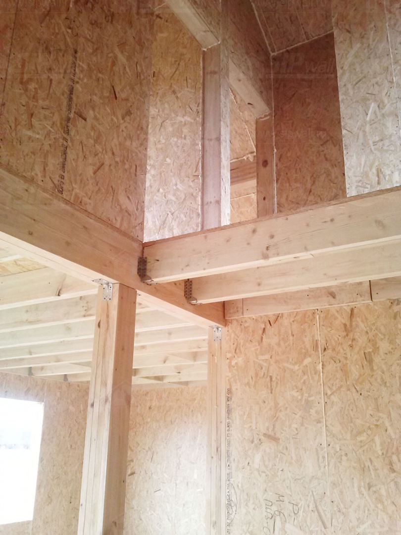 Все СИП панели SIPwall толщиной 224/174/124 мм (плиты OSB-3 толщиной 12 мм "Калевала" Россия и фасадный пенополистирол ПСБ-С 25 по ГОСТ 15588-14 толщиной 200/150/100 мм производства завода "PolarPlast", Россия) нарезаны и обрусованы сухим строганным брусом камерной сушки в соответствии с проектной документацией.