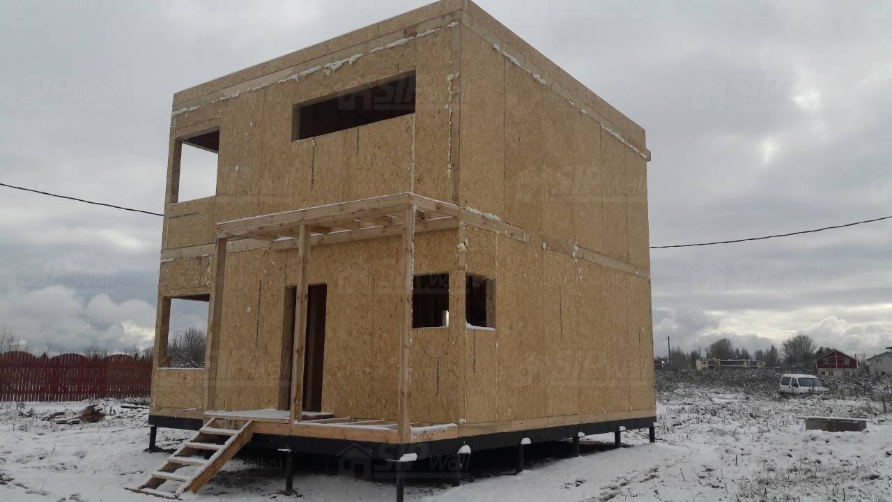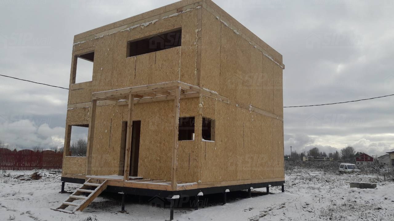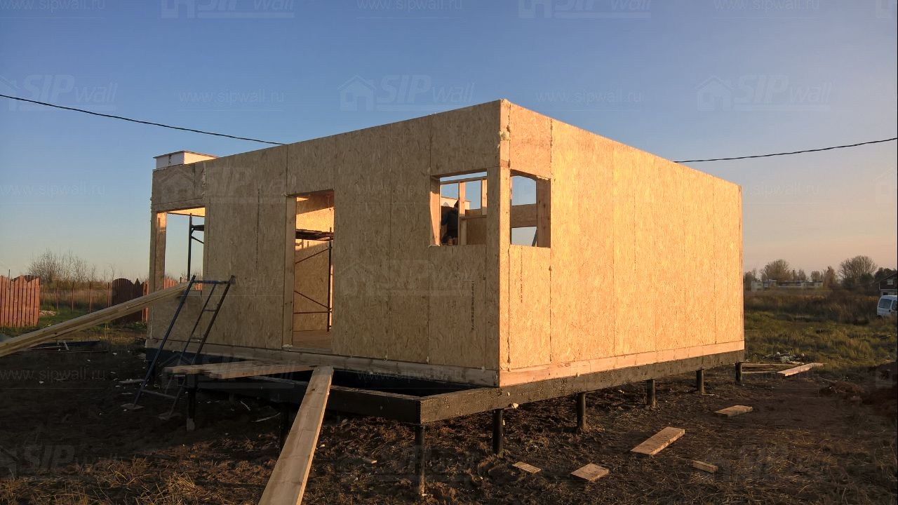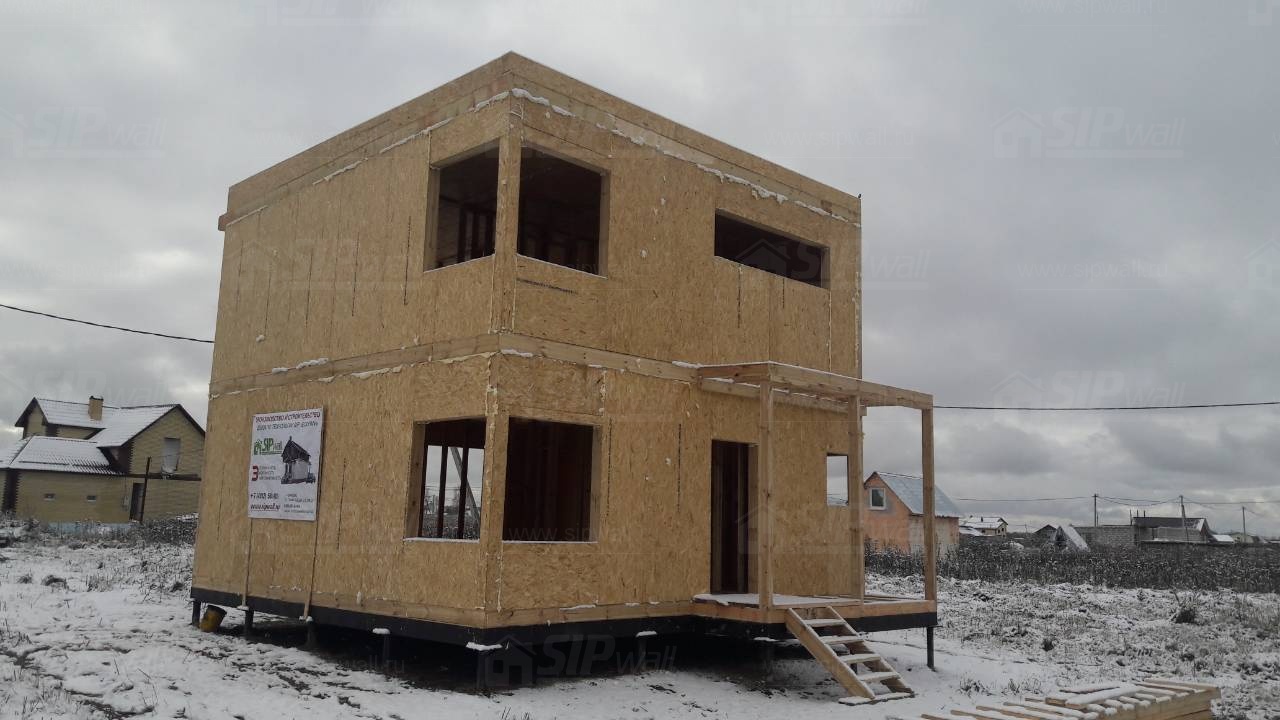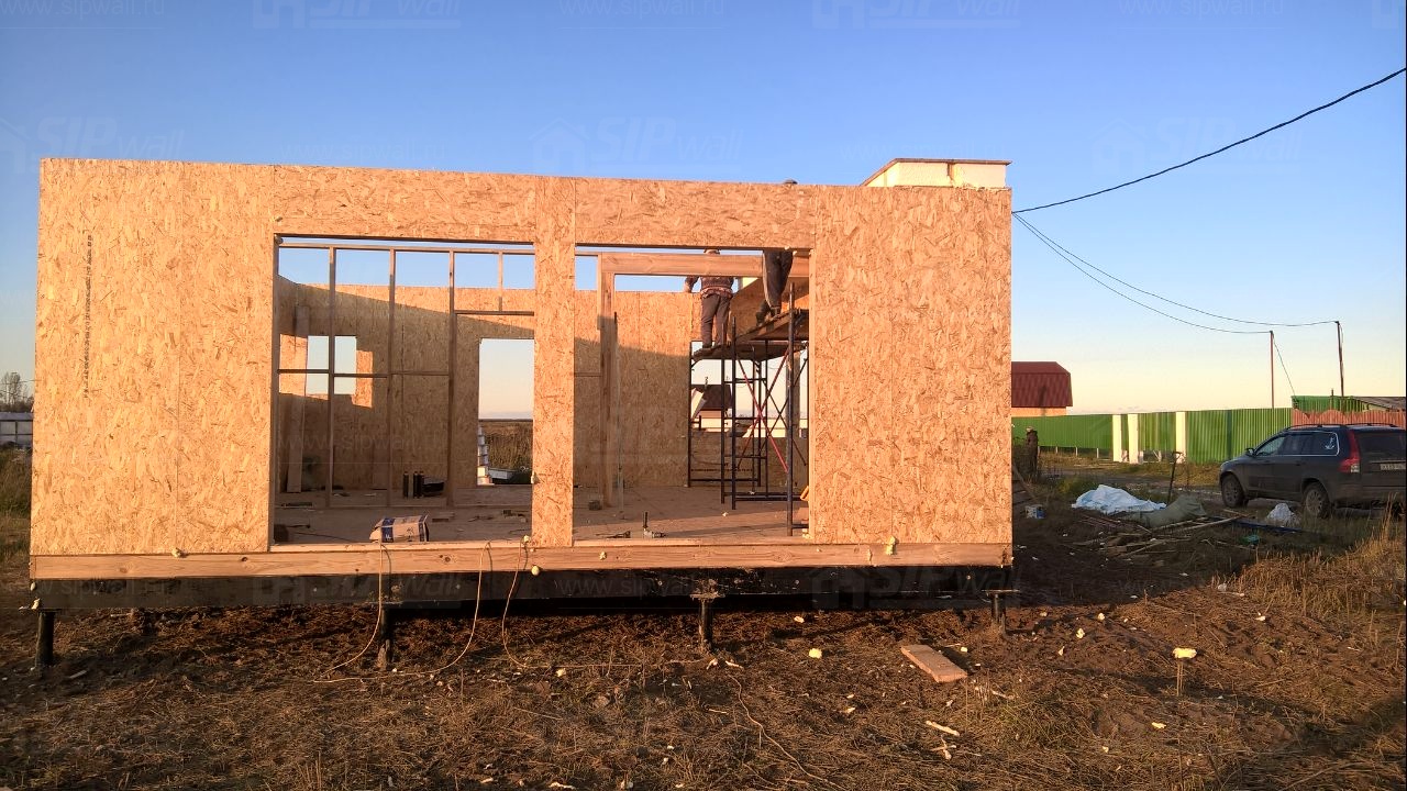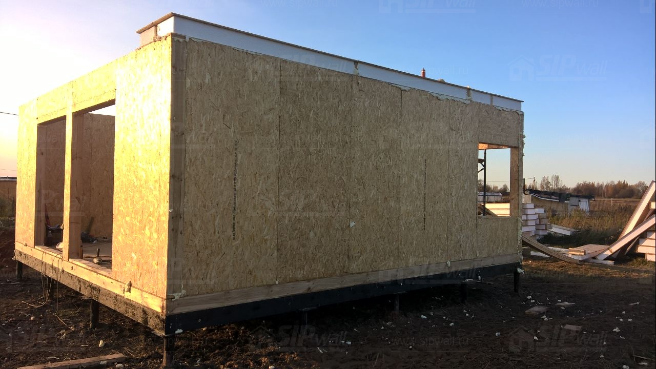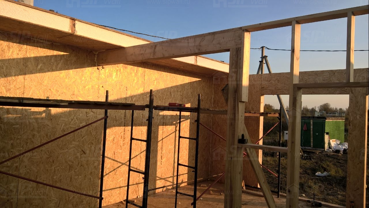 Все СИП панели SIPwall толщиной 224/174/124 мм (плиты OSB-3 толщиной 12 мм "Калевала" Россия и фасадный пенополистирол ПСБ-С 25 по ГОСТ 15588-14 толщиной 200/150/100 мм производства завода "PolarPlast", Россия) нарезаны и обрусованы сухим строганным брусом камерной сушки в соответствии с проектной документацией.