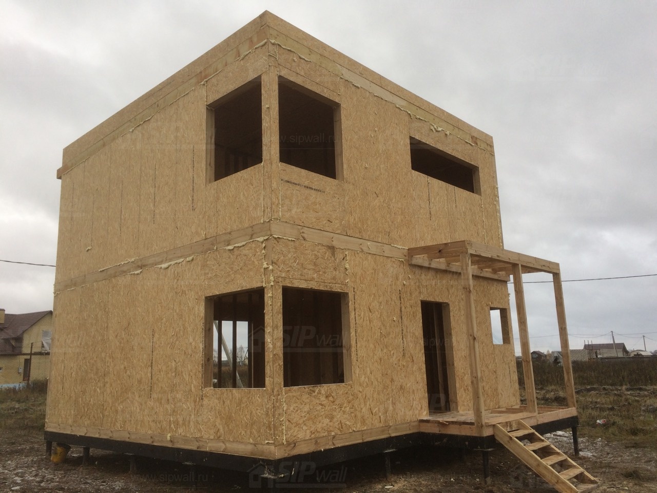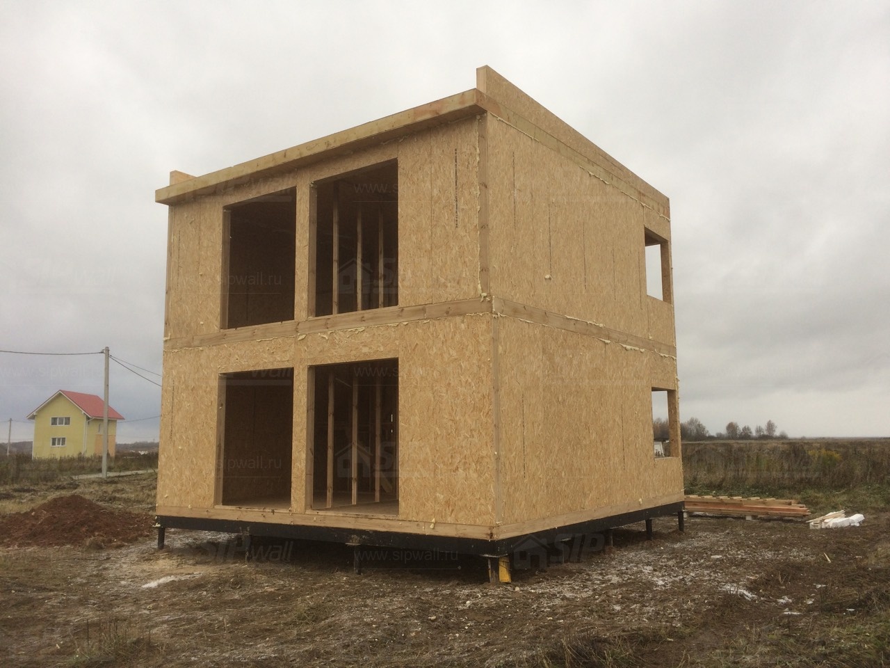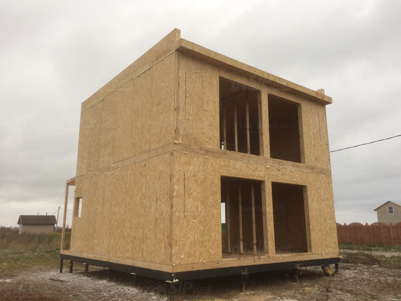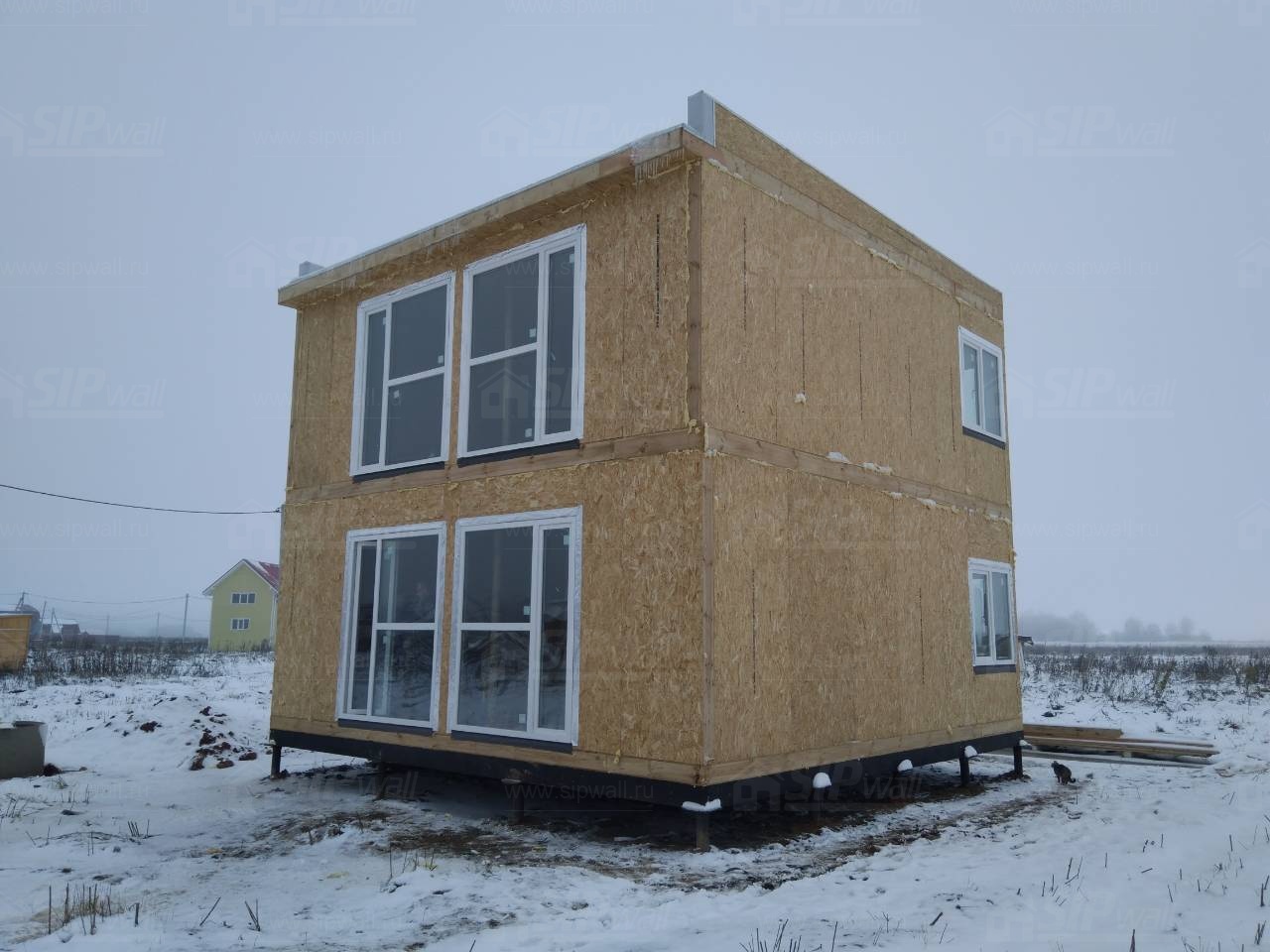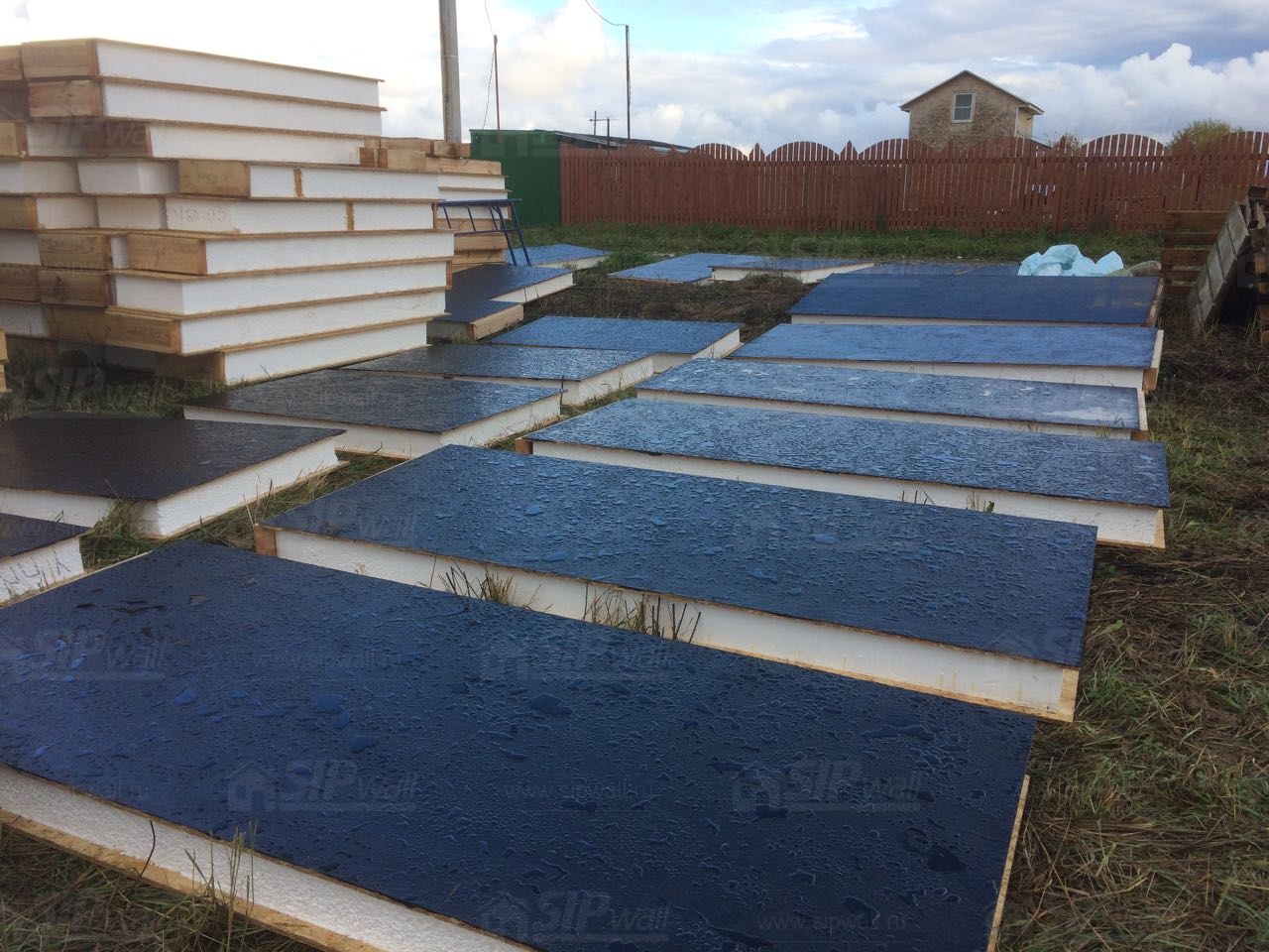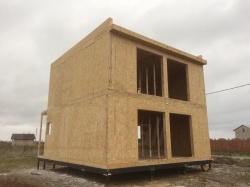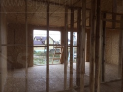 Все СИП панели SIPwall толщиной 224/174/124 мм (плиты OSB-3 толщиной 12 мм "Калевала" Россия и фасадный пенополистирол ПСБ-С 25 по ГОСТ 15588-14 толщиной 200/150/100 мм производства завода "PolarPlast", Россия) нарезаны и обрусованы сухим строганным брусом камерной сушки в соответствии с проектной документацией.