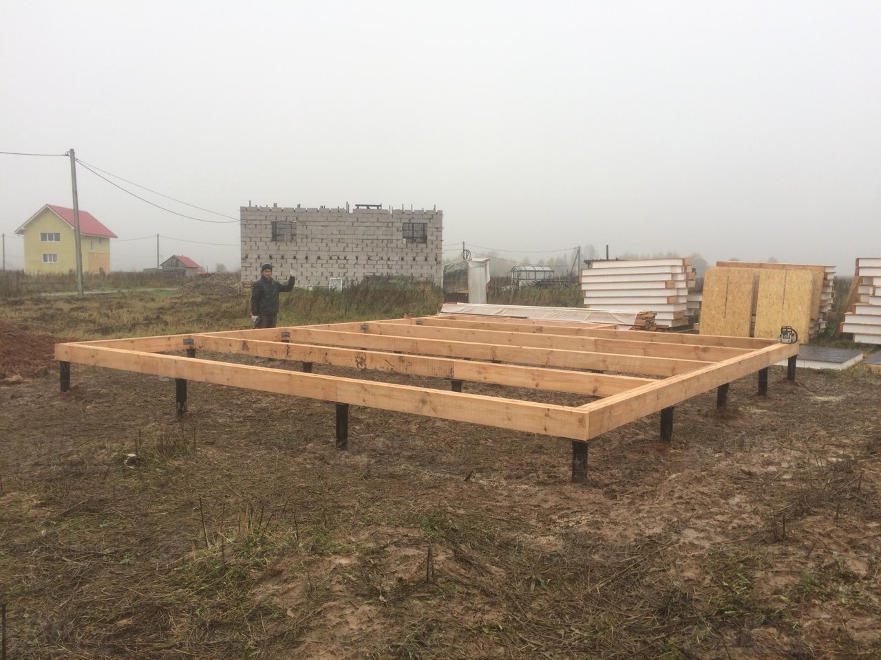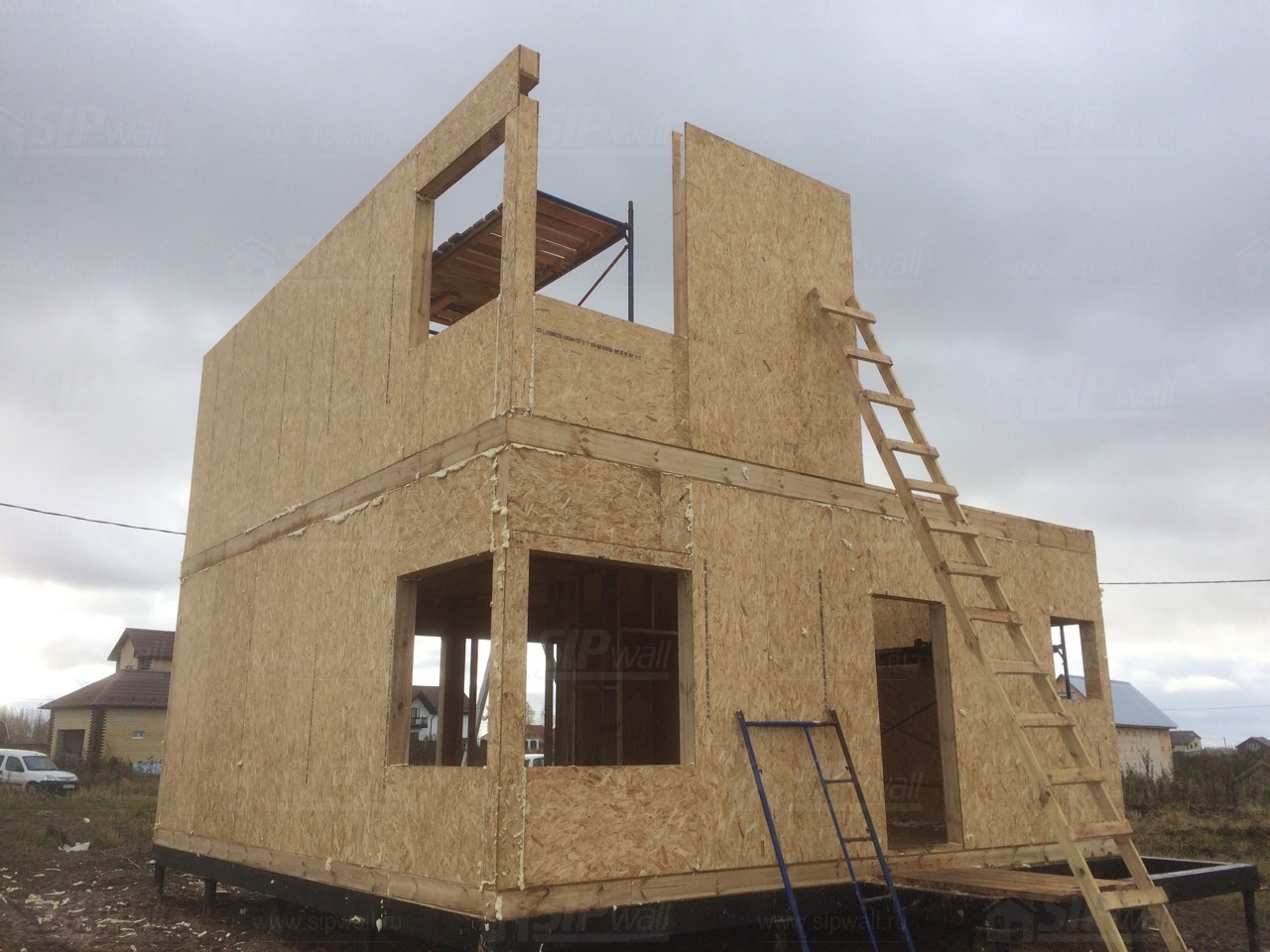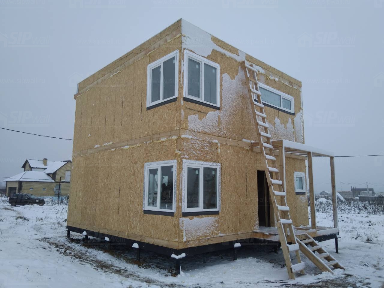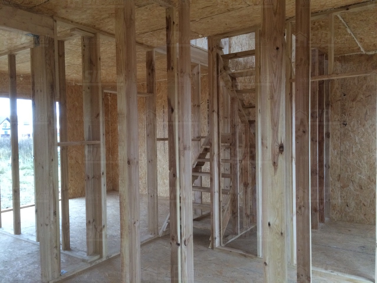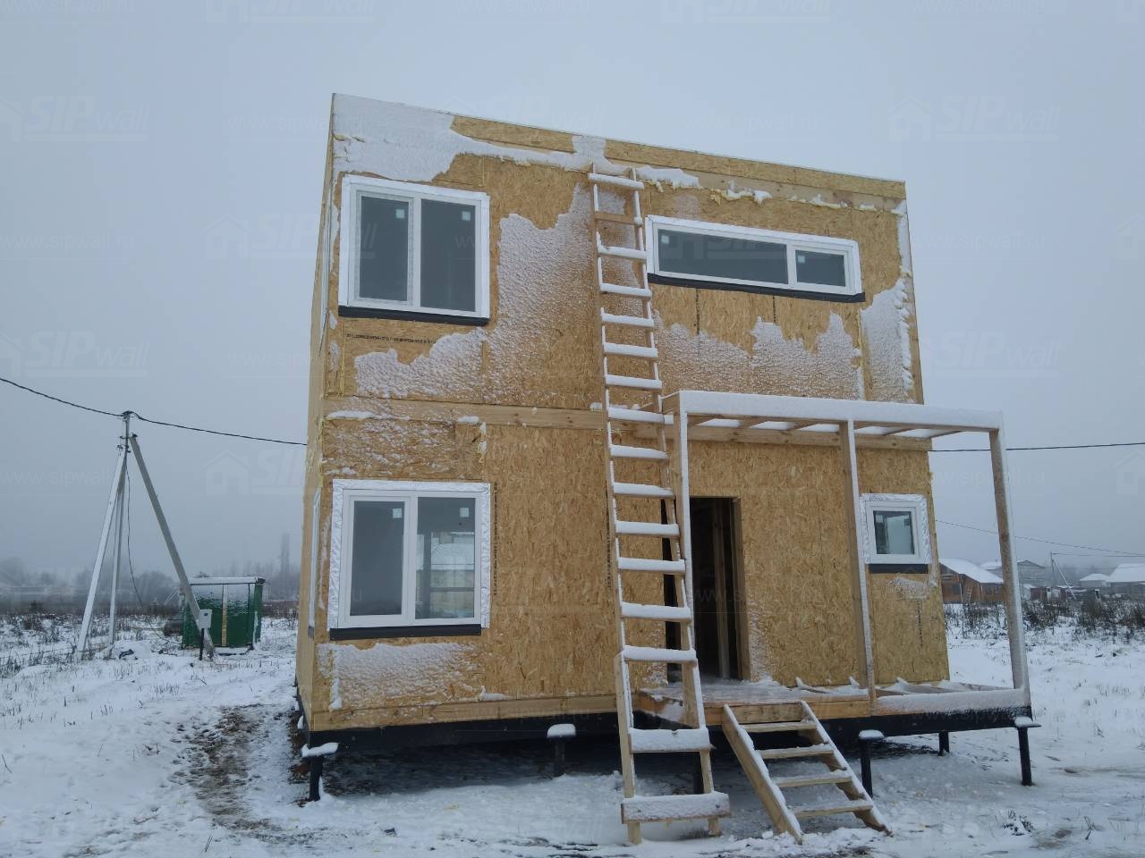 Все СИП панели SIPwall толщиной 224/174/124 мм (плиты OSB-3 толщиной 12 мм "Калевала" Россия и фасадный пенополистирол ПСБ-С 25 по ГОСТ 15588-14 толщиной 200/150/100 мм производства завода "PolarPlast", Россия) нарезаны и обрусованы сухим строганным брусом камерной сушки в соответствии с проектной документацией.