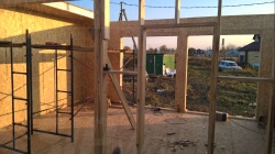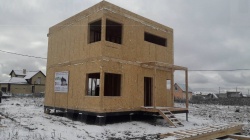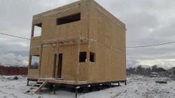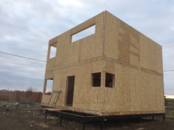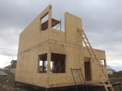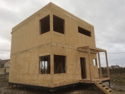 Комплектация домокомплекта: перекрытие на отметке +0.000 - СИП 174У мм., несущие стены дома выполнены из СИП панелей 174 мм., внутренние несущие стены и внутренние не несущие перегородки выполнены по каркасной технологии. Перекрытие межэтажное - из СИП панелей 224У мм. Кровля - СИП панелей 224У мм.