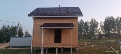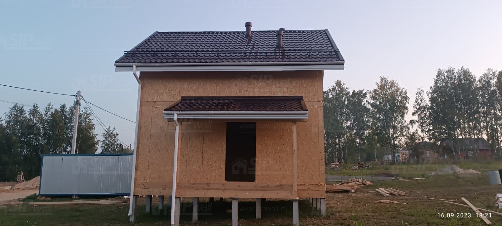 Домокомплект - изготовлен по проекту из СИП панелей произведенный по технологии SIPwall (ЭКОПАН) на собственном заводе расположенном в г. Шуя, Ивановской области. При изготовлении домокомплекта панельно каркасного дома используется только сухой строганный брус камерной сушки, обработанный огнебиозащитным составом.