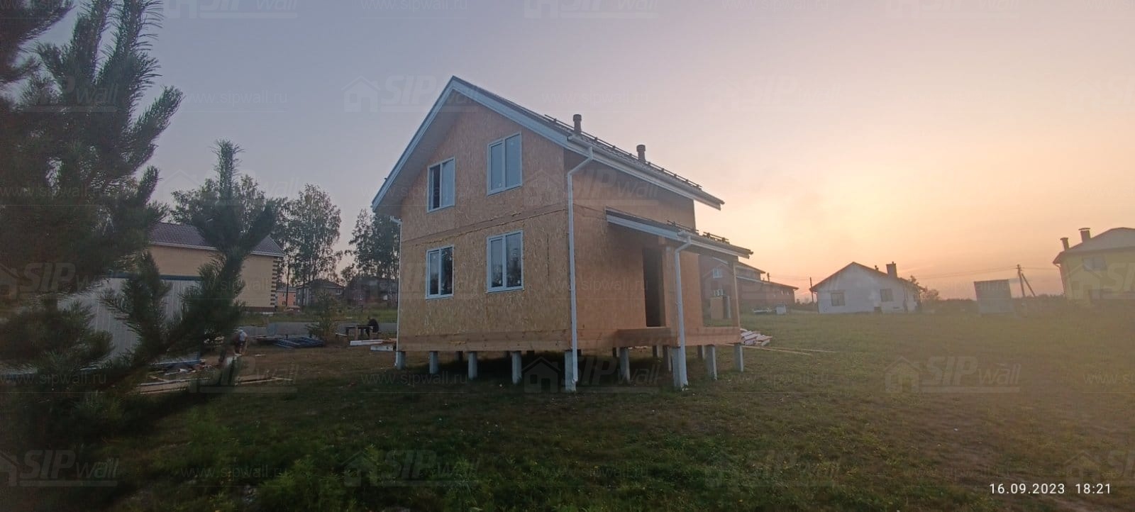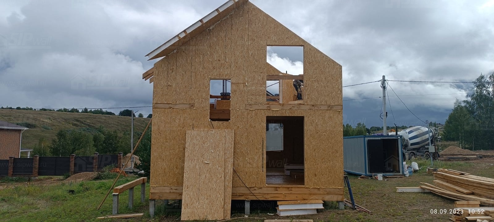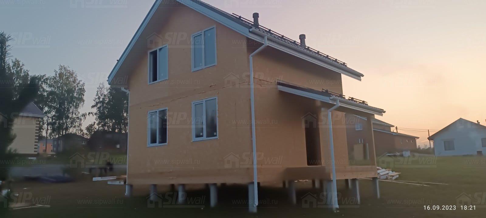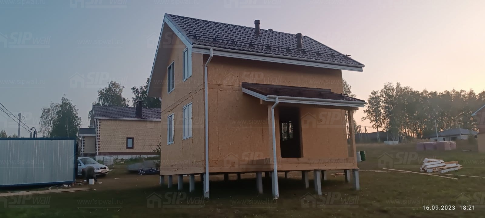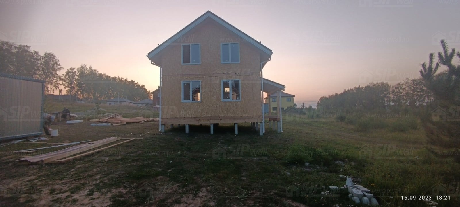 Все СИП панели SIPwall толщиной 224/174/124 мм (плиты OSB-3 толщиной 12 мм "Калевала" Россия и фасадный пенополистирол ППС-14 толщиной 200/150/100 мм производства, Россия) нарезаны и обрусованы сухим строганным брусом камерной сушки в соответствии с проектной документацией.