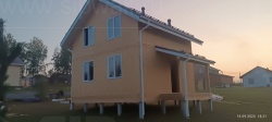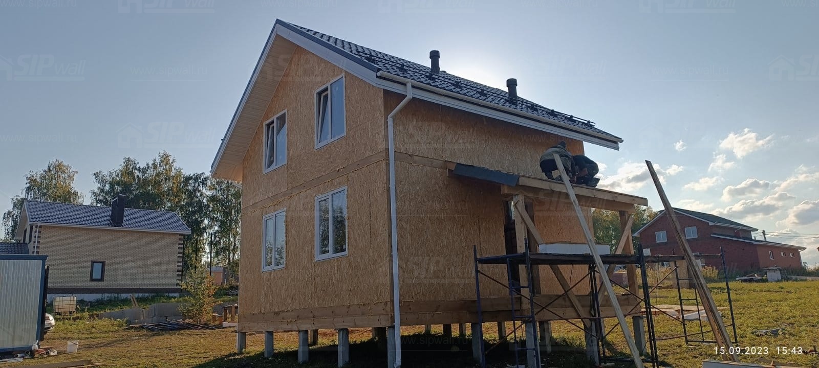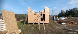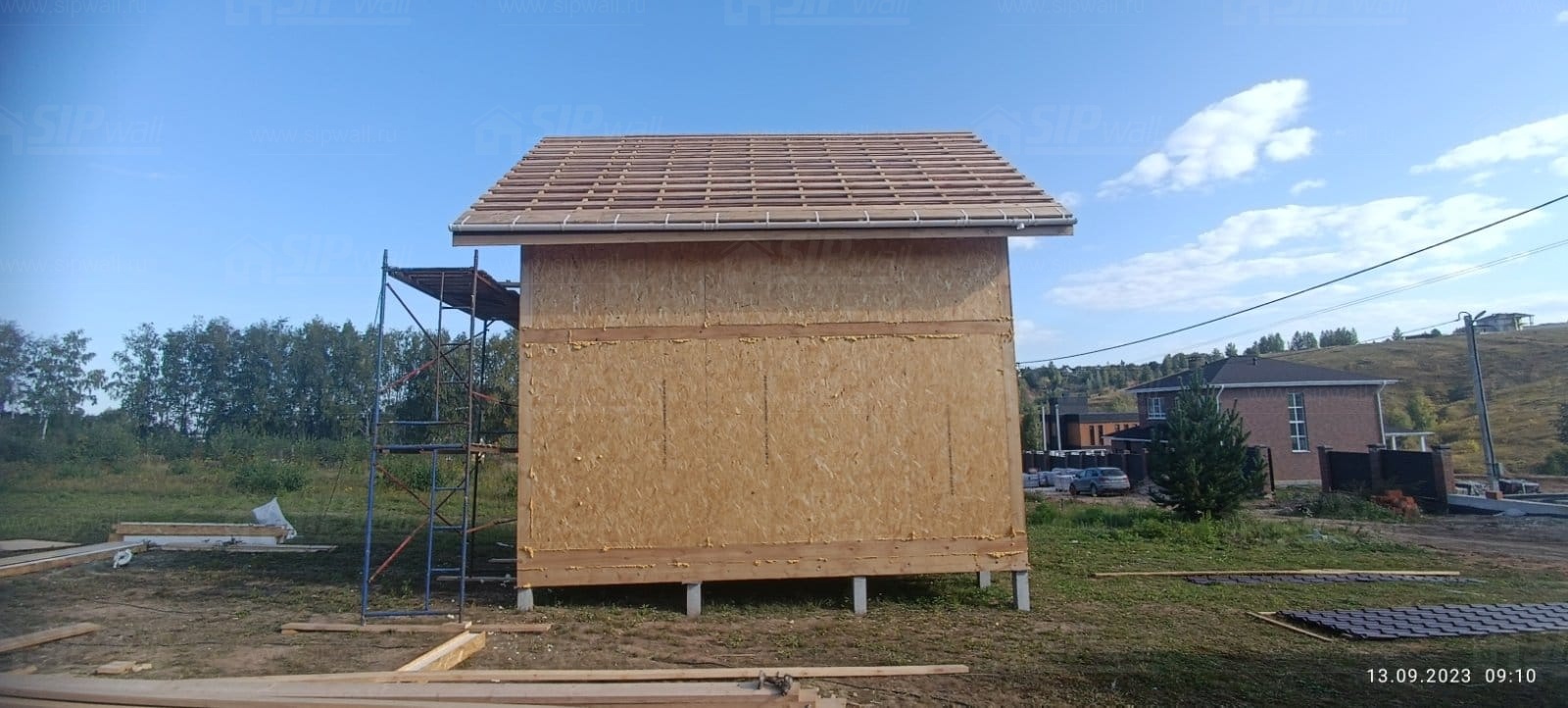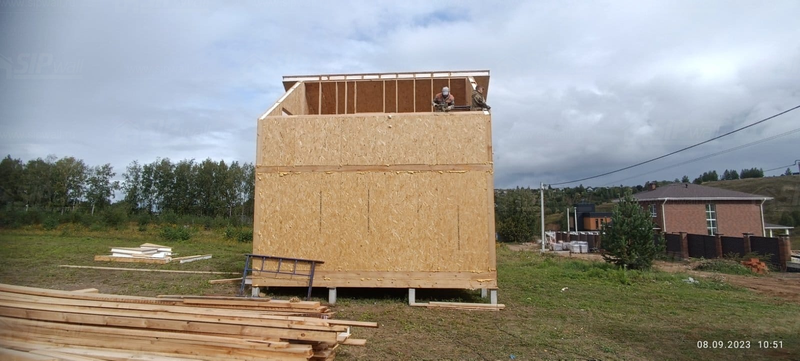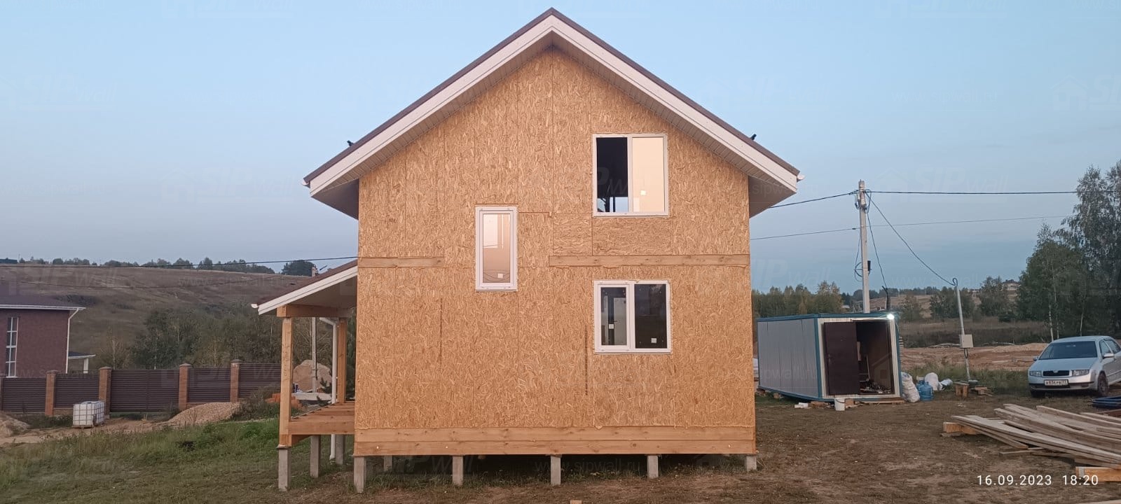 Все СИП панели SIPwall толщиной 224/174/124 мм (плиты OSB-3 толщиной 12 мм "Калевала" Россия и фасадный пенополистирол ППС-14 толщиной 200/150/100 мм производства, Россия) нарезаны и обрусованы сухим строганным брусом камерной сушки в соответствии с проектной документацией.