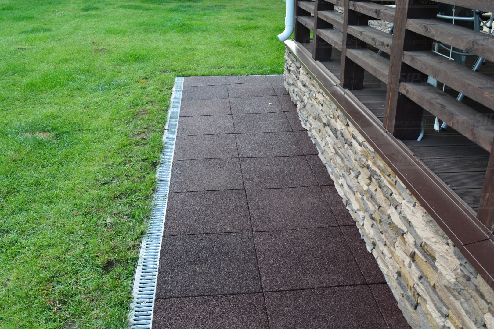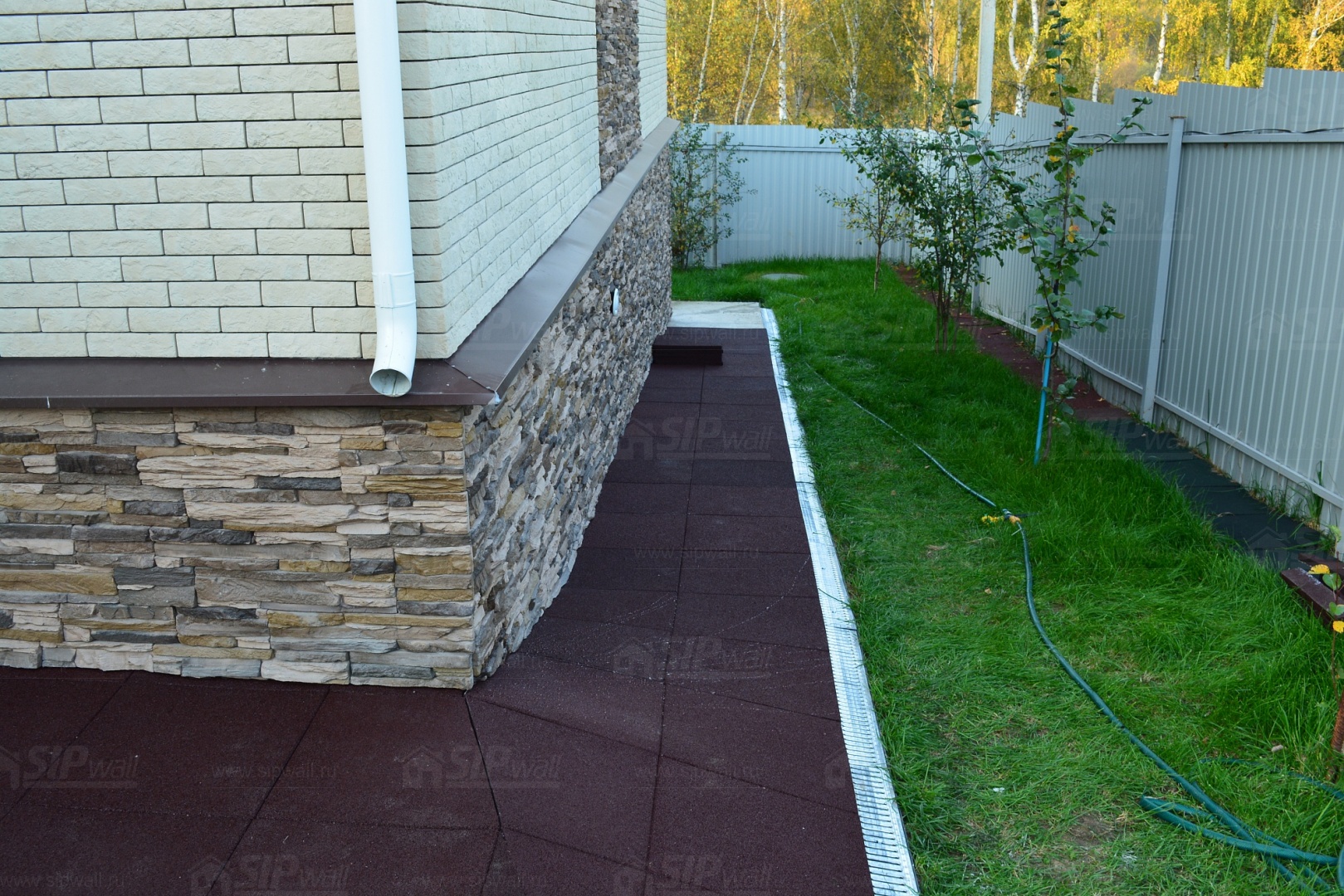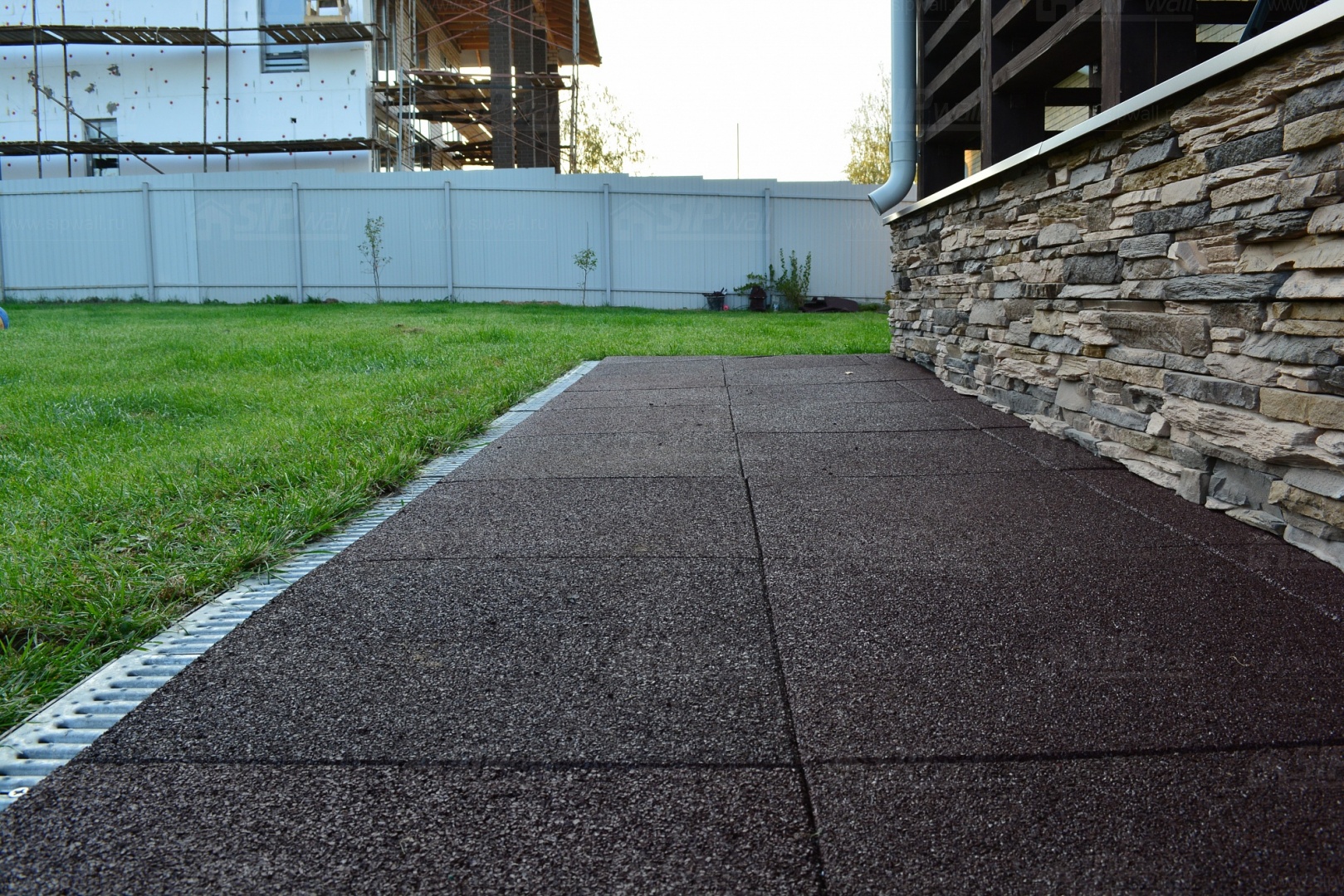 Устройство отмостки вокруг дома из резиновой плитки