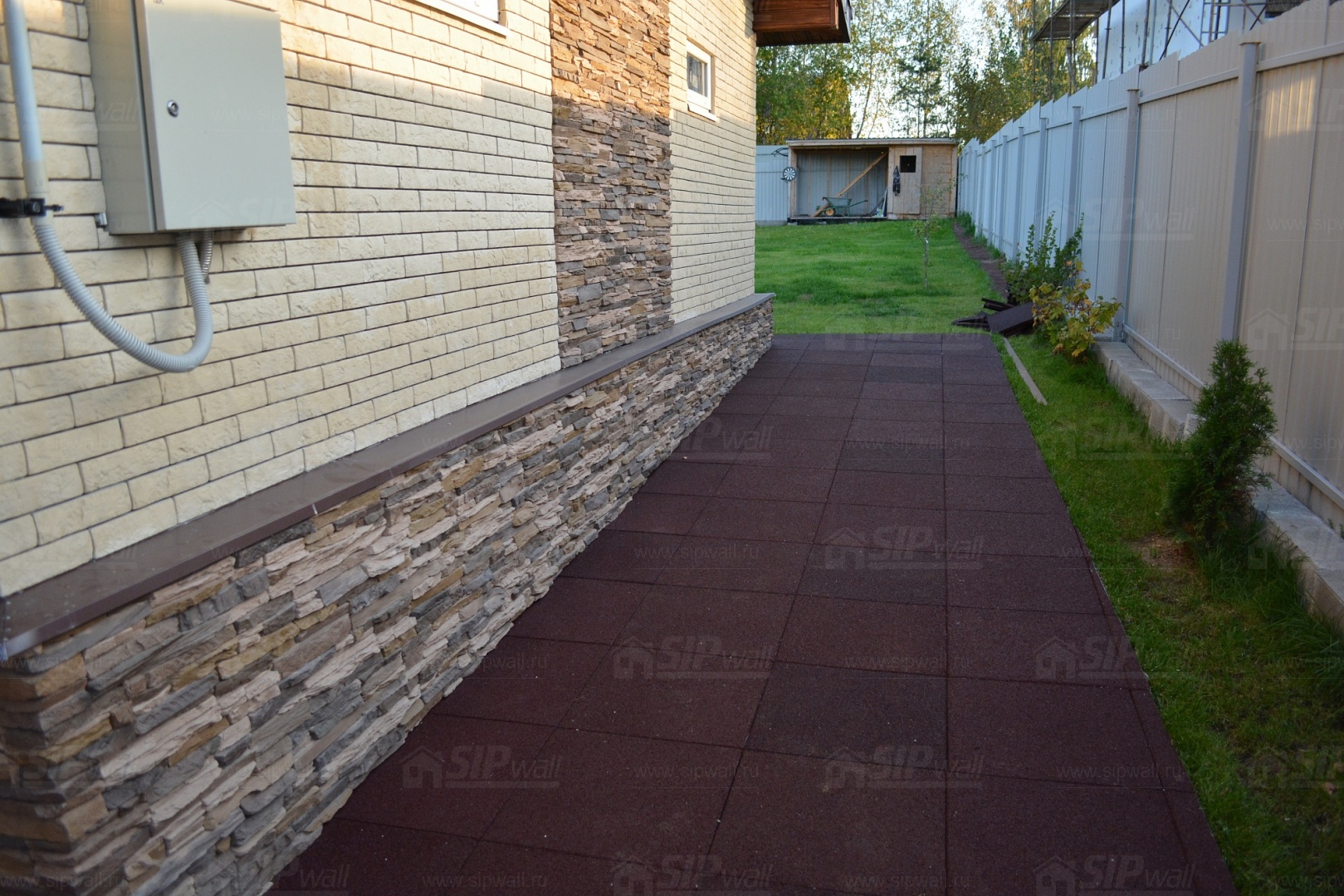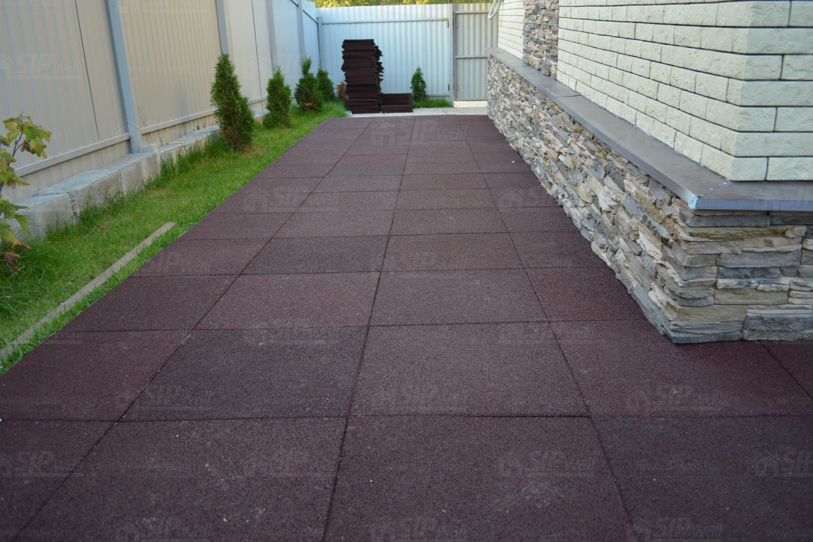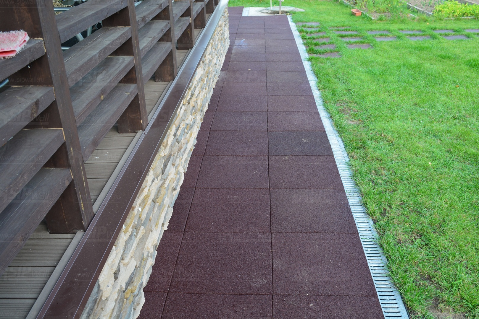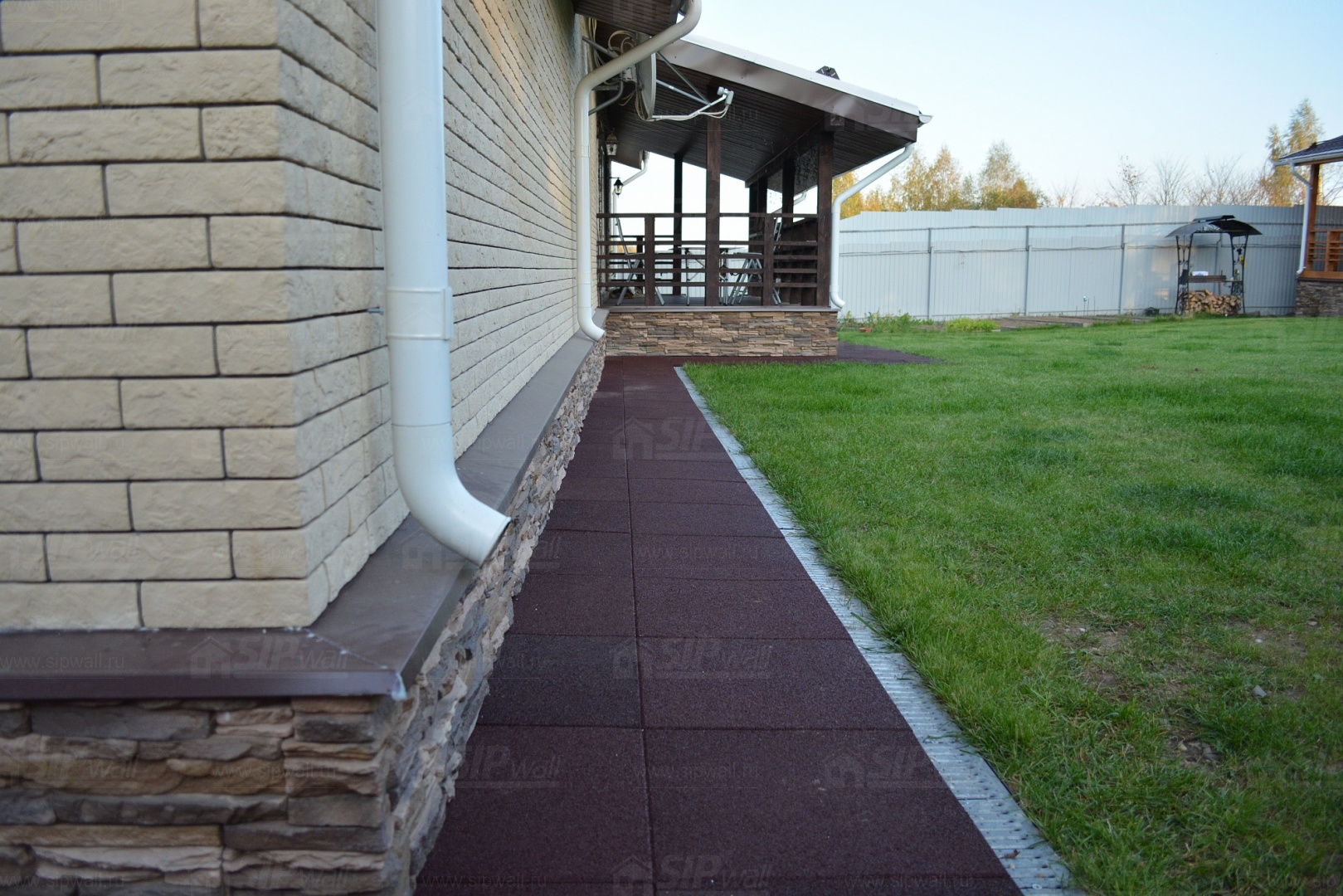 Устройство отмостки вокруг дома из резиновой плитки
