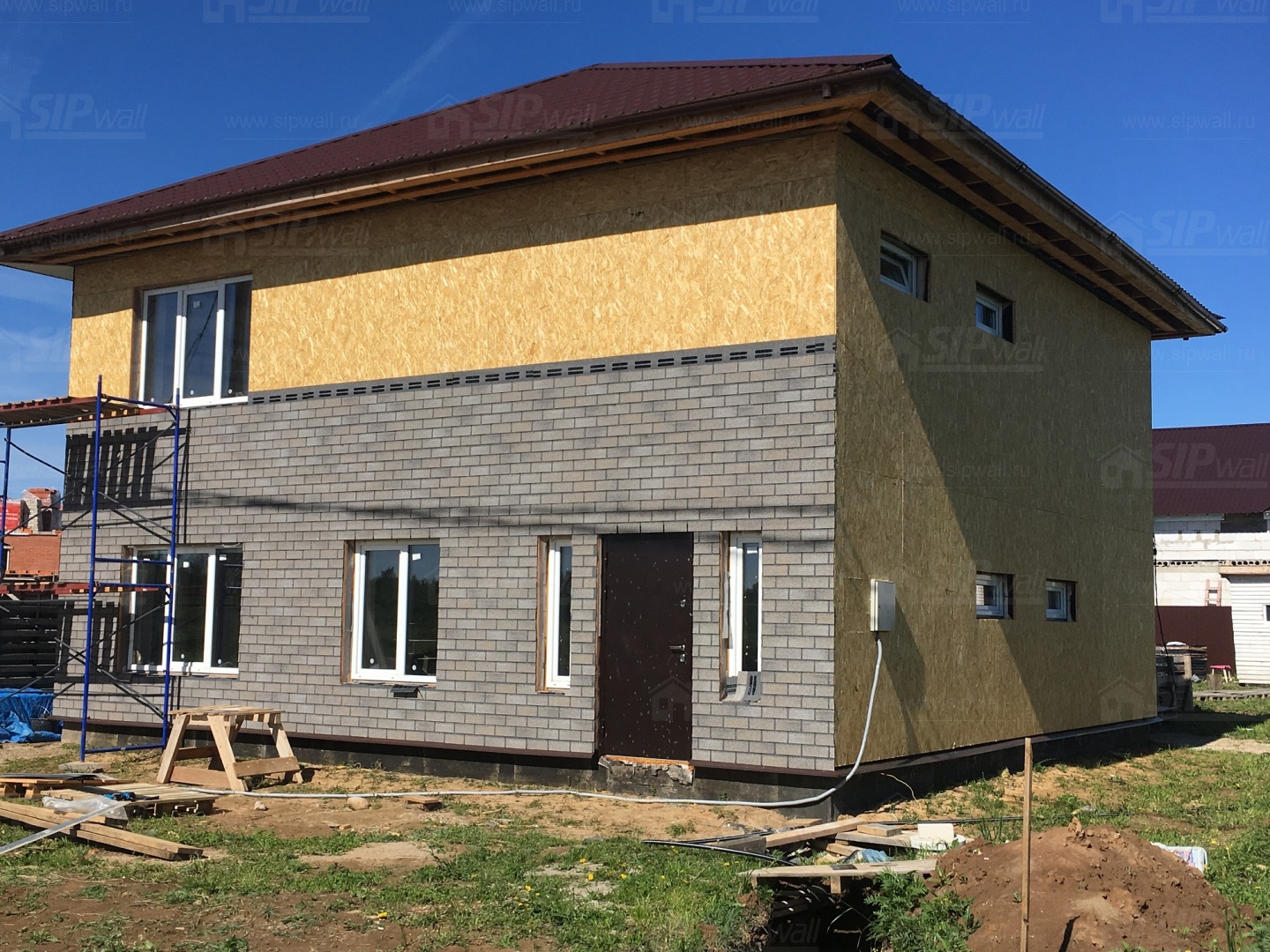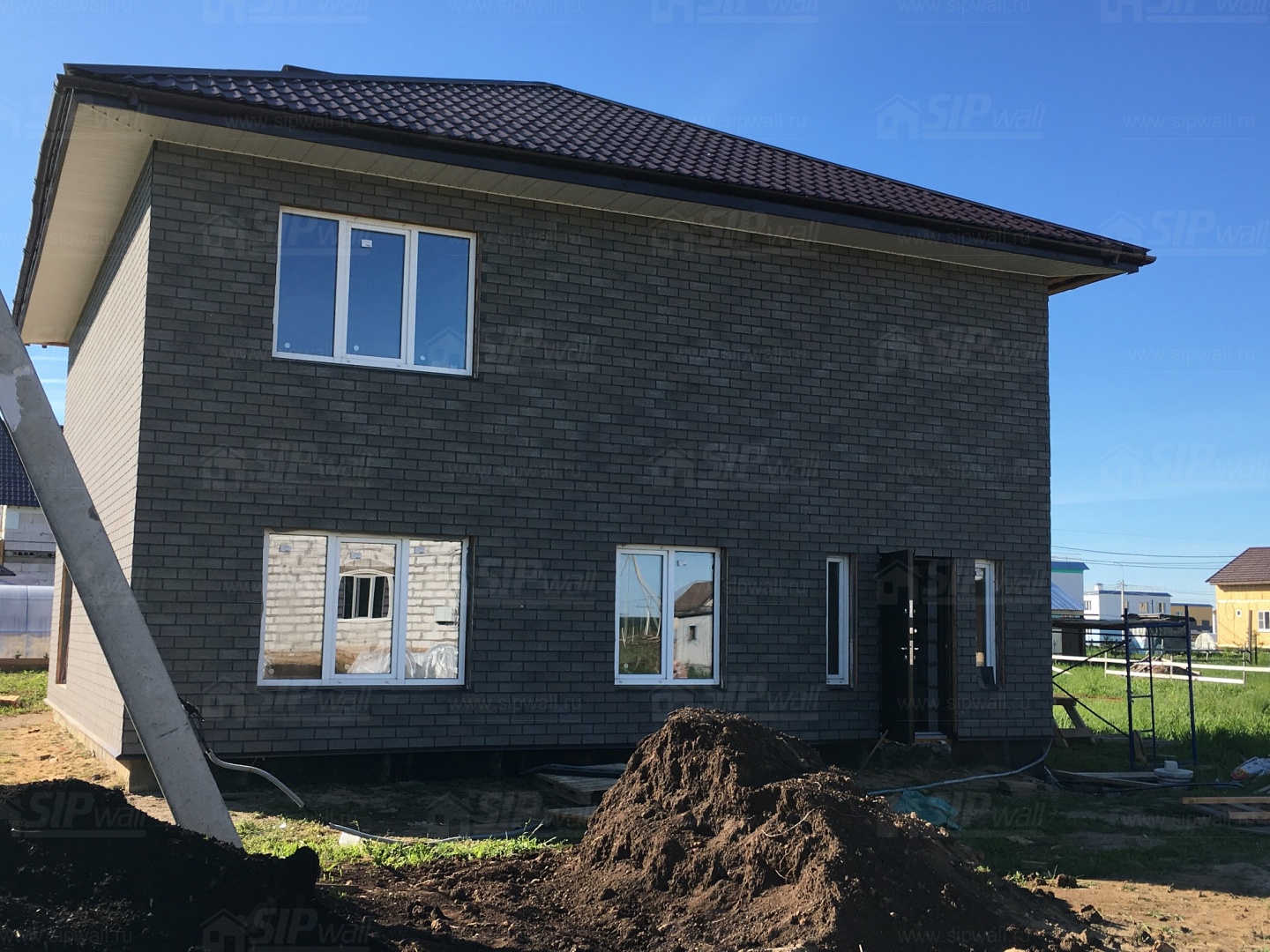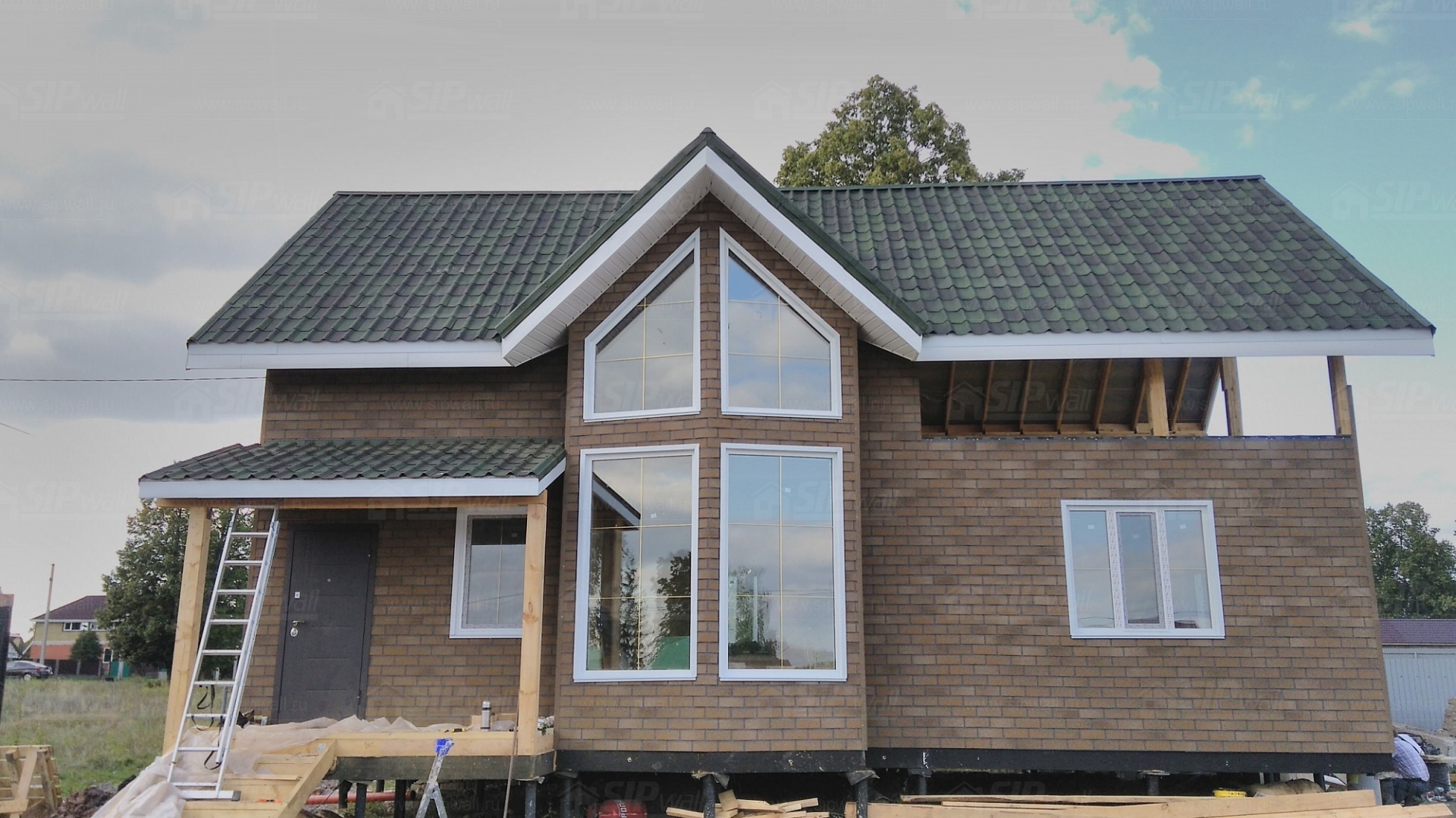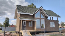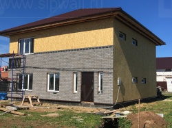 Этот современный материал для оформления фасада и его элементов прекрасно подойдет абсолютно для любого дома из СИП панелей. Рисунок и яркий цвет плиток подчеркнет общий стиль постройки, к тому же, плитки ТЕХНОНИКОЛЬ HAUBERK (Хауберк) могут монтироваться на сложные по форме элементы, например колонны, арки, волнообразные элементы фасада. Базальтовое покрытие плиток обеспечивает не только привлекательный внешний вид и устойчивость цвета, но и полноценную защиту. Плиты устойчивы к перепаду температур, влиянию ультрафиолета. Данный материал обладает герметичностью, что также защищает конструкцию от внешнего воздействия и продлевает срок ее службы.