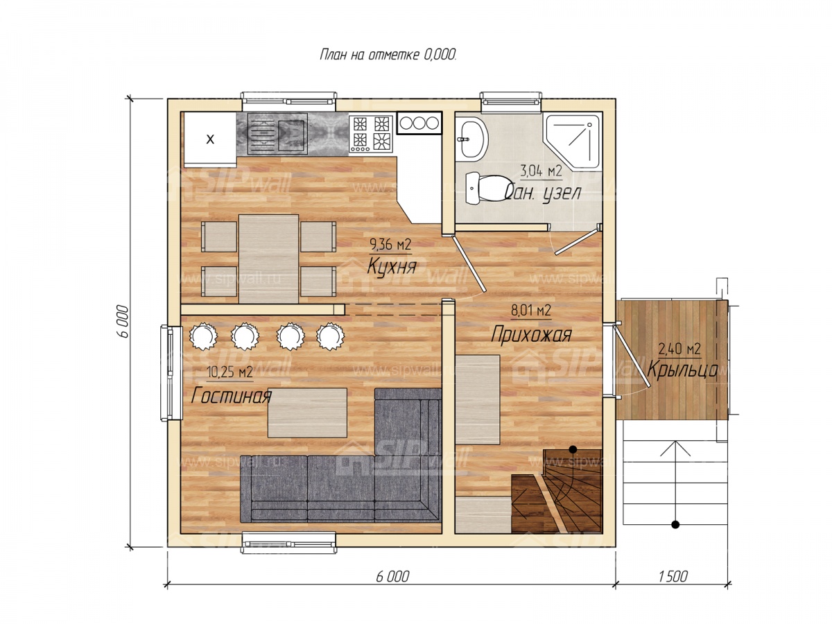 | Трехслойная СИП панель SIPwall 124 мм (OSB-3 12 мм, Россия, фасадный самозатухающий пенополистирол ППС 14 100 мм, Россия), вшитый конструктивный пиломатериал камерной сушки, строганный, обработанный огнебиозащитным составом «Wood Shield» в заводских условиях. | X | ||||||
