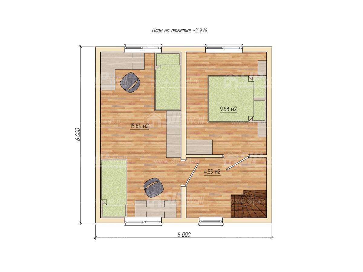 | Деревянные балки с покрытием чернового пола OSB-3 толщиной 22 мм (пиломатериал камерной сушки, строганный, обработанный огнебиозащитным составом «Wood Shield» в заводских условиях). | X | X | |||||