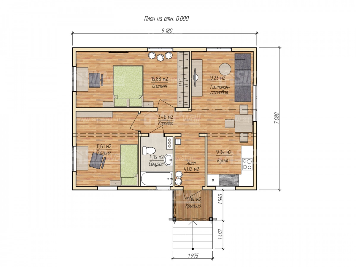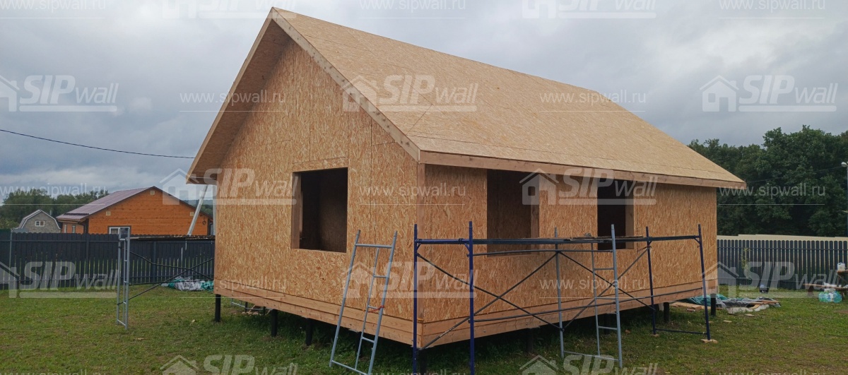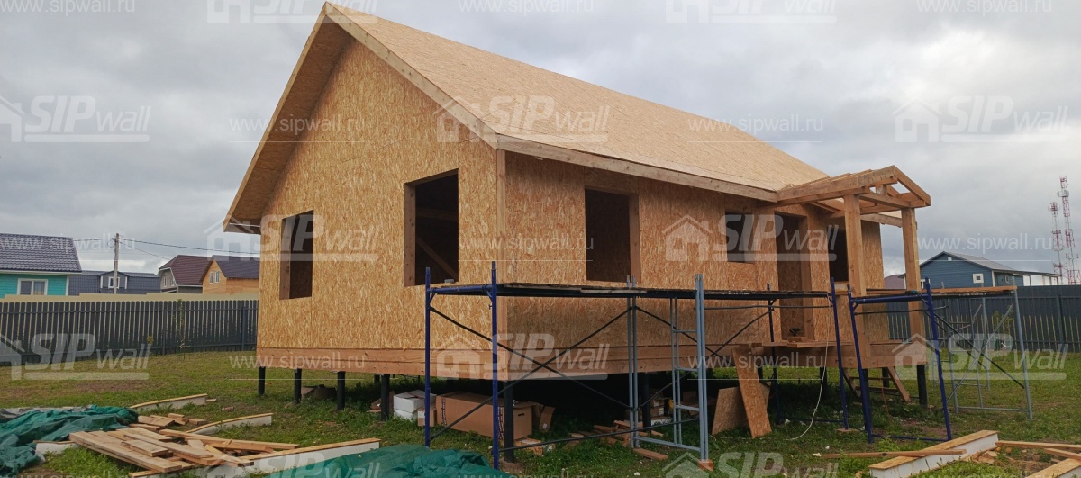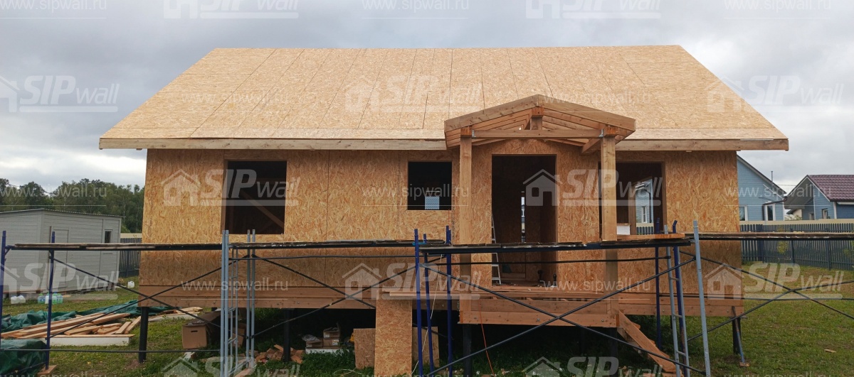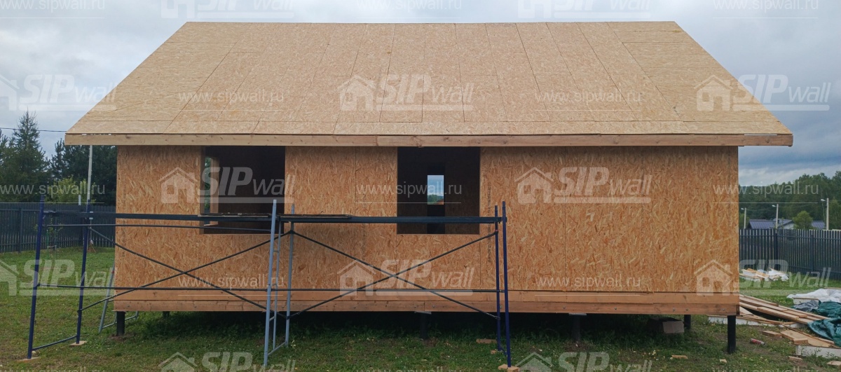 | Трехслойная СИП панель SIPwall 124 мм (OSB-3 12 мм, Россия, фасадный самозатухающий пенополистирол ППС 14 100 мм, Россия), вшитый конструктивный пиломатериал камерной сушки, строганный, обработанный огнебиозащитным составом «Wood Shield» в заводских условиях. | X | ||||||
