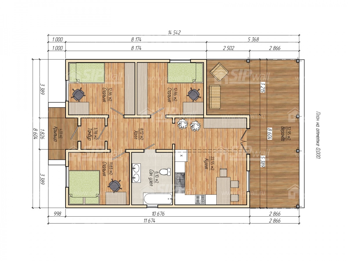 | Трехслойная СИП панель SIPwall 174 мм (OSB-3 12 мм, Россия, фасадный самозатухающий пенополистирол ППС 14 150 мм, Россия), вшитый конструктивный пиломатериал камерной сушки, строганный, обработанный огнебиозащитным составом «Wood Shield» в заводских условиях. | X | ||||||