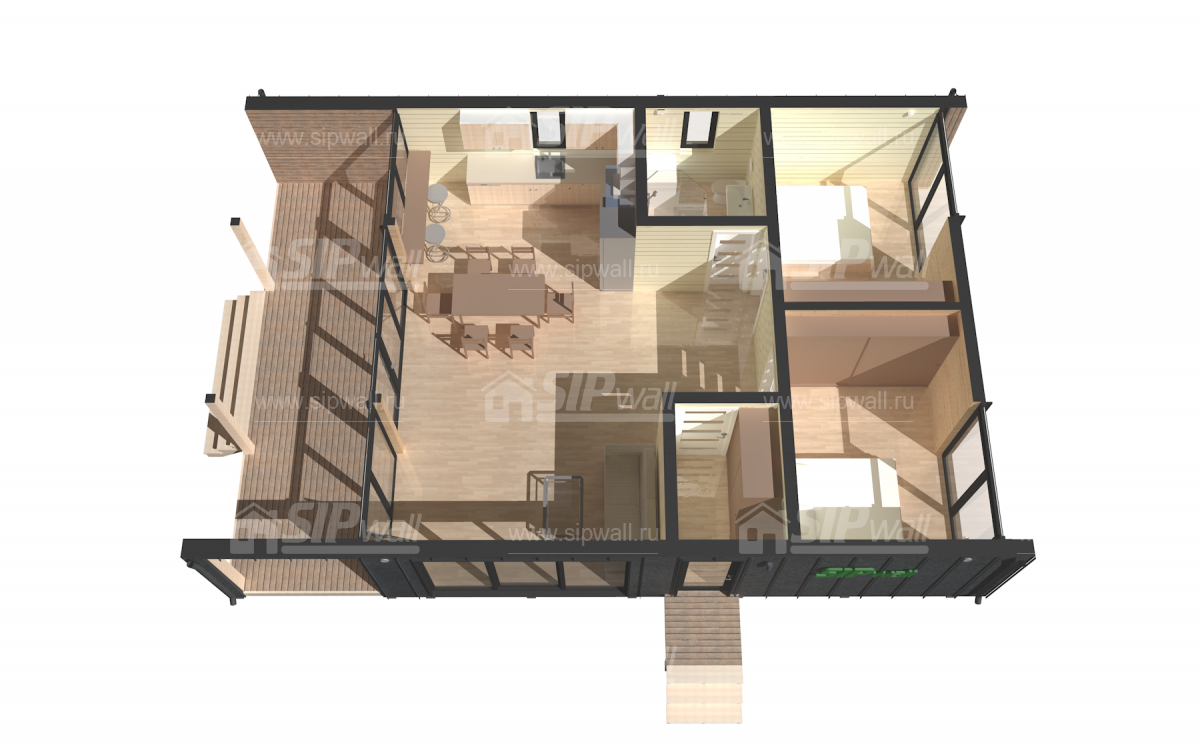 | Домокомплект изготавливается из трехслойных СИП панелей, произведенных по технологии SIPwall (ЭКОПАН) на собственном заводе, расположенном в г. Шуя, Ивановской области. При изготовлении домокомплекта панельно-каркасного дома используется только строганный пиломатериал камерной сушки, обработанный огнебиозащитным составом «Wood Shield» в заводских условиях. Все СИП панели домокомплекта изготовлены в соответствии с конструктивной проектной документацией, разработанной собственным проектным отдел компании SIPwall, и обрусованы сухим строганным пиломатериалом. На выходе с завода SIPwall домокомплект имеет 99%-ю готовность. | |||||||
