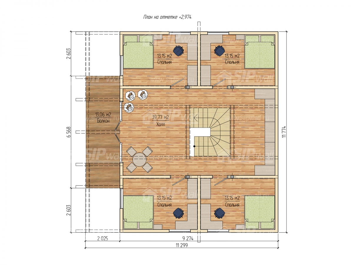 | Трехслойная СИП панель SIPwall 174 мм (OSB-3 12 мм, Россия, фасадный самозатухающий пенополистирол ППС 14 150 мм, Россия), вшитый конструктивный пиломатериал камерной сушки, строганный, обработанный огнебиозащитным составом «Wood Shield» в заводских условиях. | X | X | X | X | |||