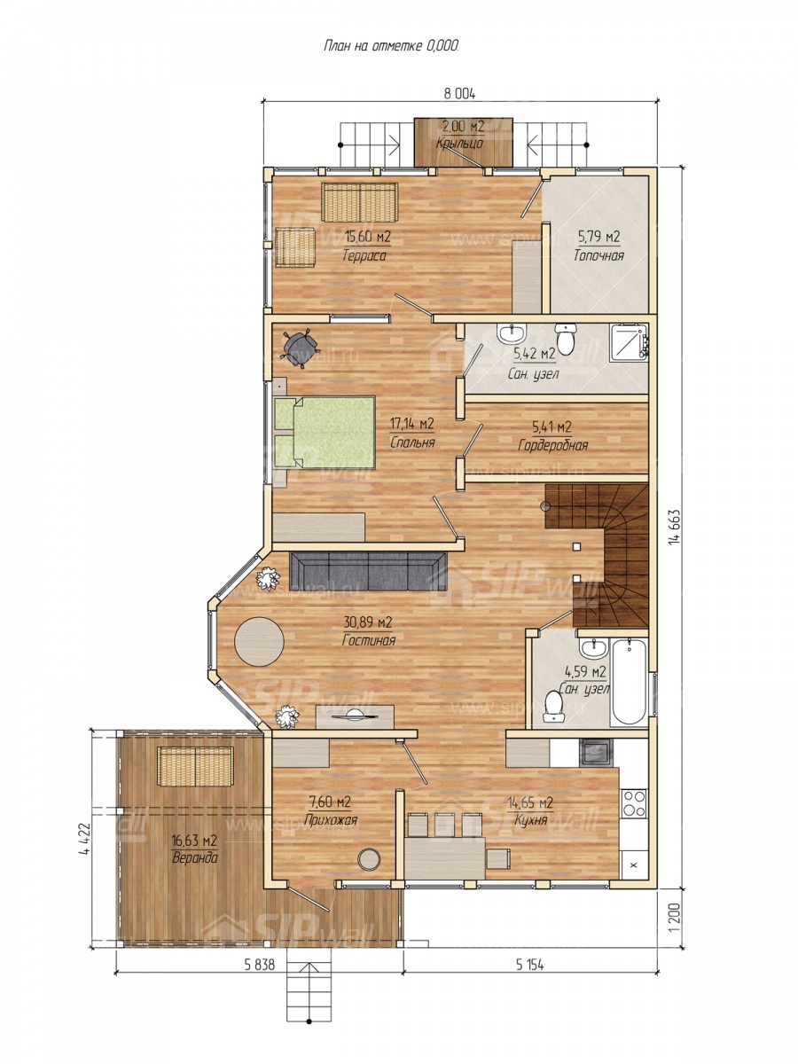| Трехслойная СИП панель SIPwall 174 мм (OSB-3 12 мм, Россия, фасадный самозатухающий пенополистирол ППС 14 150 мм, Россия), вшитый конструктивный пиломатериал камерной сушки, строганный, обработанный огнебиозащитным составом «Wood Shield» в заводских условиях. | X | X | X | X | |||
