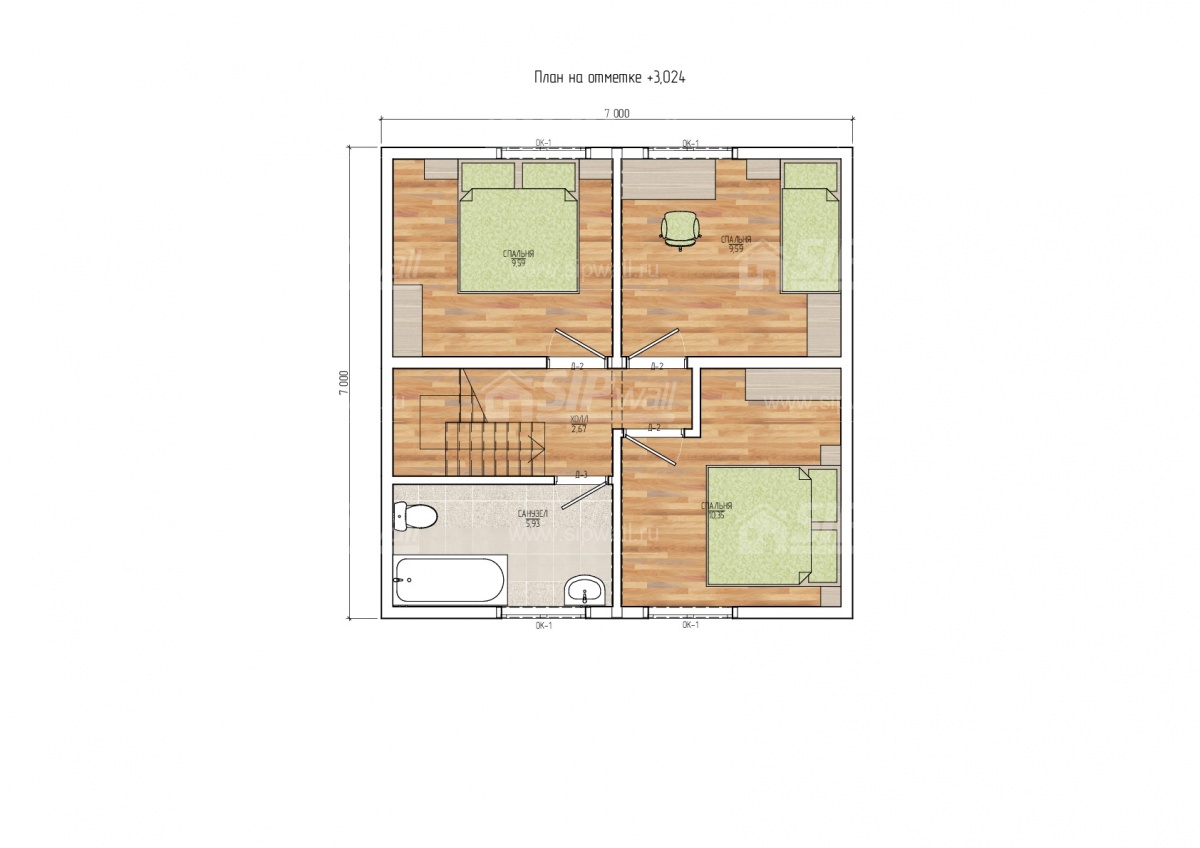 | Трехслойная СИП панель SIPwall 124 мм (OSB-3 12 мм, Россия, фасадный самозатухающий пенополистирол ППС 14 100 мм, Россия), вшитый конструктивный пиломатериал камерной сушки, строганный, обработанный огнебиозащитным составом «Wood Shield» в заводских условиях. | X | ||||||