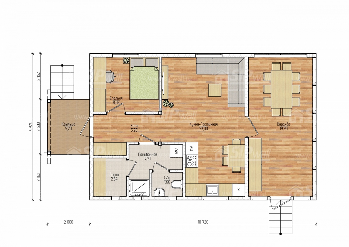 | Домокомплект изготавливается из трехслойных СИП панелей, произведенных по технологии SIPwall (ЭКОПАН) на собственном заводе, расположенном в г. Шуя, Ивановской области. При изготовлении домокомплекта панельно-каркасного дома используется только строганный пиломатериал камерной сушки, обработанный огнебиозащитным составом «Wood Shield» в заводских условиях. Все СИП панели домокомплекта изготовлены в соответствии с конструктивной проектной документацией, разработанной собственным проектным отдел компании SIPwall, и обрусованы сухим строганным пиломатериалом. На выходе с завода SIPwall домокомплект имеет 99%-ю готовность. | |||||||