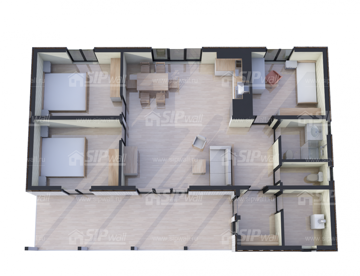 | Домокомплект изготавливается из трехслойных СИП панелей, произведенных по технологии SIPwall (ЭКОПАН) на собственном заводе, расположенном в г. Шуя, Ивановской области. При изготовлении домокомплекта панельно-каркасного дома используется только строганный пиломатериал камерной сушки, обработанный огнебиозащитным составом «Wood Shield» в заводских условиях. Все СИП панели домокомплекта изготовлены в соответствии с конструктивной проектной документацией, разработанной собственным проектным отдел компании SIPwall, и обрусованы сухим строганным пиломатериалом. На выходе с завода SIPwall домокомплект имеет 99%-ю готовность. | |||||||