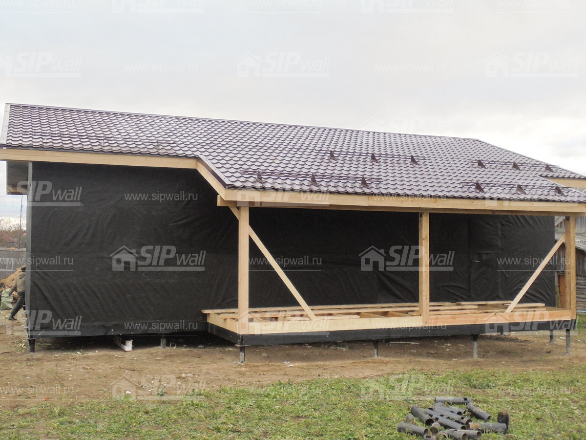 | Трехслойная СИП панель SIPwall 124 мм (OSB-3 12 мм, Россия, фасадный самозатухающий пенополистирол ППС 14 100 мм, Россия), вшитый конструктивный пиломатериал камерной сушки, строганный, обработанный огнебиозащитным составом «Wood Shield» в заводских условиях. | X | ||||||