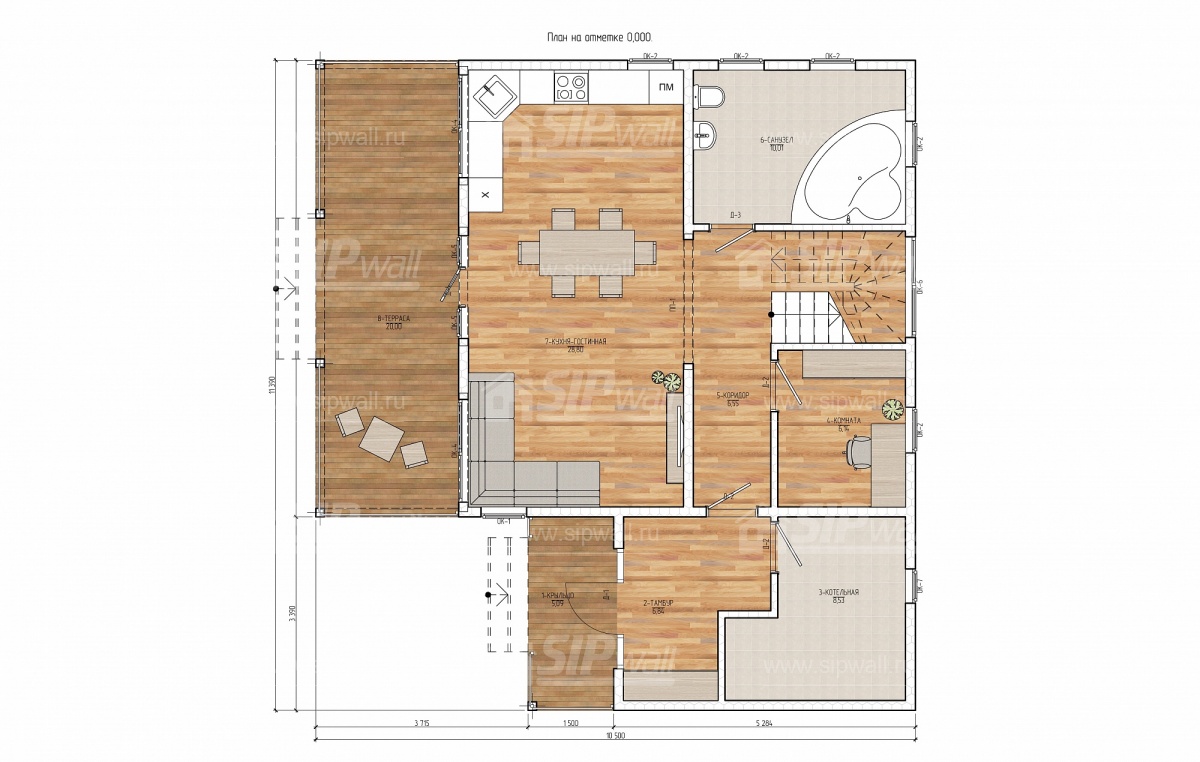 | Домокомплект изготавливается из трехслойных СИП панелей, произведенных по технологии SIPwall (ЭКОПАН) на собственном заводе, расположенном в г. Шуя, Ивановской области. При изготовлении домокомплекта панельно-каркасного дома используется только строганный пиломатериал камерной сушки, обработанный огнебиозащитным составом «Wood Shield» в заводских условиях. Все СИП панели домокомплекта изготовлены в соответствии с конструктивной проектной документацией, разработанной собственным проектным отдел компании SIPwall, и обрусованы сухим строганным пиломатериалом. На выходе с завода SIPwall домокомплект имеет 99%-ю готовность. | |||||||