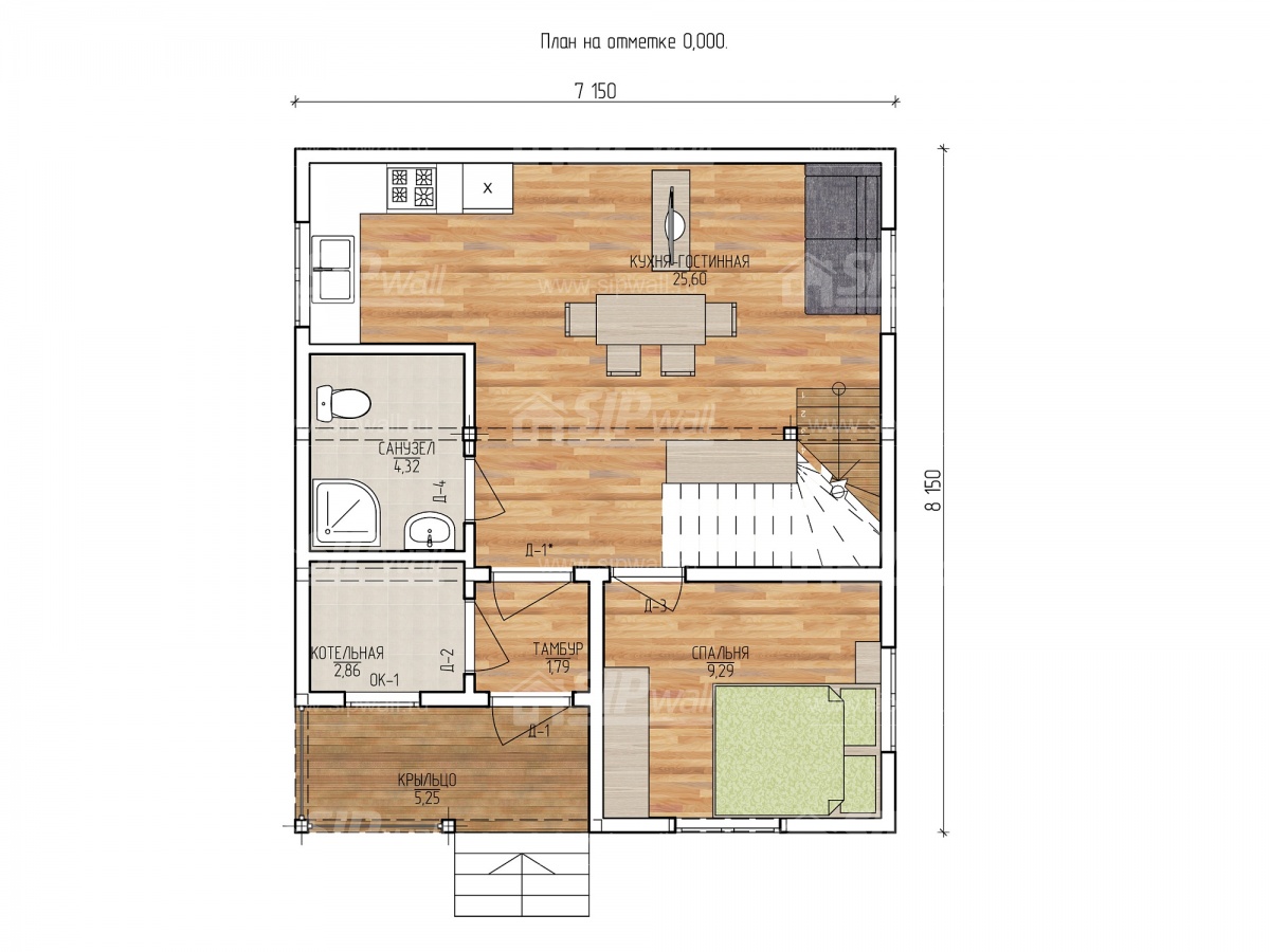 | Трехслойная СИП панель SIPwall 174 мм (OSB-3 12 мм, Россия, фасадный самозатухающий пенополистирол ППС 14 150 мм, Россия), вшитый конструктивный пиломатериал камерной сушки, строганный, обработанный огнебиозащитным составом «Wood Shield» в заводских условиях. | X | X | X | X | |||