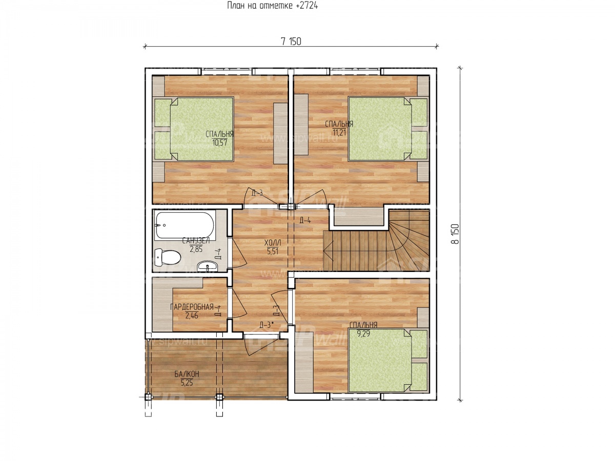 | Деревянные балки с покрытием чернового пола OSB-3 толщиной 22 мм (пиломатериал камерной сушки, строганный, обработанный огнебиозащитным составом «Wood Shield» в заводских условиях). | X | X | |||||